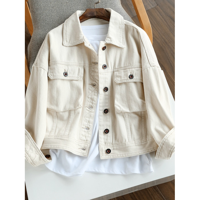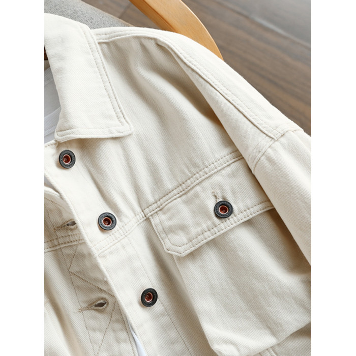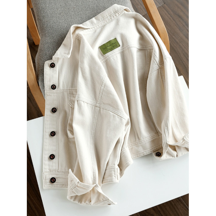 廣州十三行女裝穿搭~溫柔的奶白色~開春外套春秋薄款寬鬆牛仔夾克