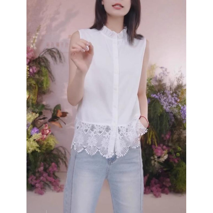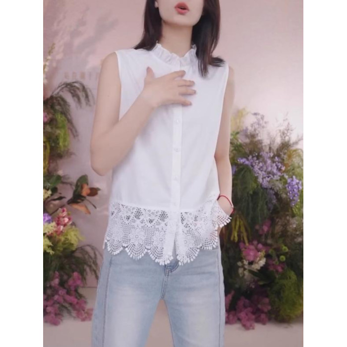 大碼木耳邊蕾絲打底無袖內搭襯衫2026春夏新款胖mm曡穿上衣高級感