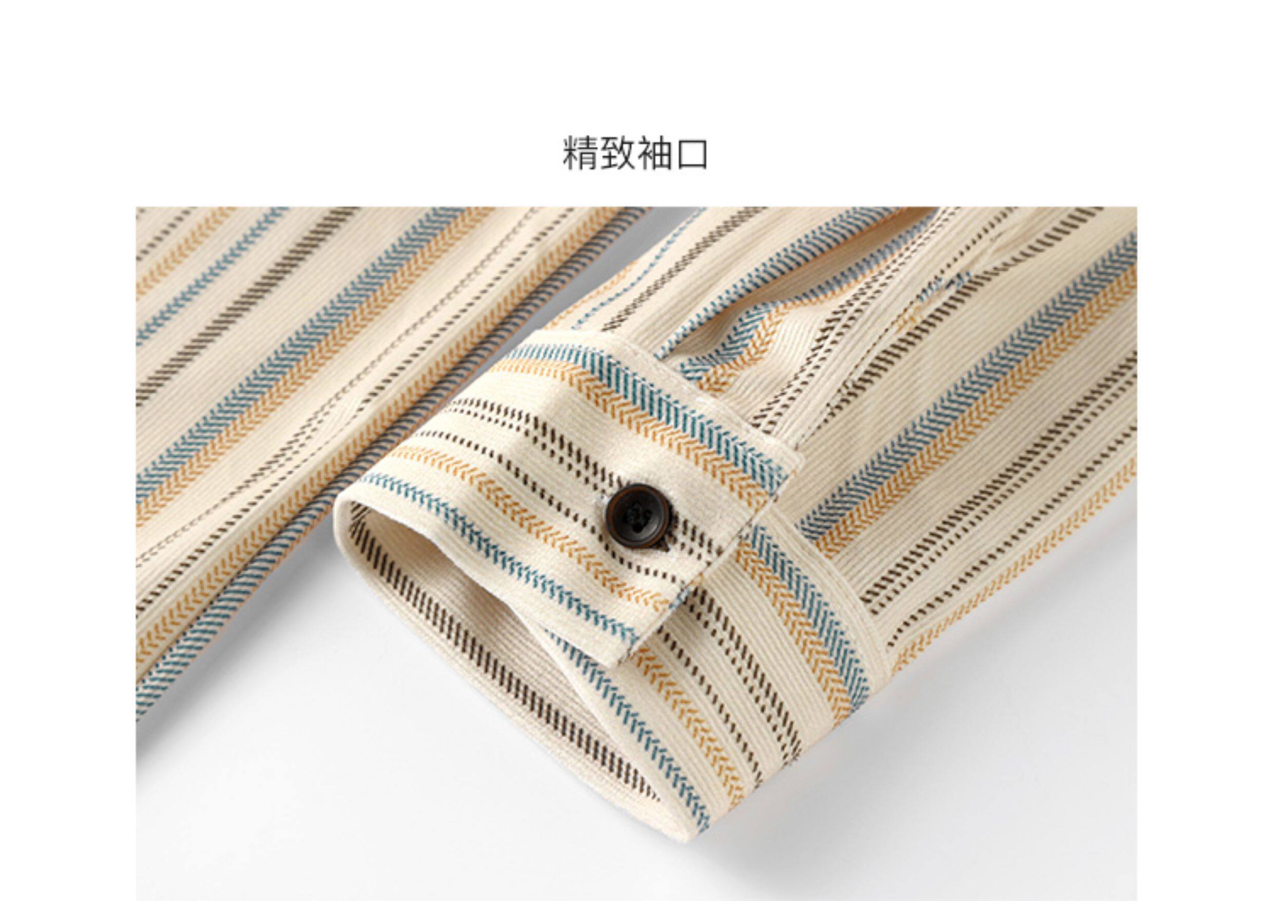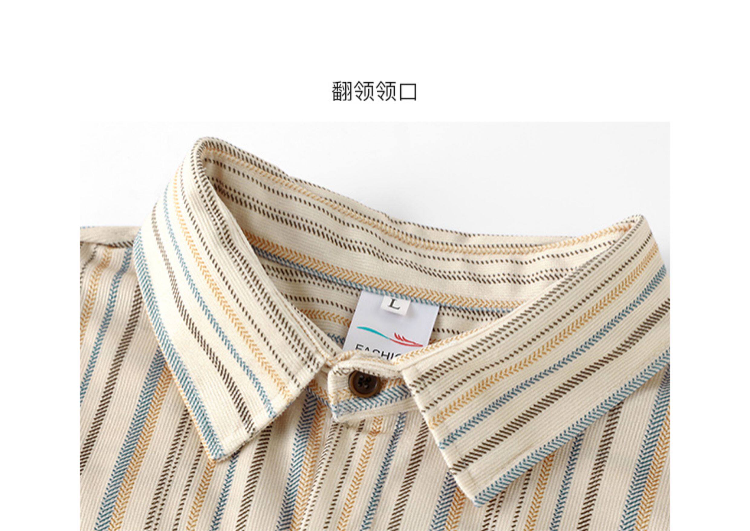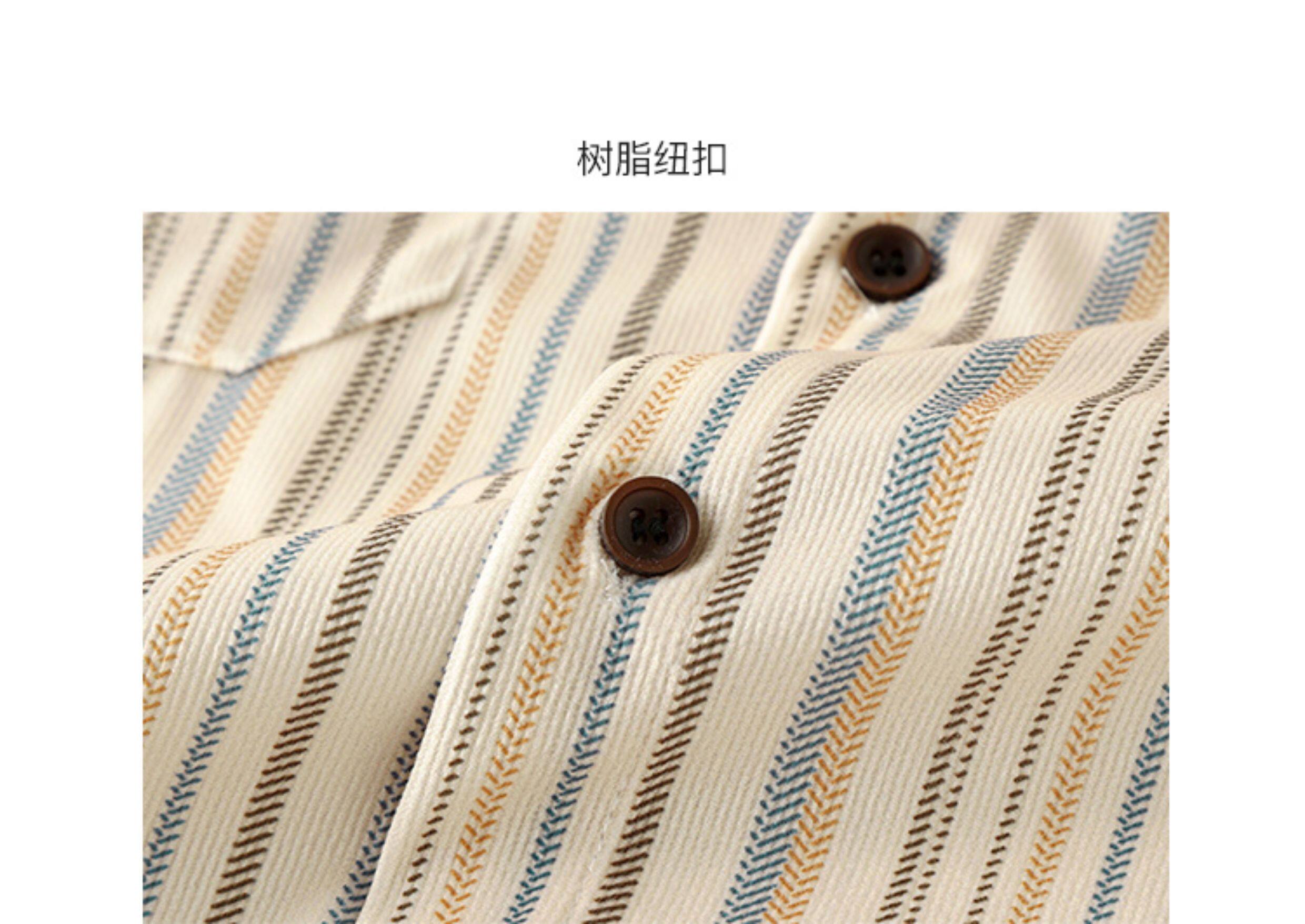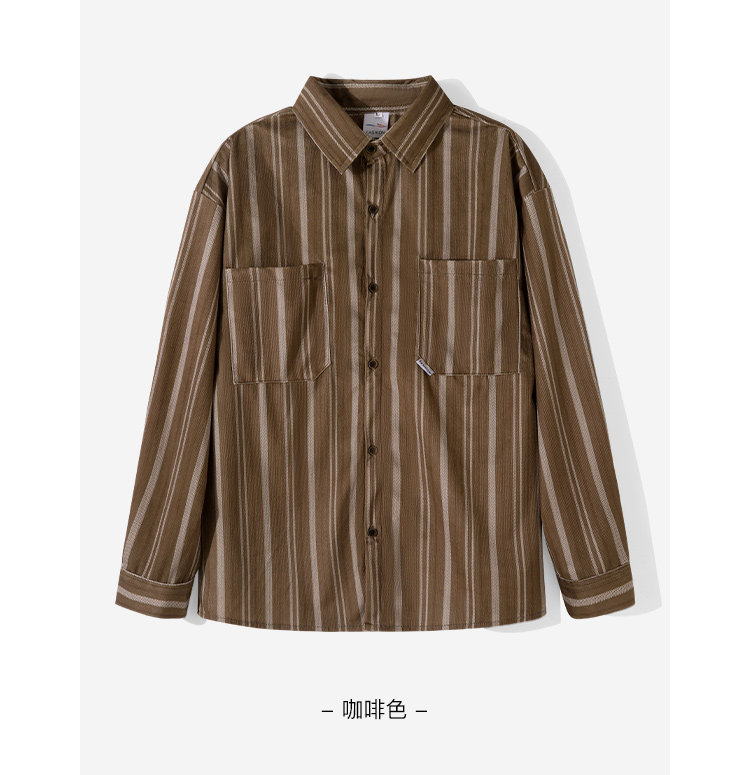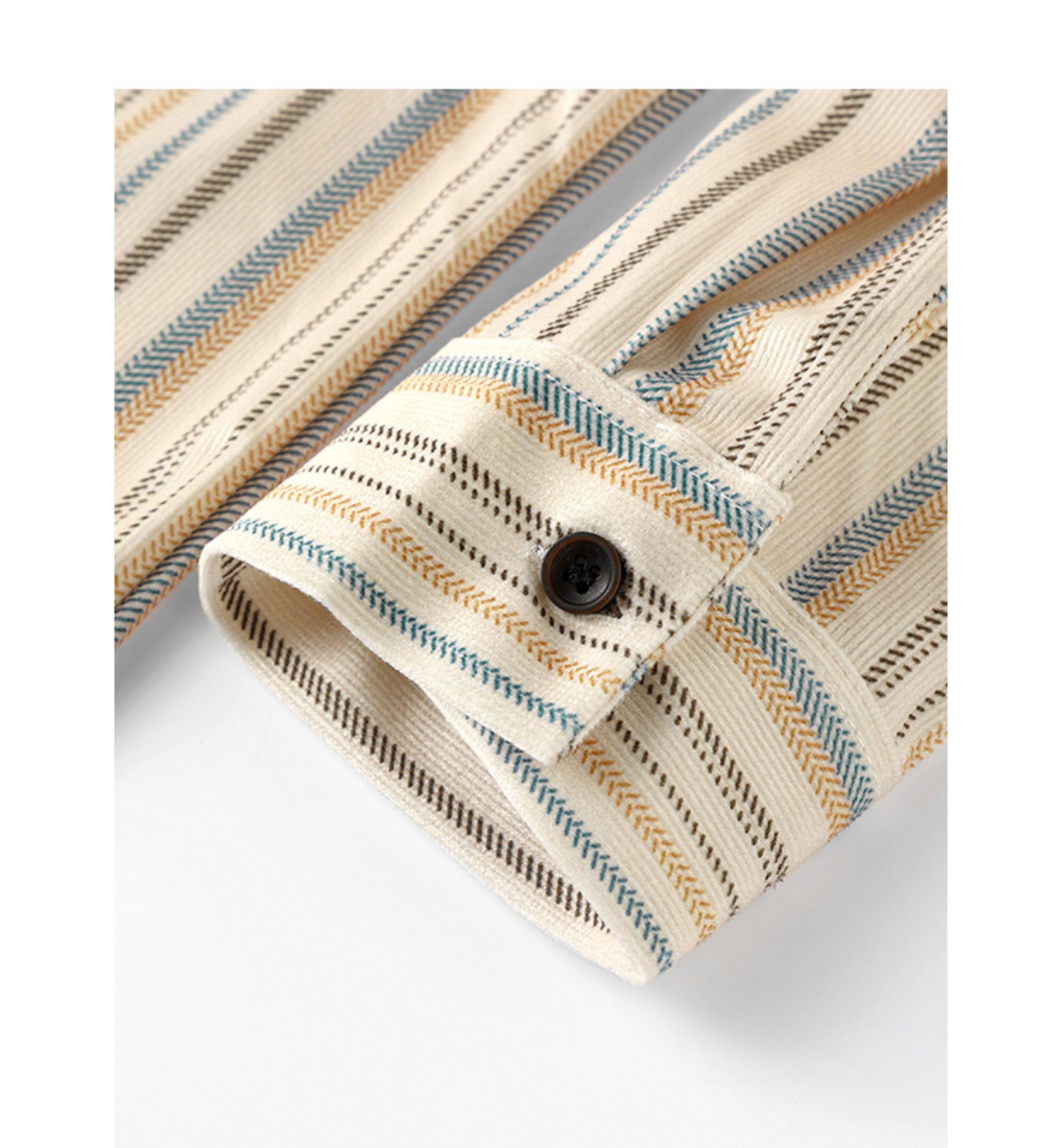 藝術生穿搭!杏色條紋襯衫女復古燈芯絨重磅高質感寬鬆休閒外套男