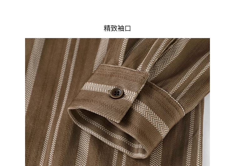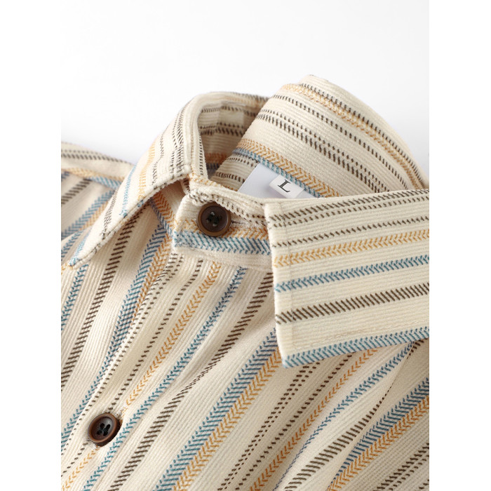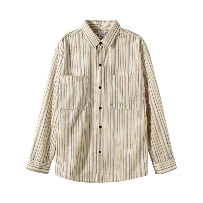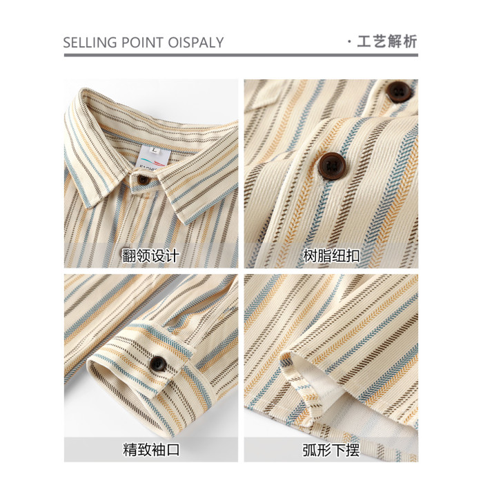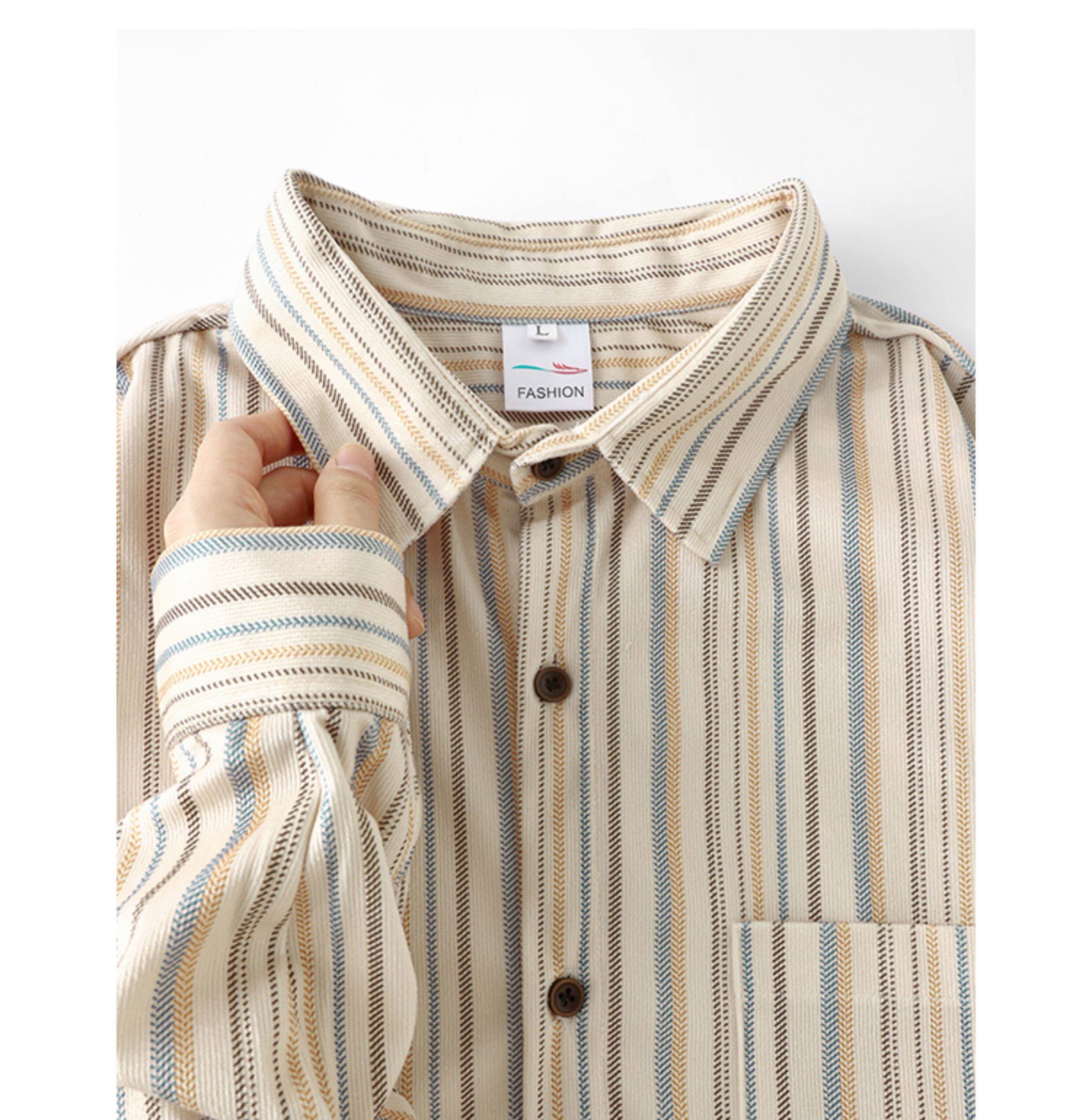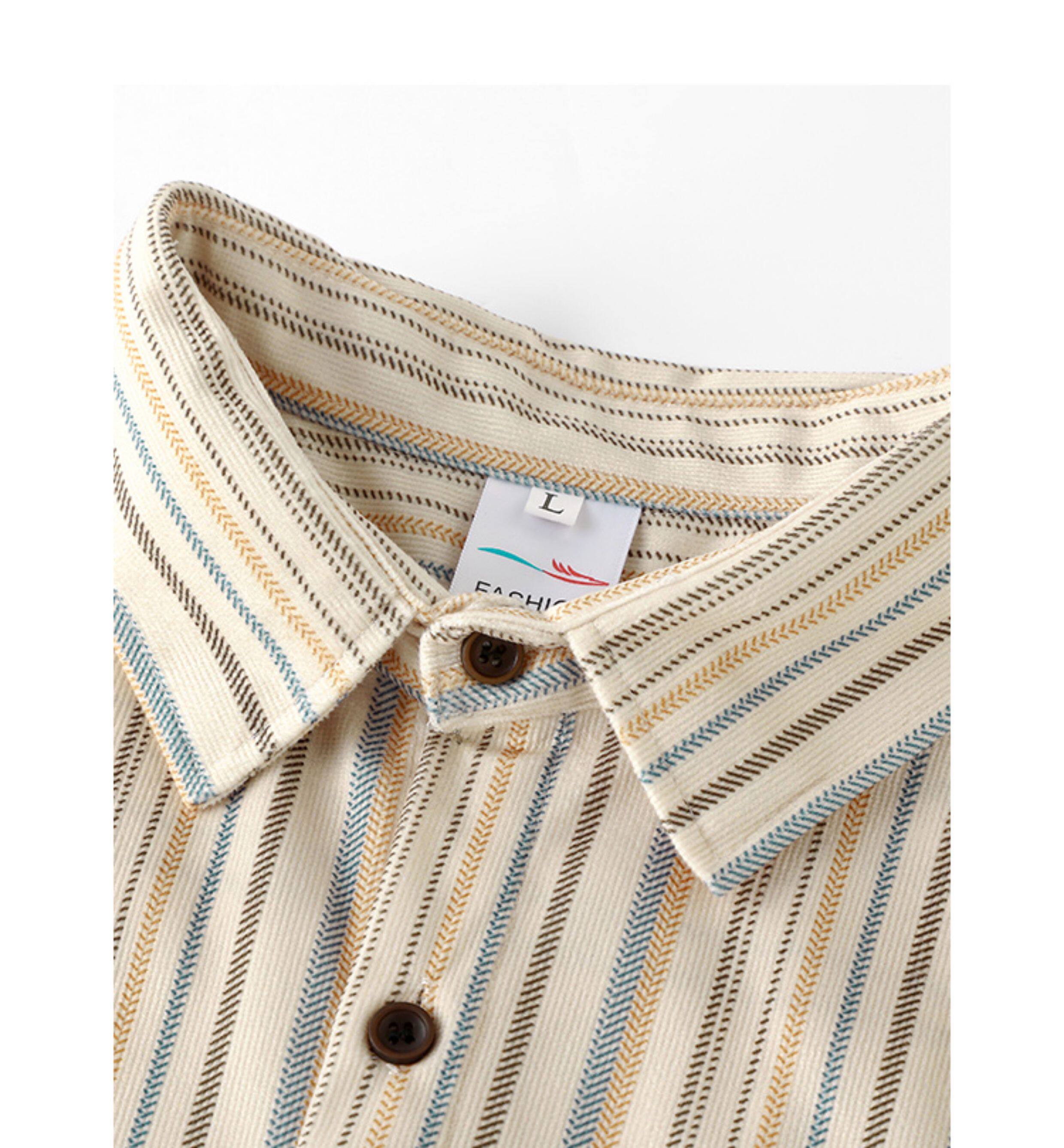 藝術生穿搭!杏色條紋襯衫女復古燈芯絨重磅高質感寬鬆休閒外套男