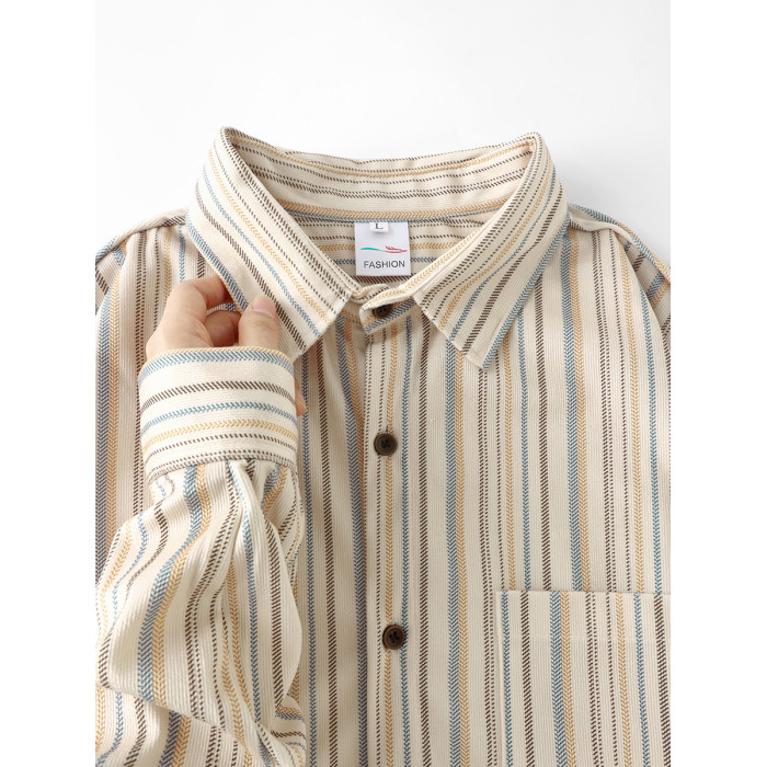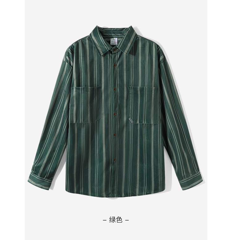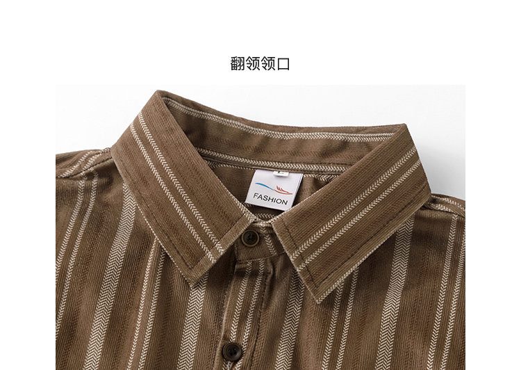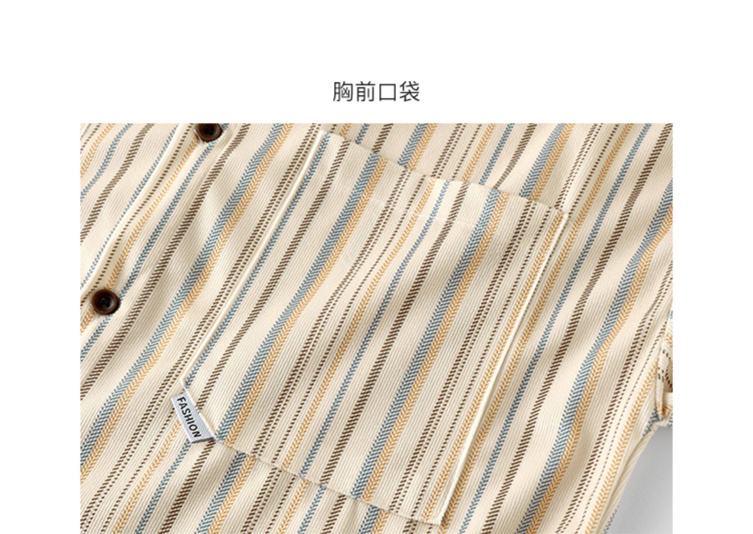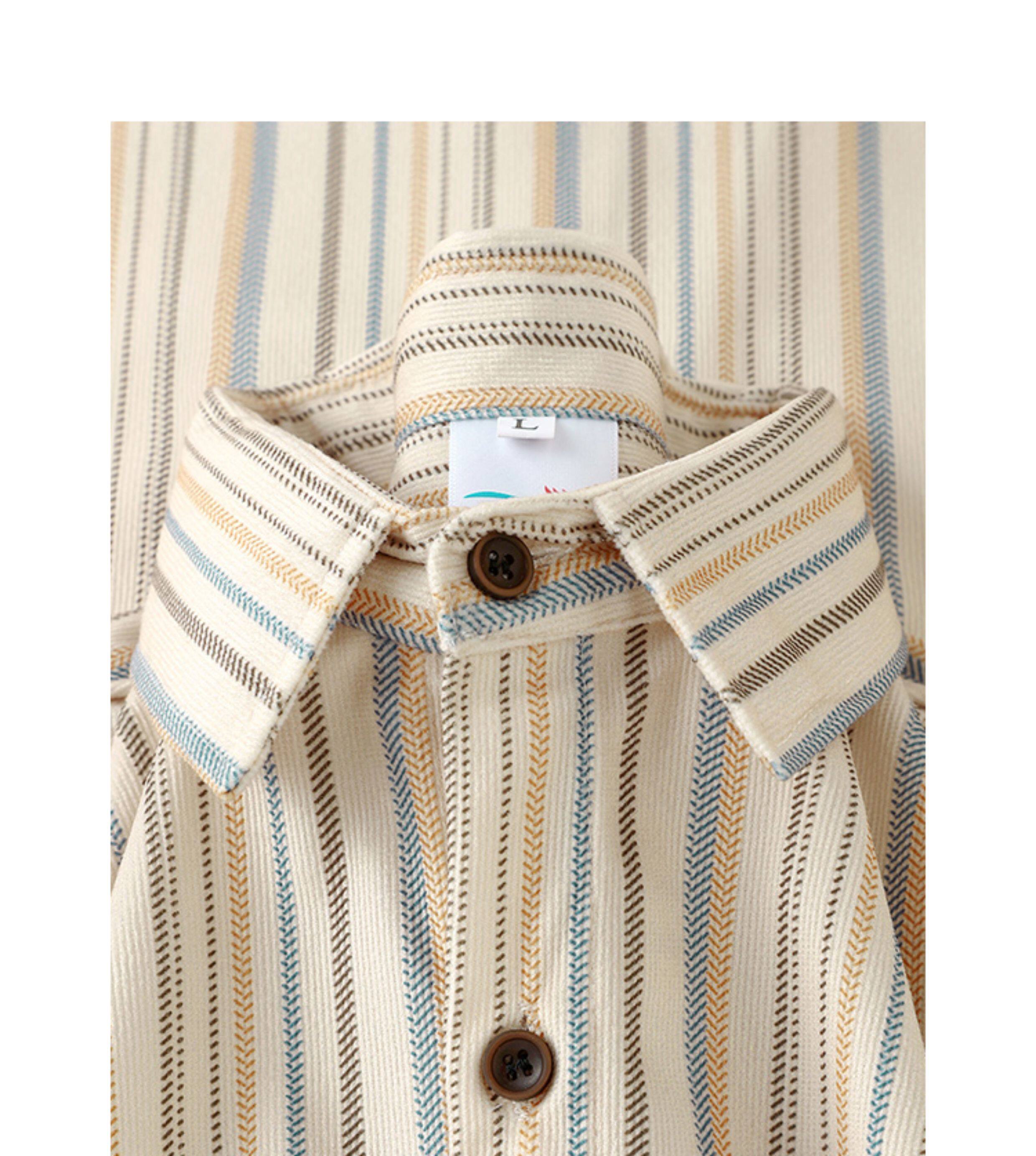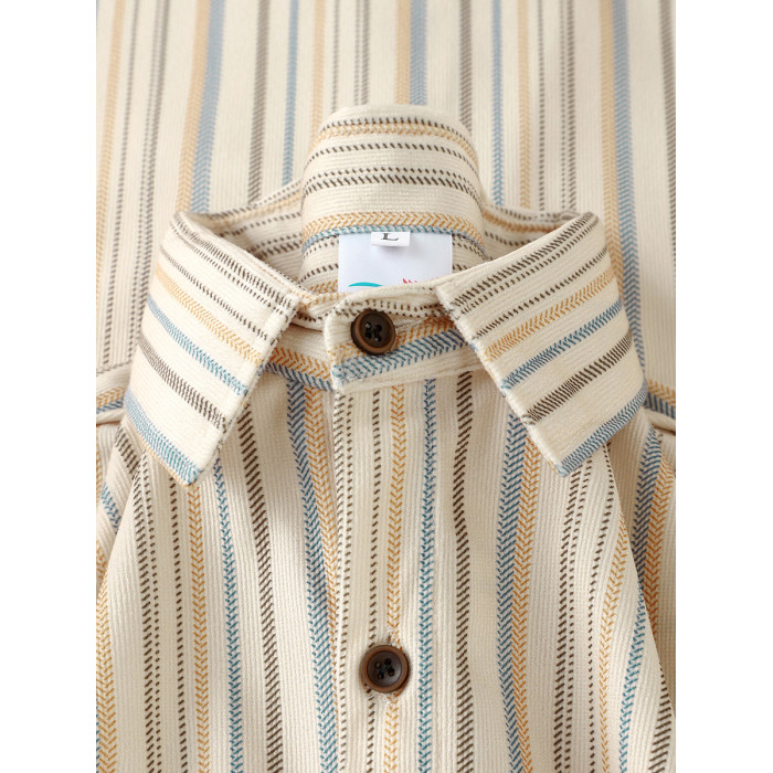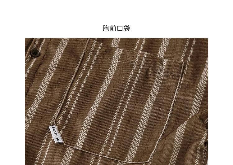 藝術生穿搭!杏色條紋襯衫女復古燈芯絨重磅高質感寬鬆休閒外套男