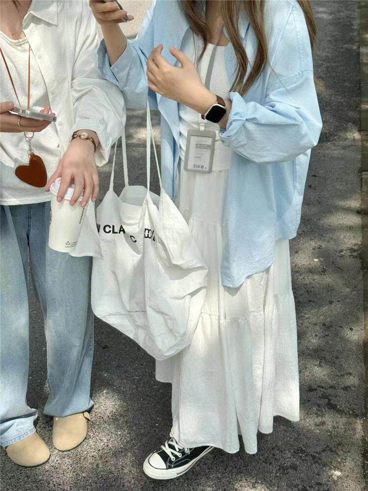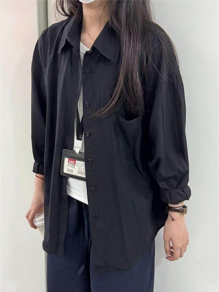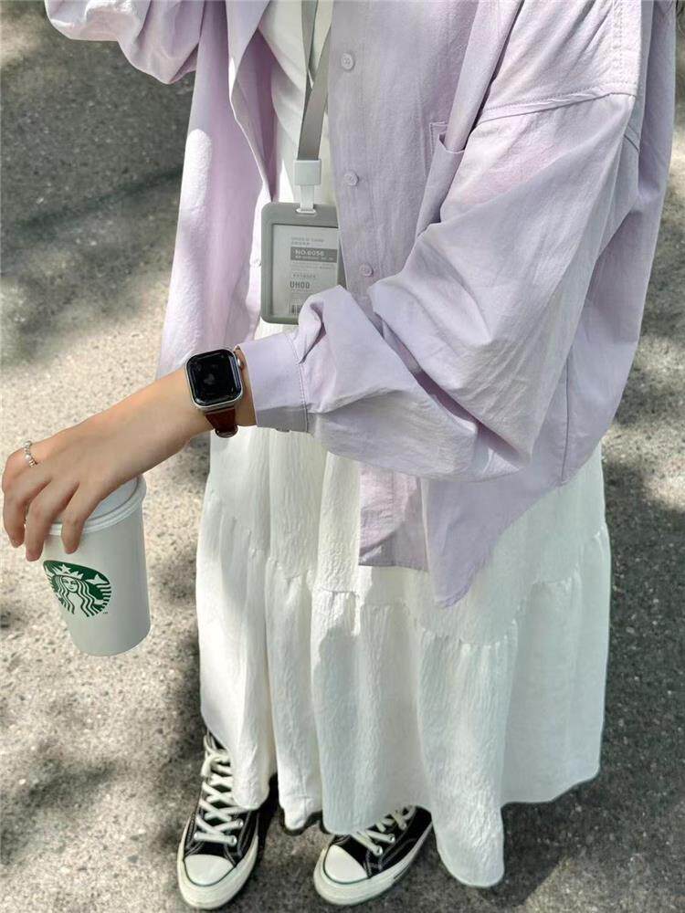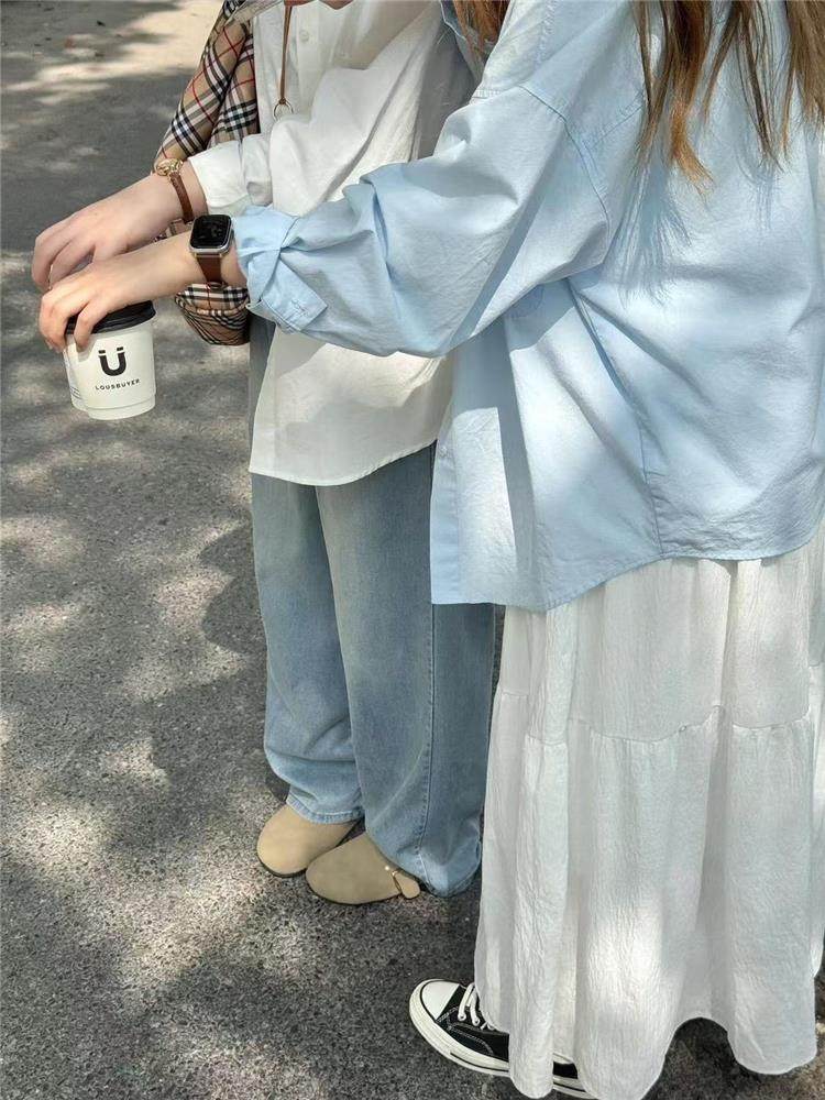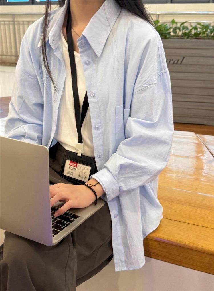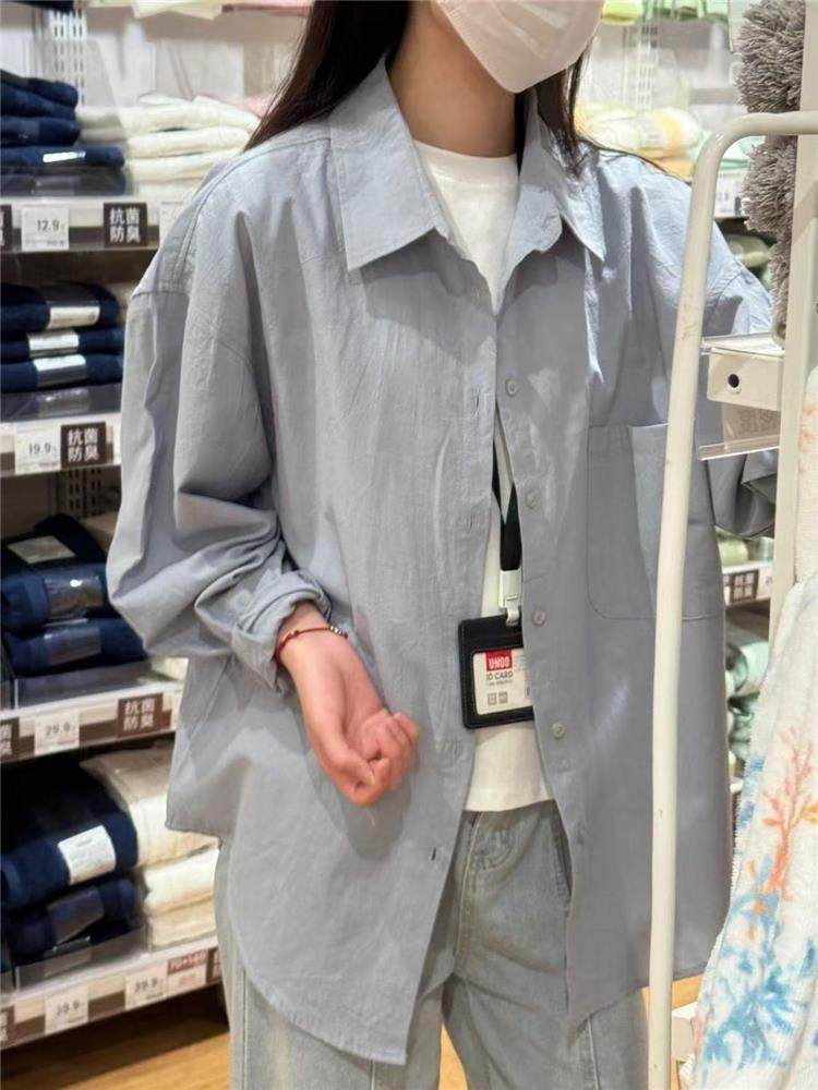 韓系復古曡穿豆綠色純棉襯衫女內搭寬鬆百搭顯瘦防曬長袖開衫襯衣