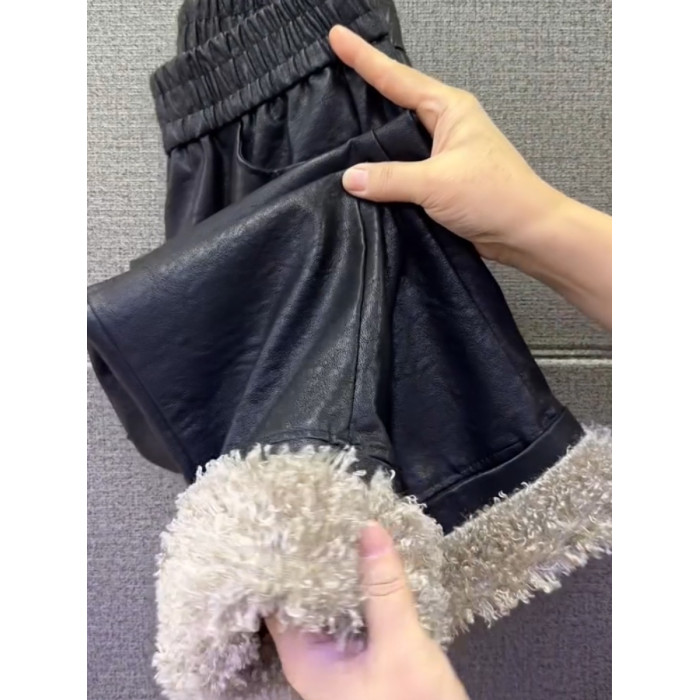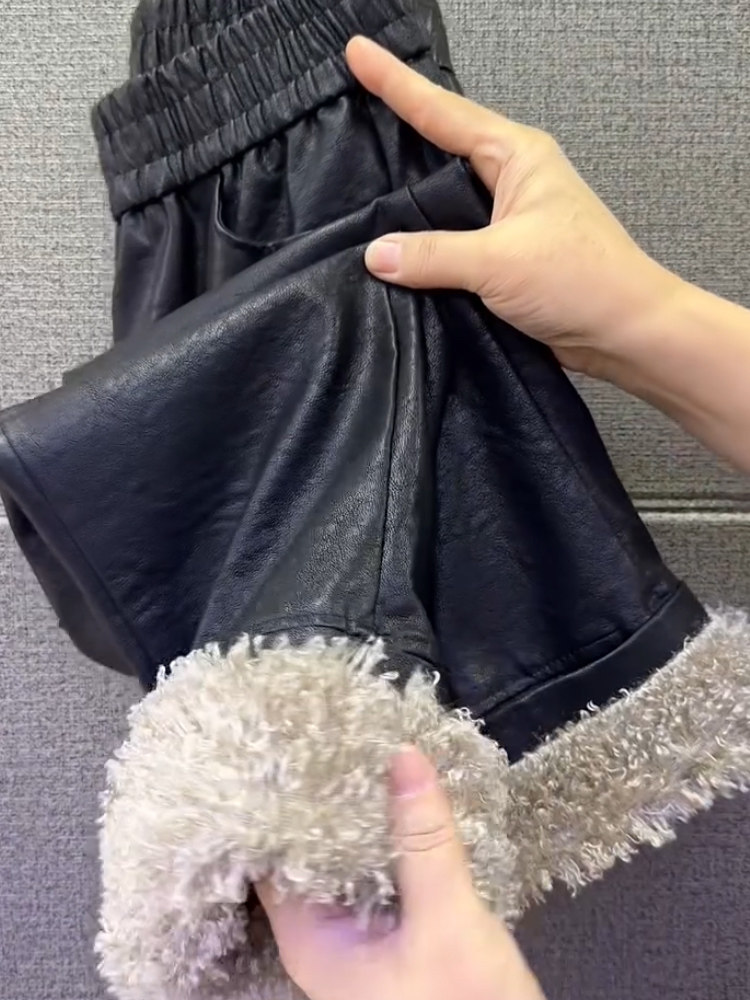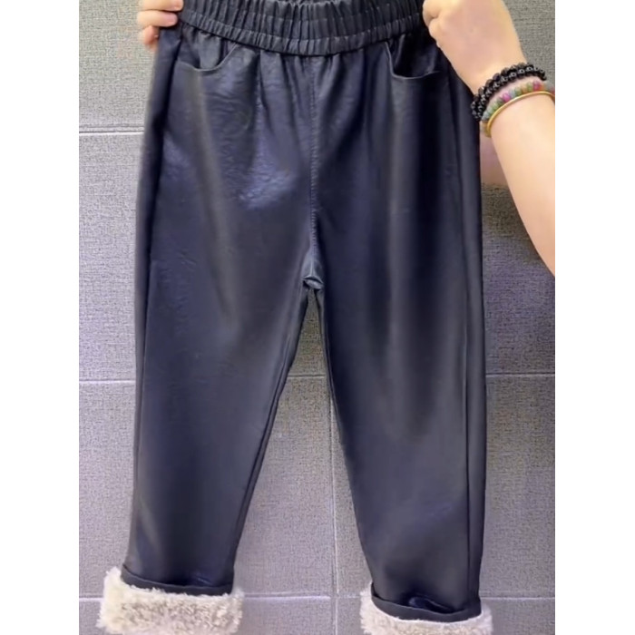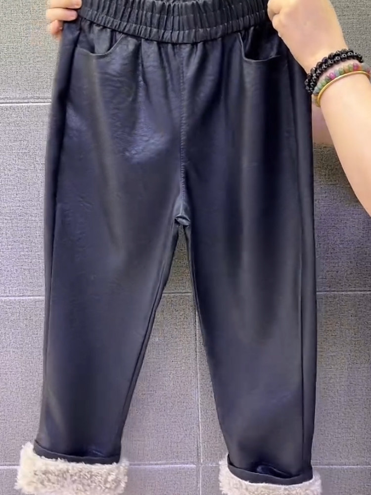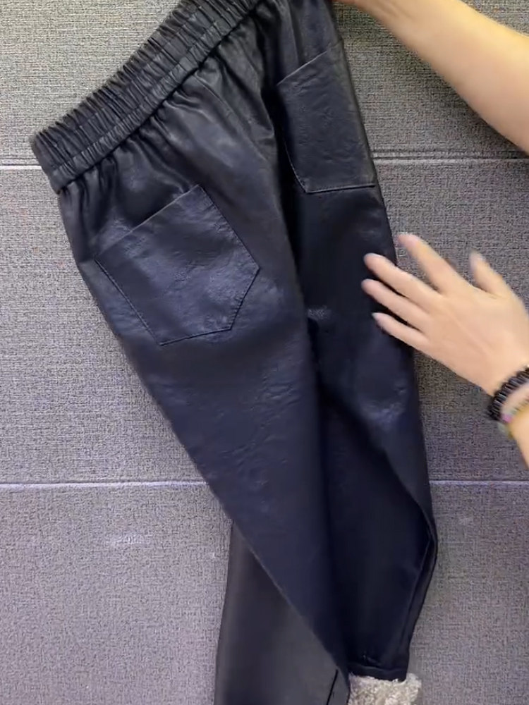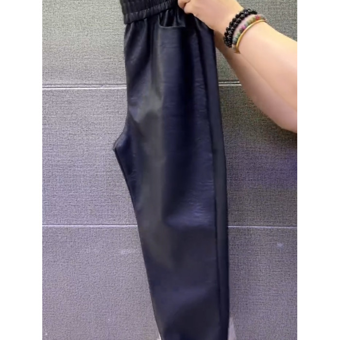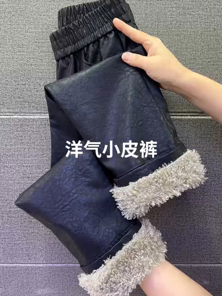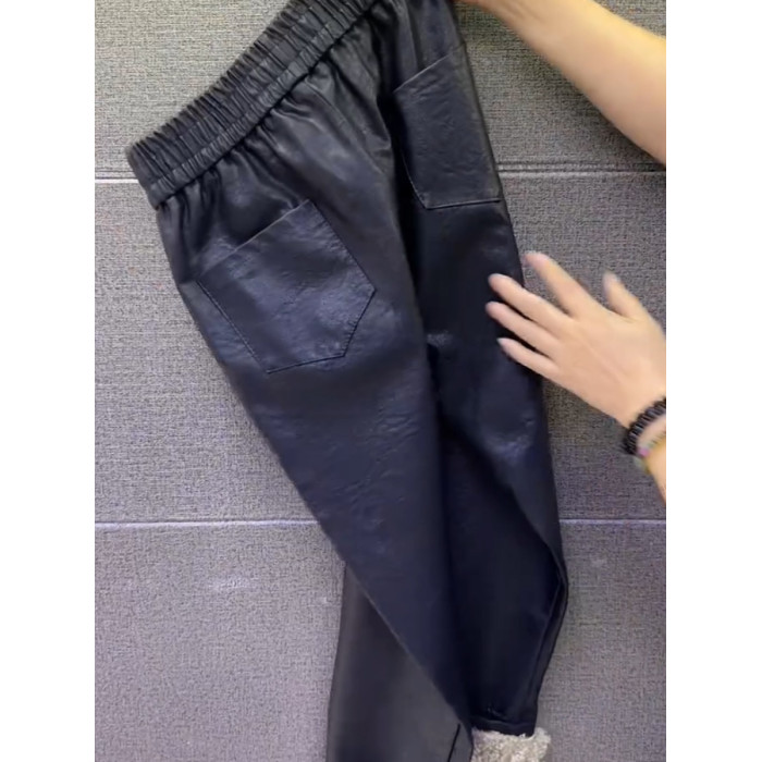 今年新款黑色松緊腰加絨皮褲女秋冬季高腰羊羔毛時尚超火哈倫褲