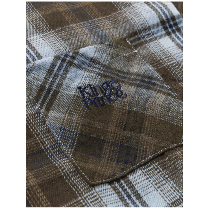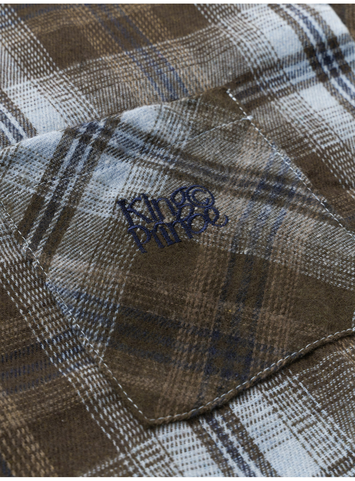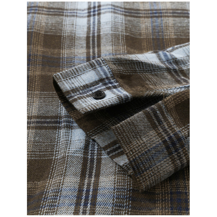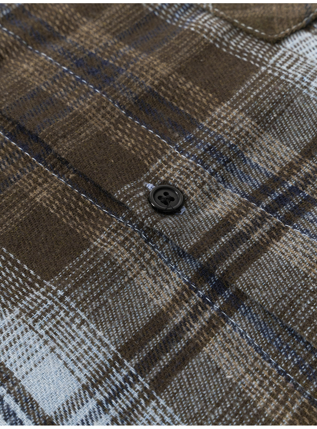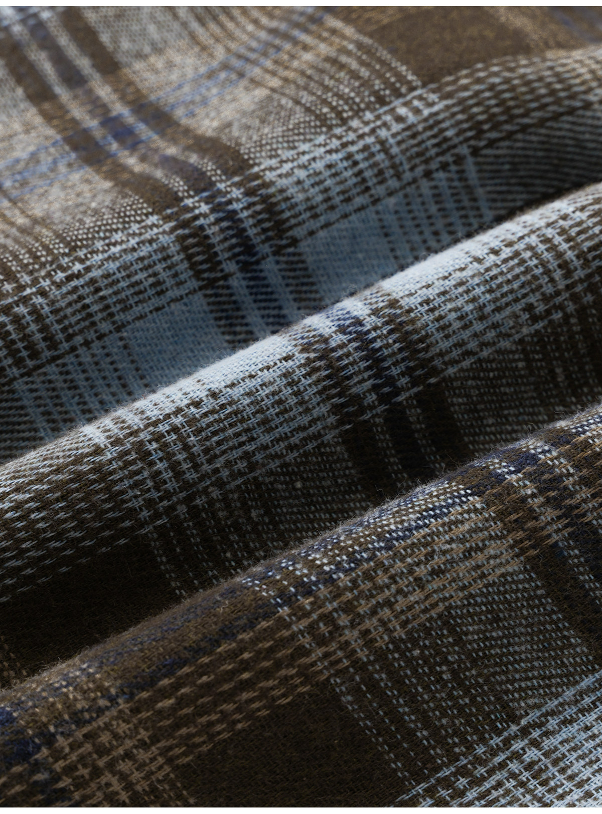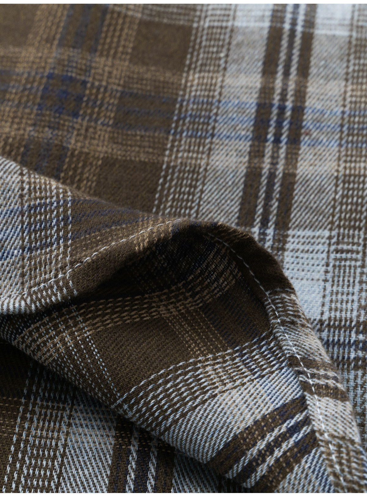 美式復古風雙色磨毛格紋Polo領長袖襯衫女裝秋季寬鬆百搭上衣外套