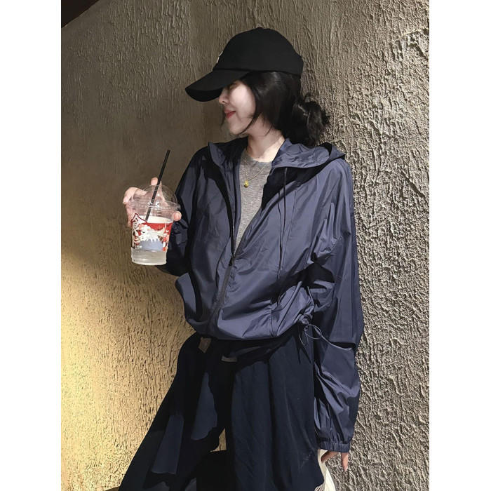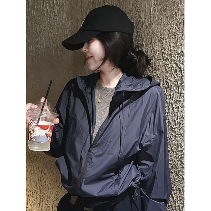 歐貨爆款高級感超好看上衣超火休閒戶外運動連帽沖鋒衣防曬外套秋