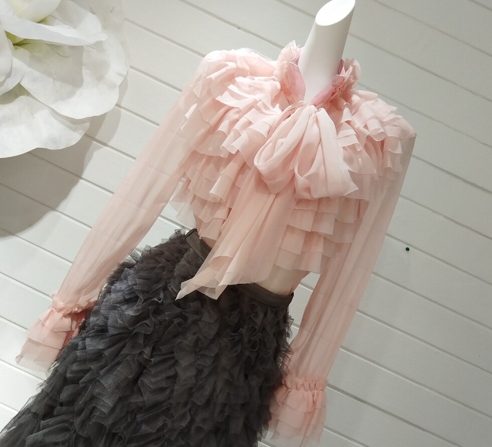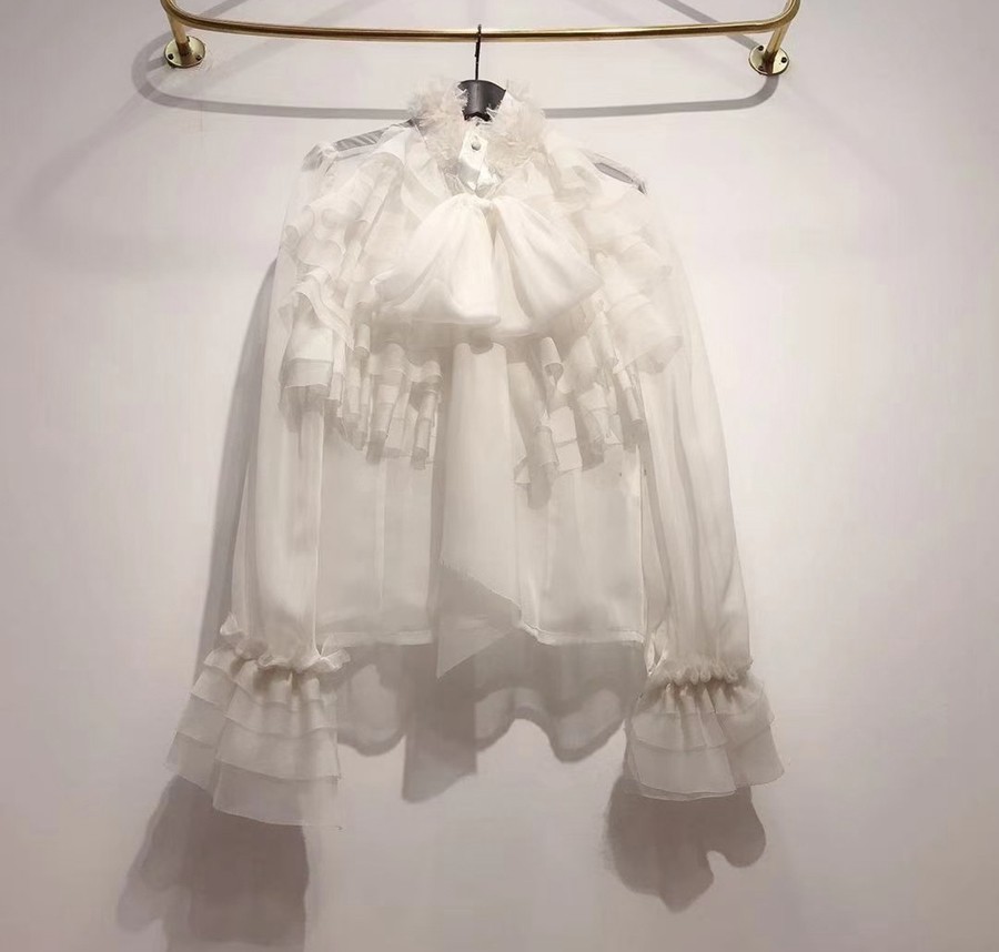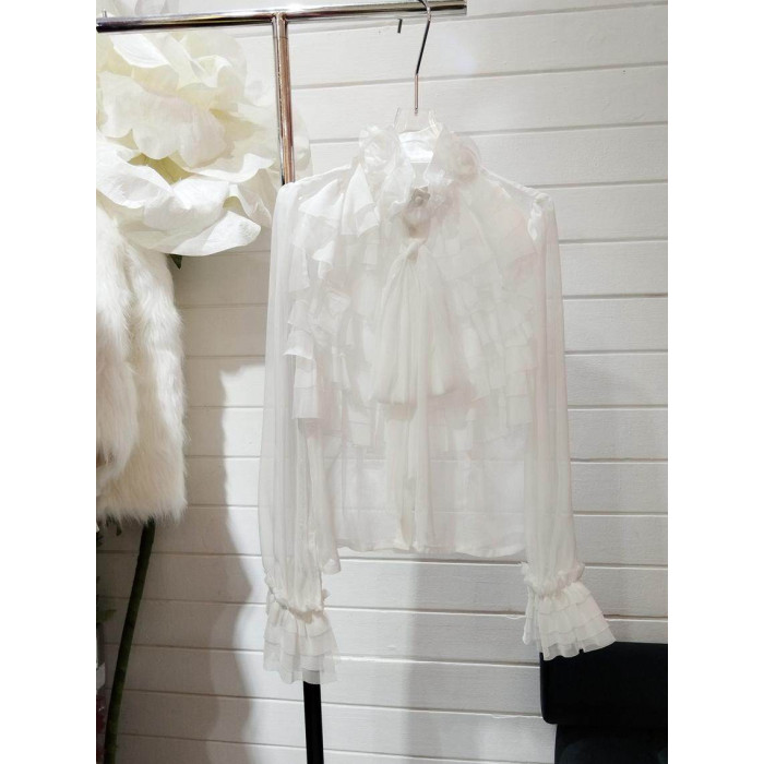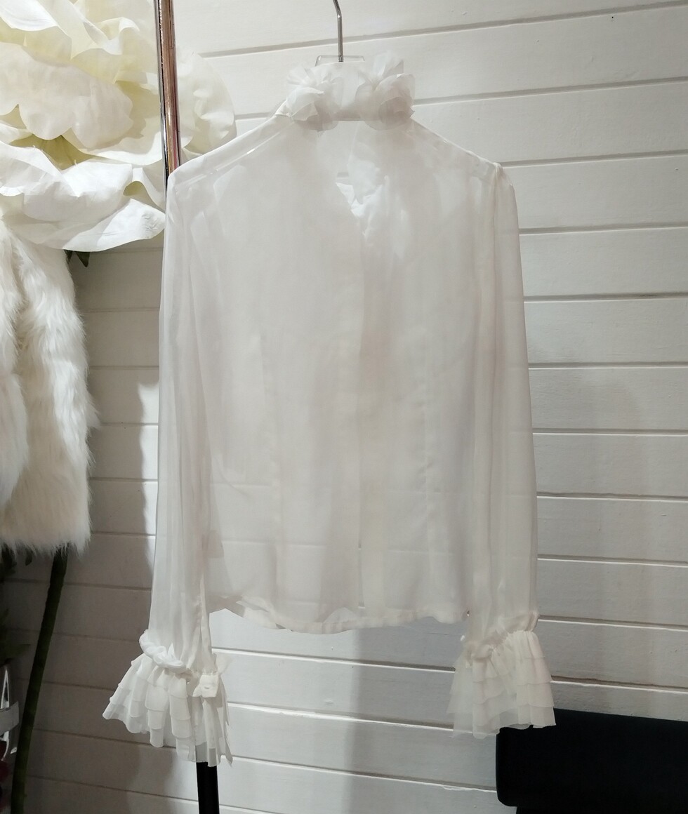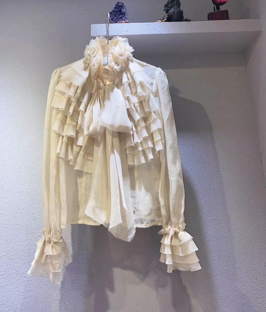 法式小衆復古設計感立領層次顯瘦宮廷雪紡襯衣女輕奢風荷葉邊襯衫