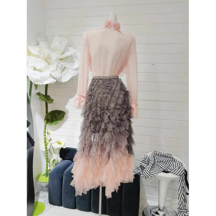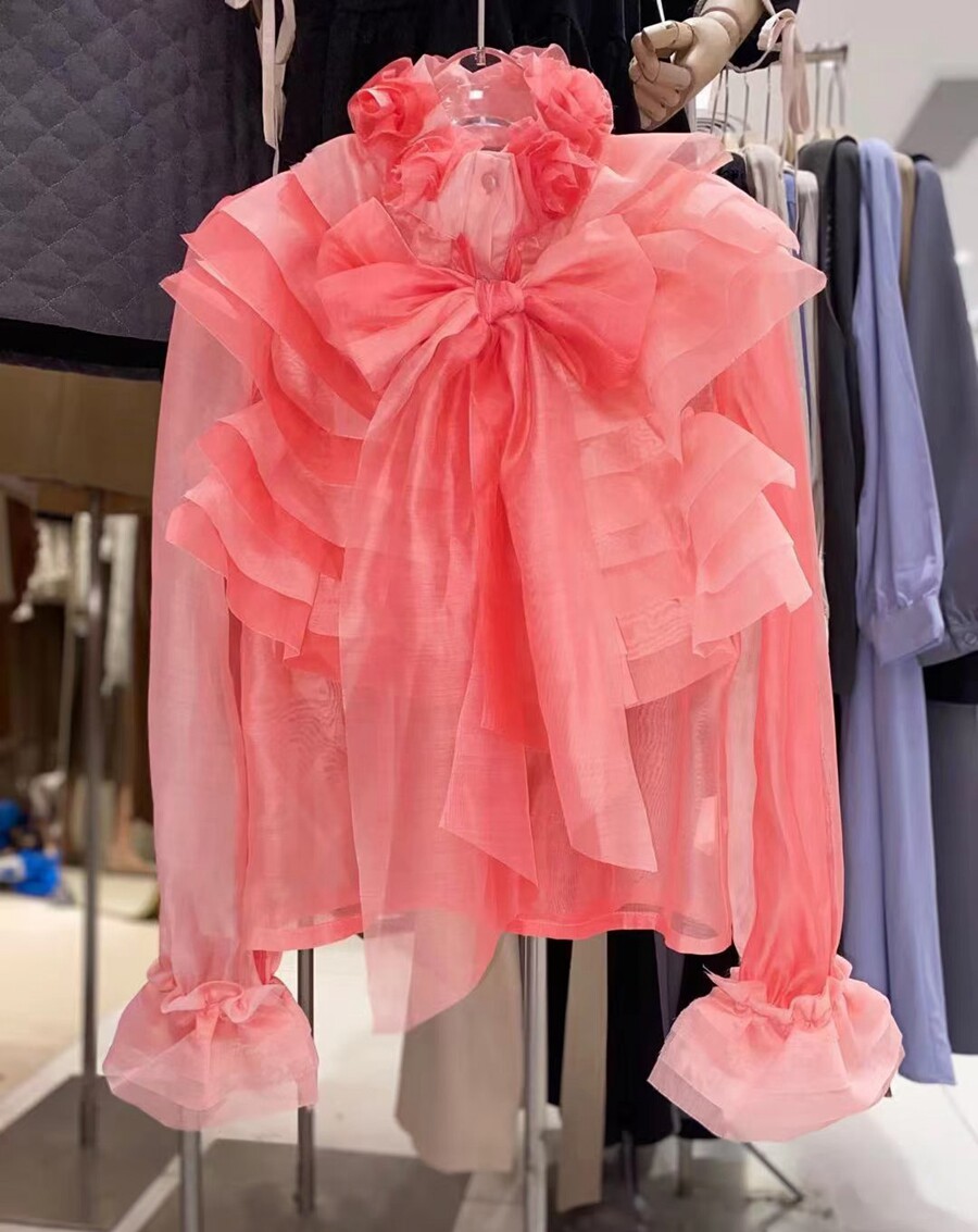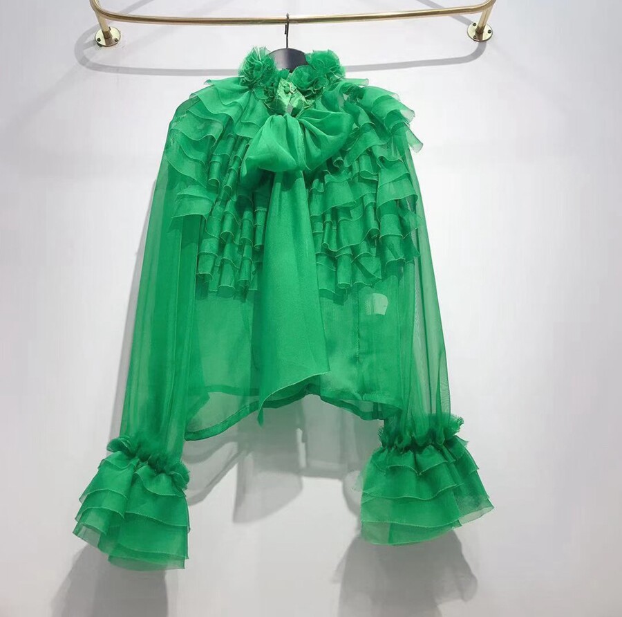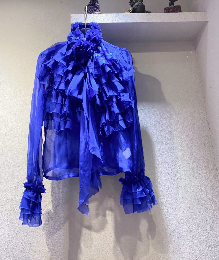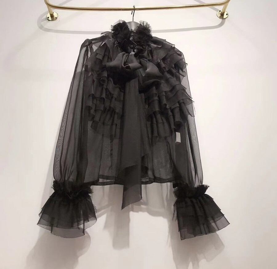 法式小衆復古設計感立領層次顯瘦宮廷雪紡襯衣女輕奢風荷葉邊襯衫