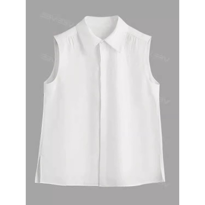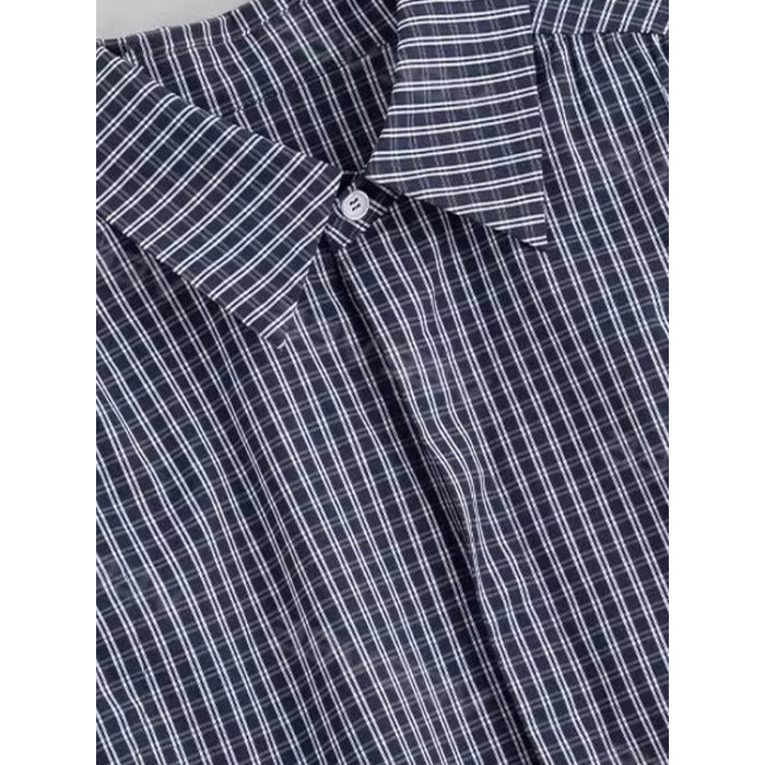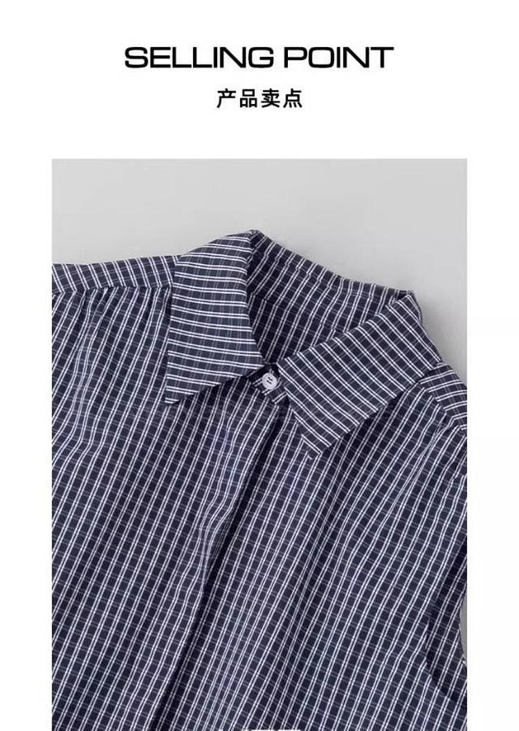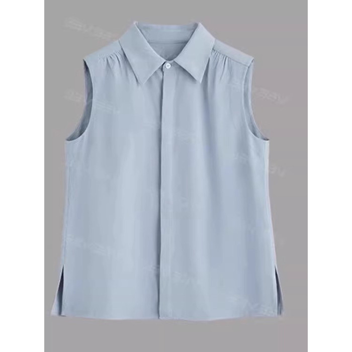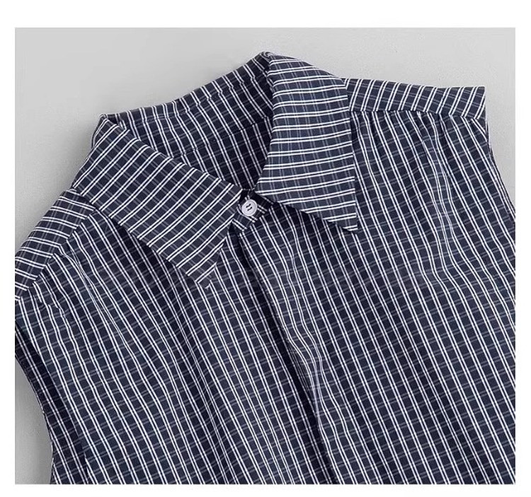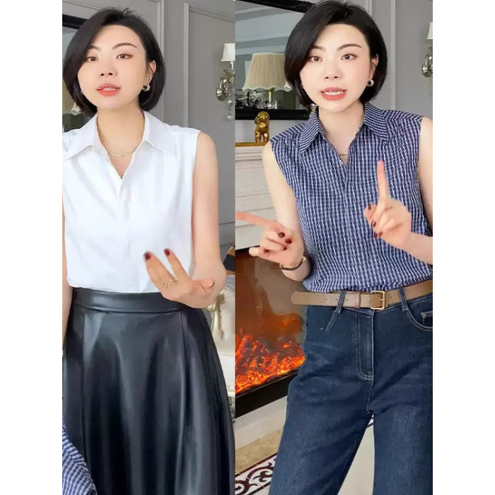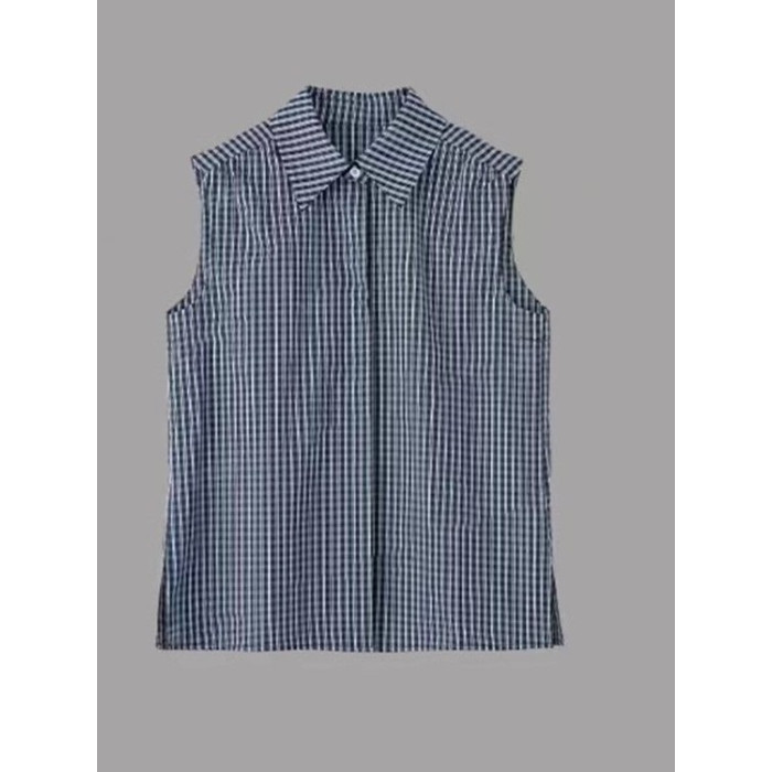 藍色格子無袖襯衫女春裝內搭曡穿神器POLO襯衣帶領子坎肩馬甲背心