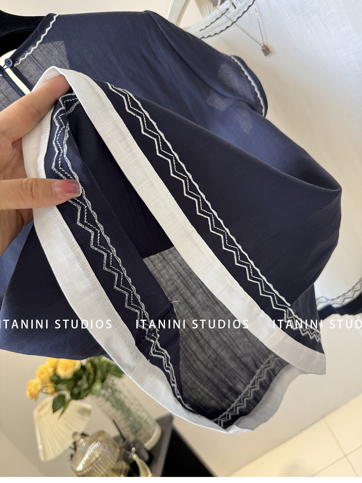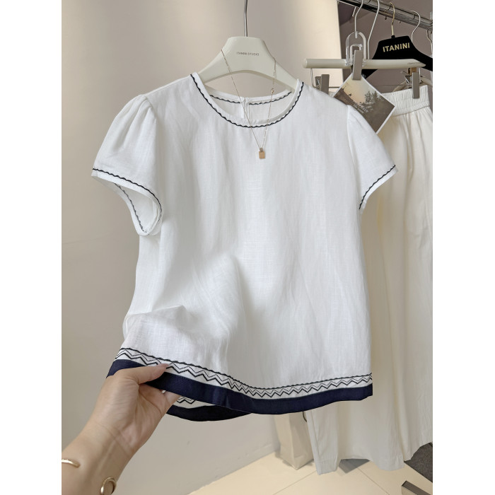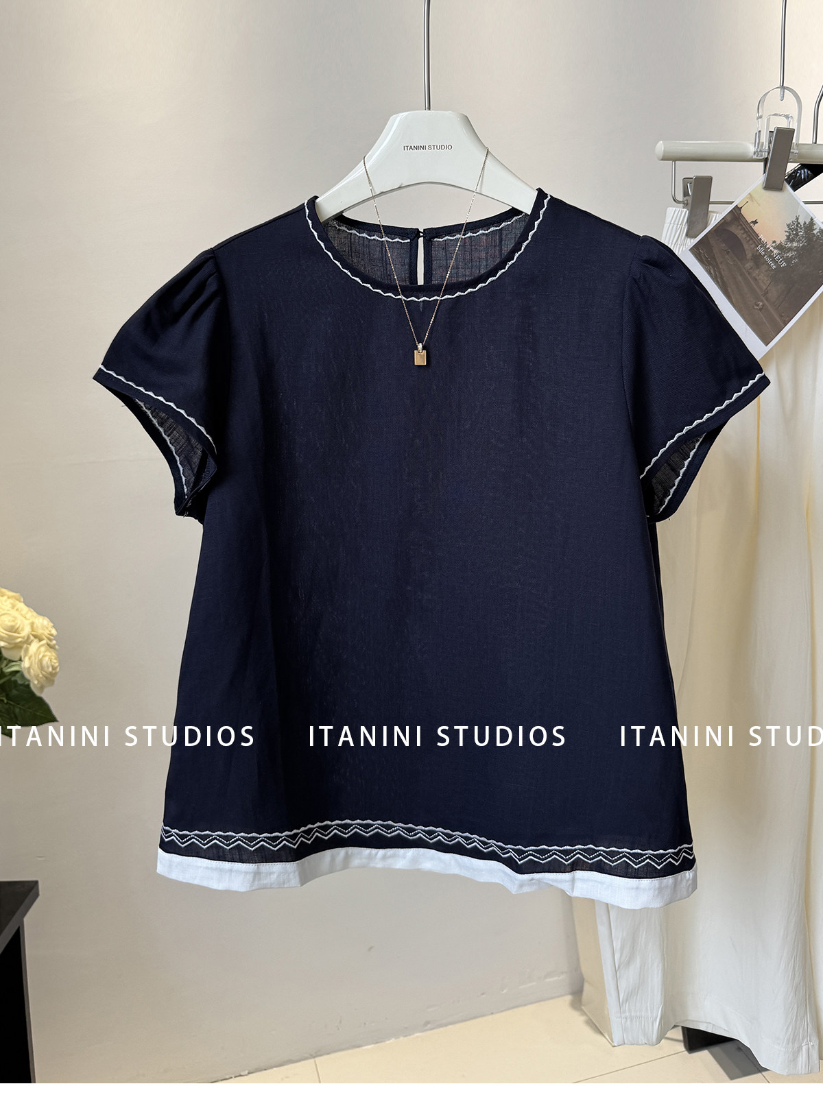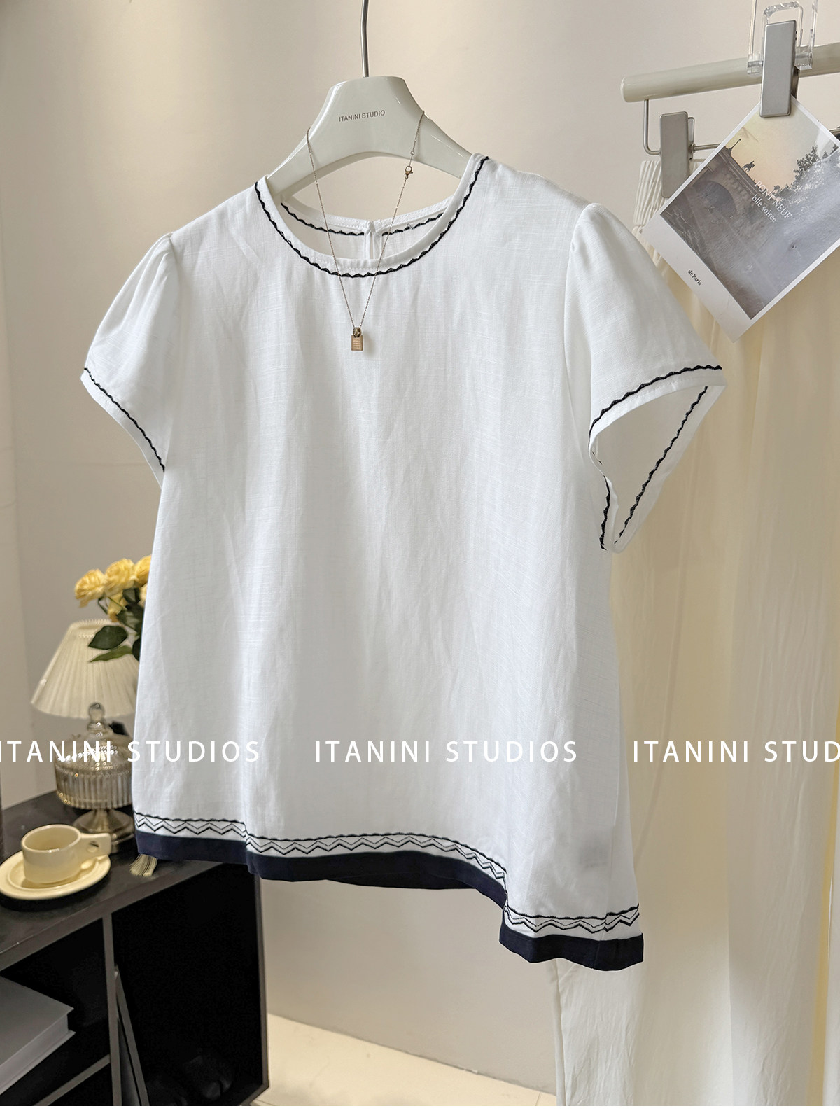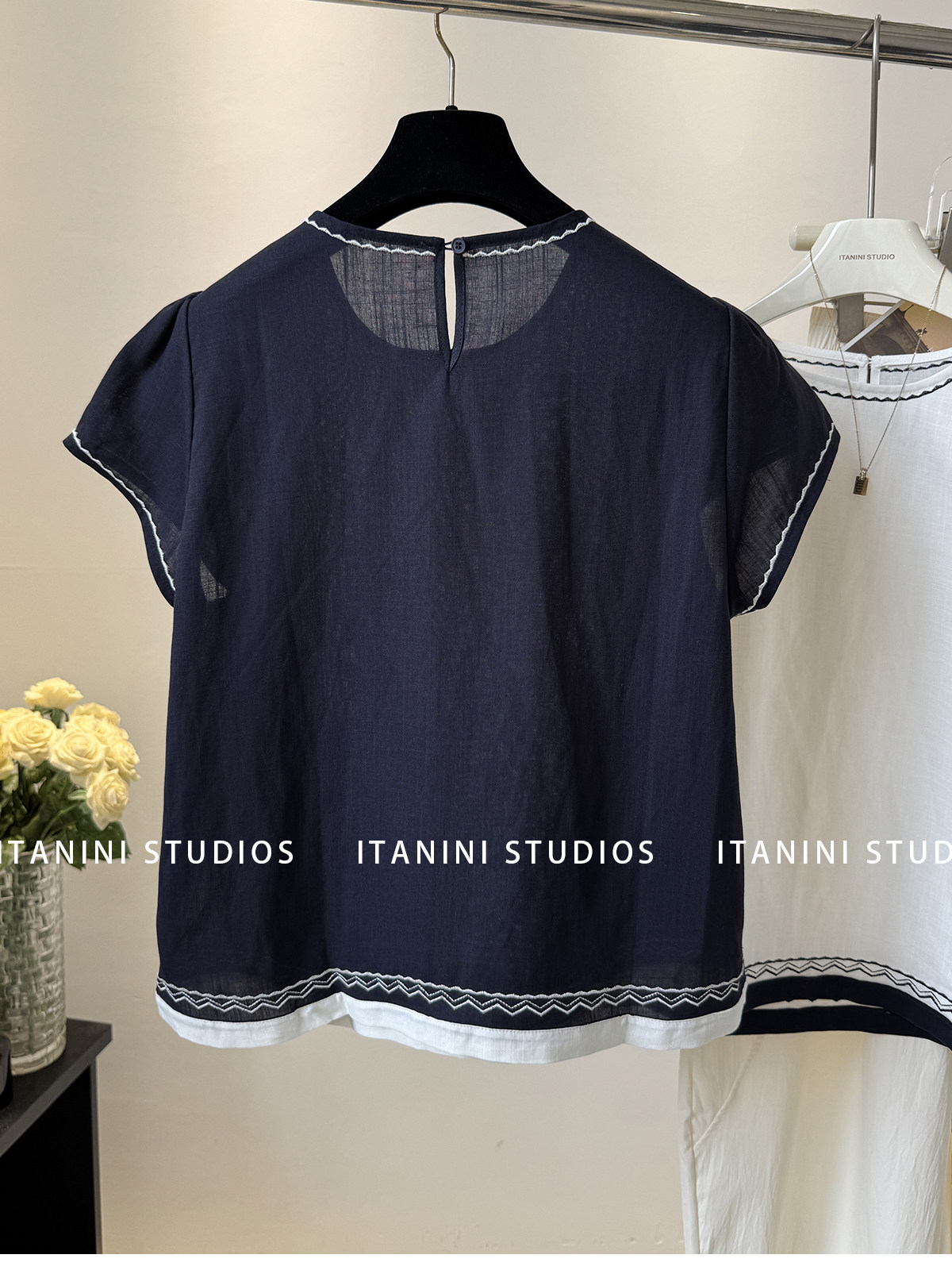 高級感襯衫女裝短袖2026夏季新款刺綉圓領寬鬆顯瘦韓系棉麻上衣薄