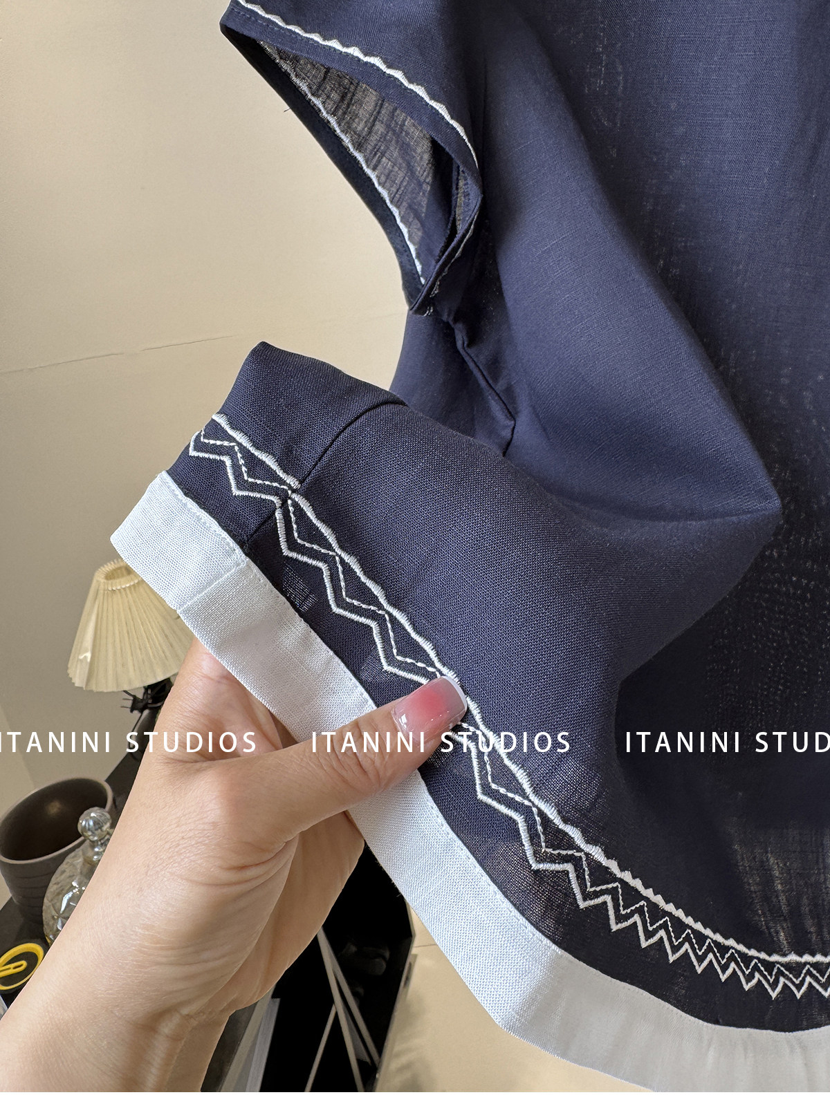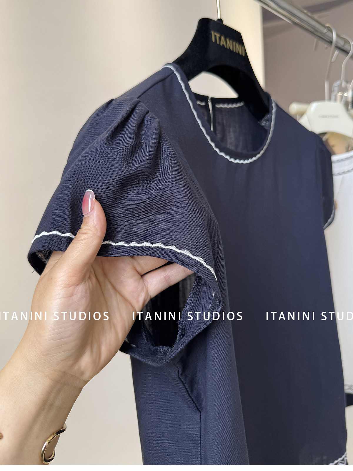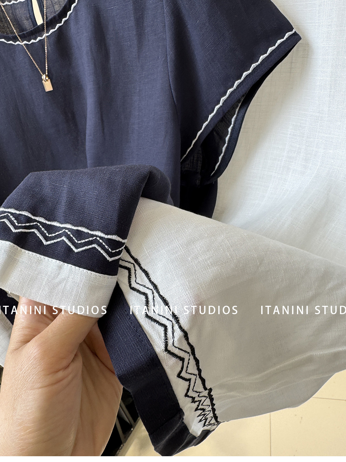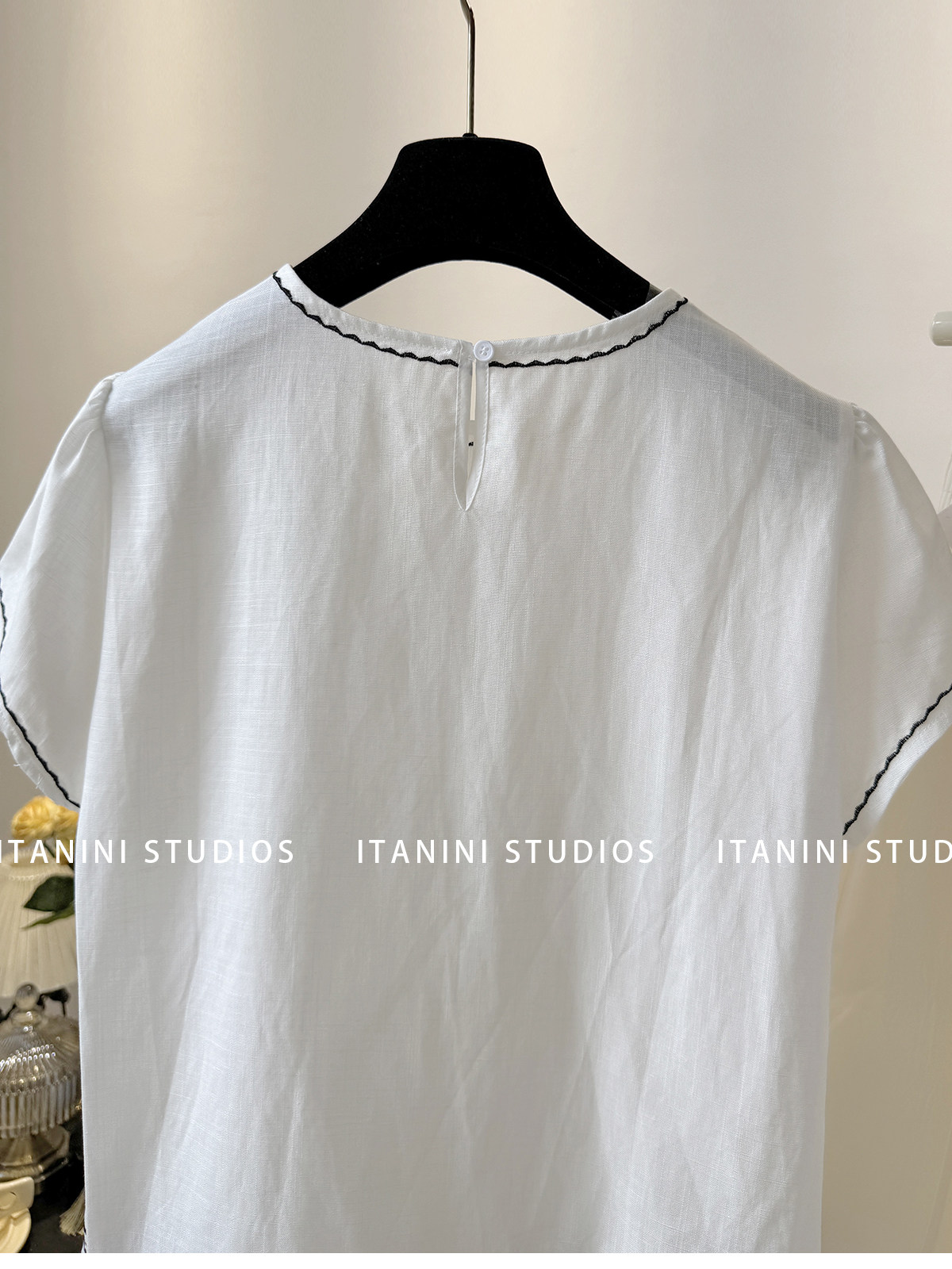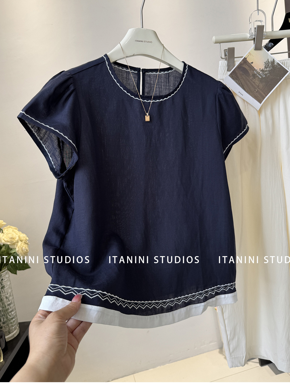 高級感襯衫女裝短袖2026夏季新款刺綉圓領寬鬆顯瘦韓系棉麻上衣薄