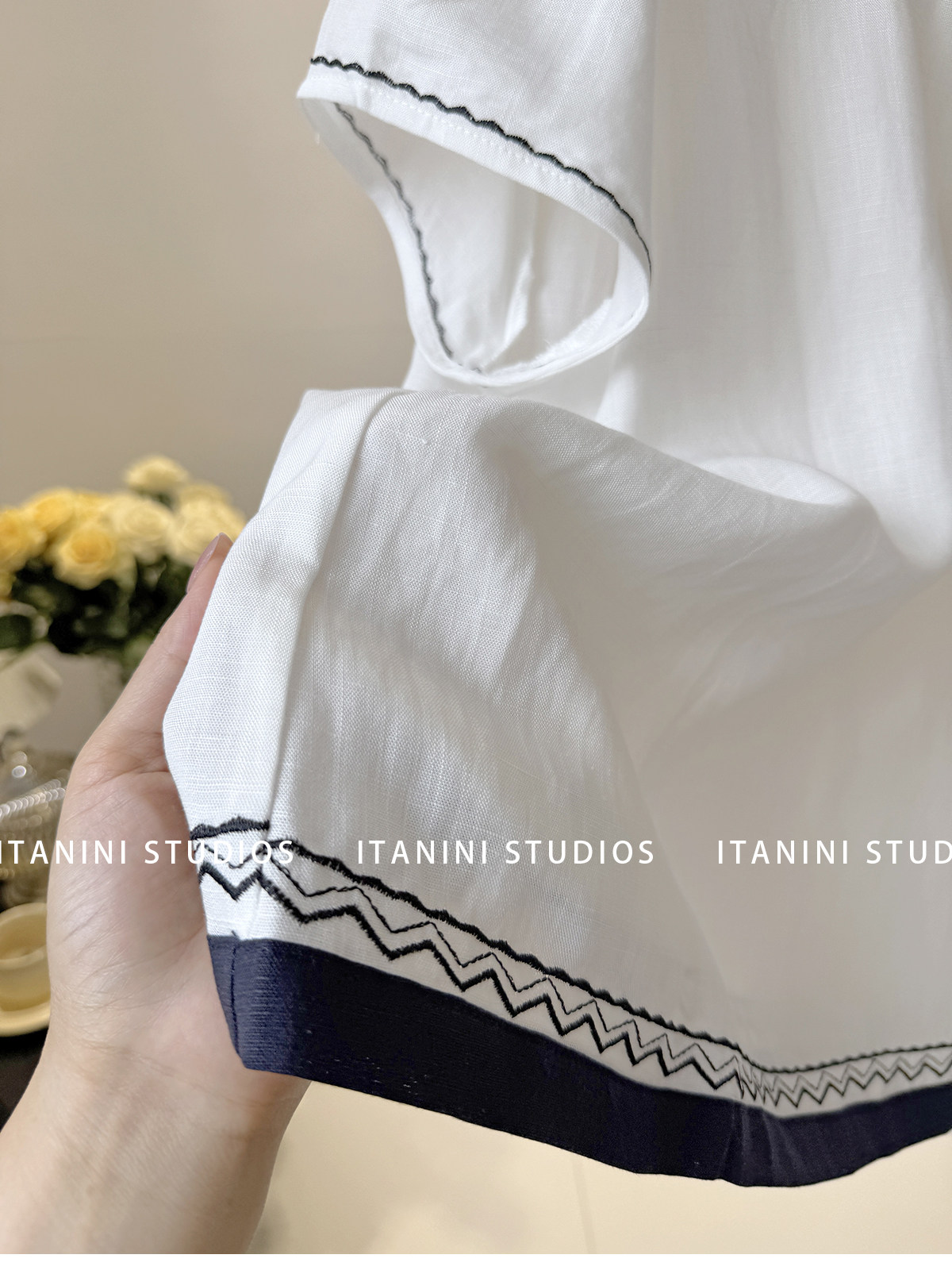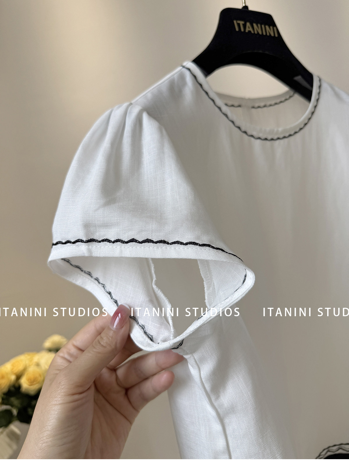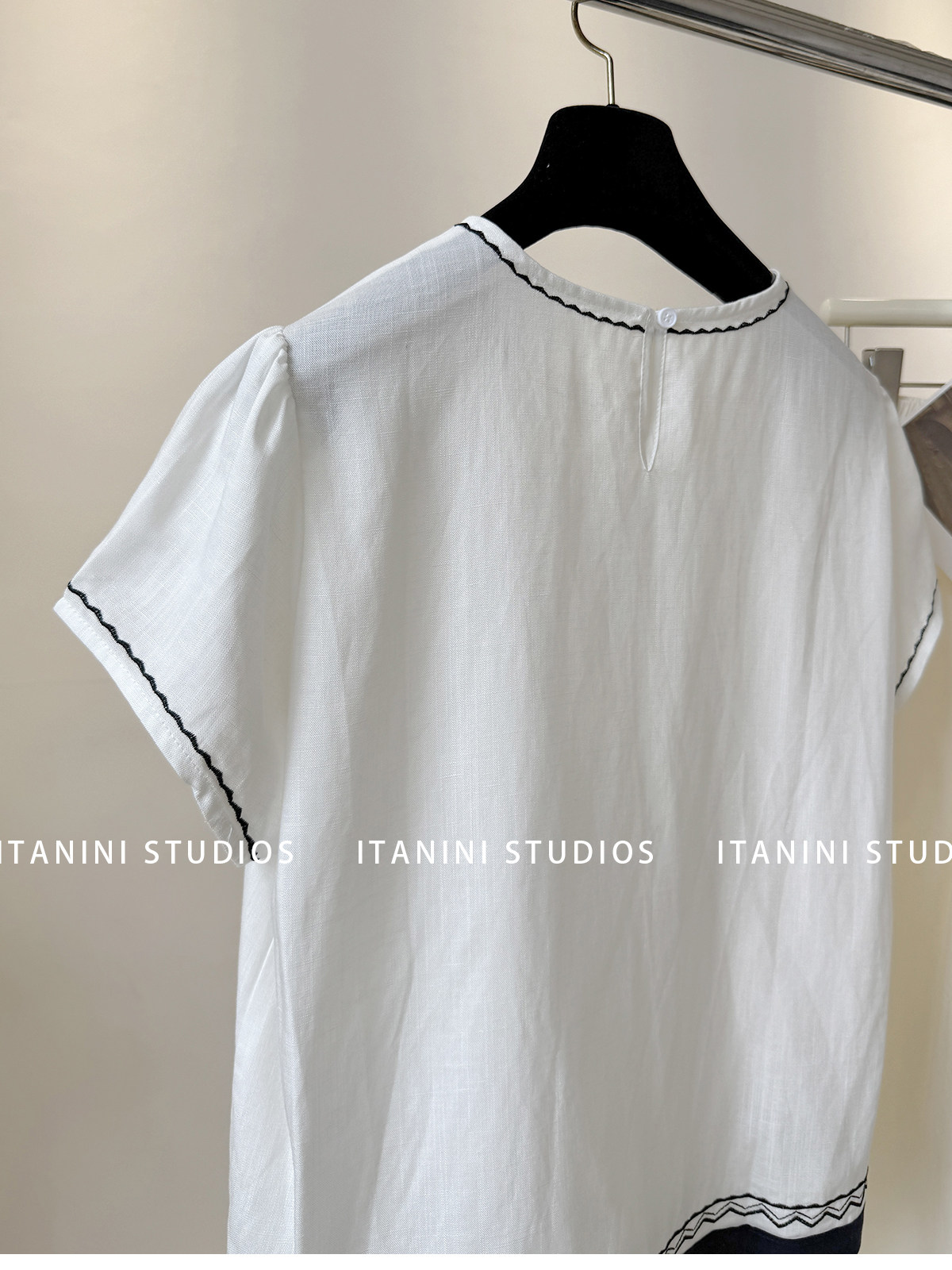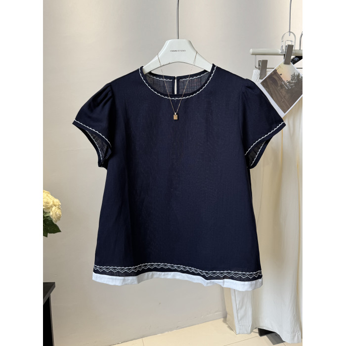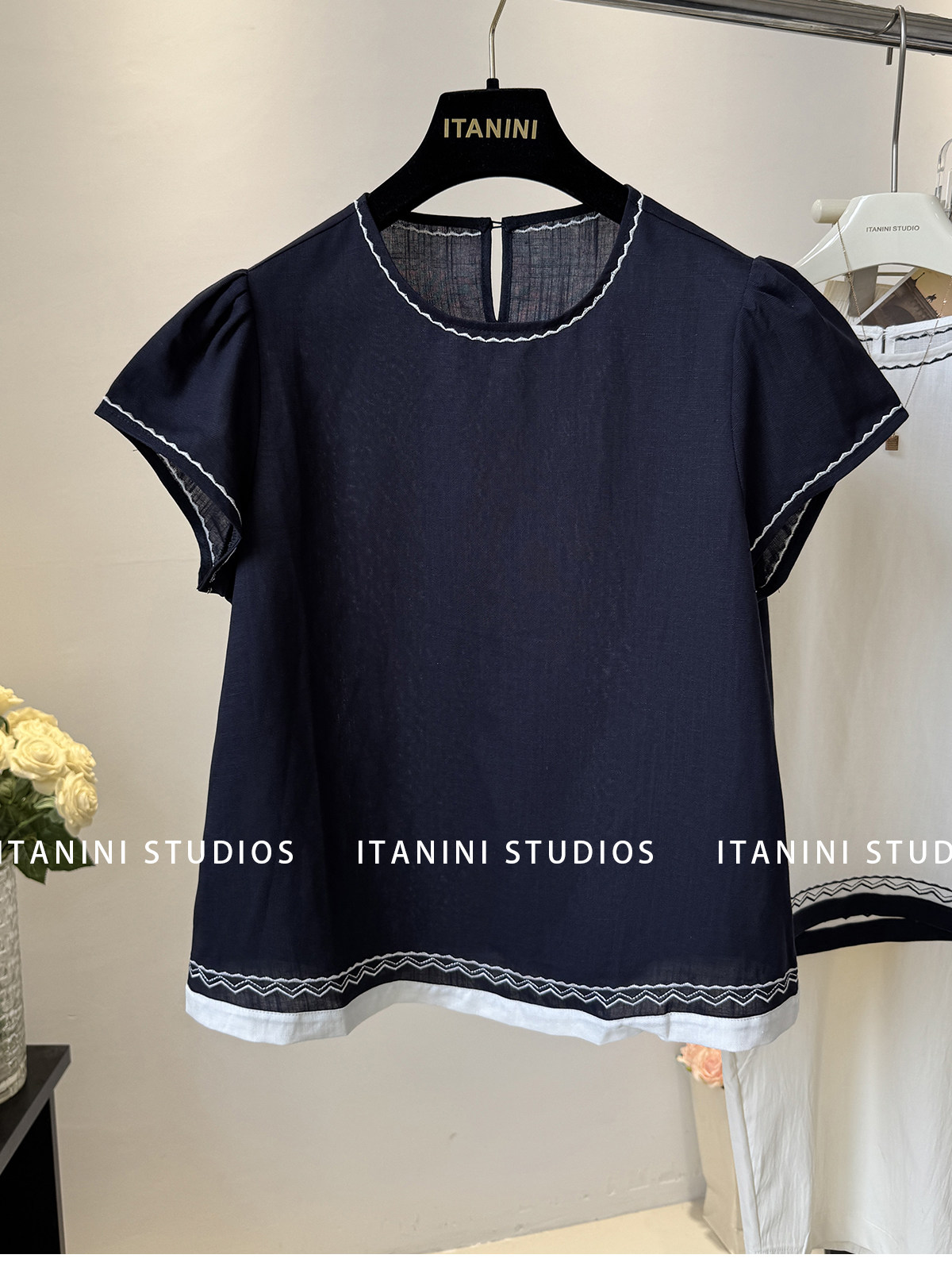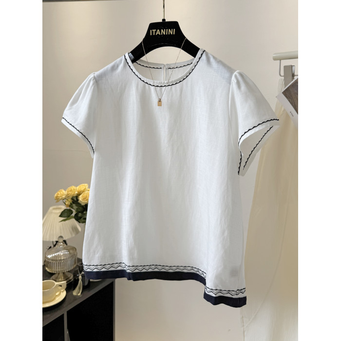 高級感襯衫女裝短袖2026夏季新款刺綉圓領寬鬆顯瘦韓系棉麻上衣薄