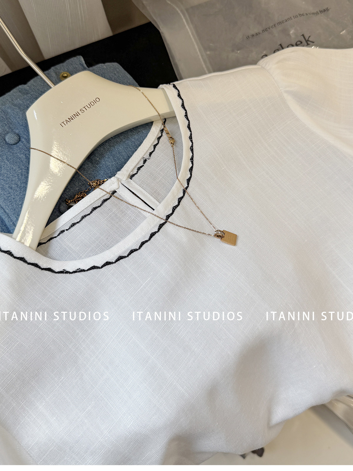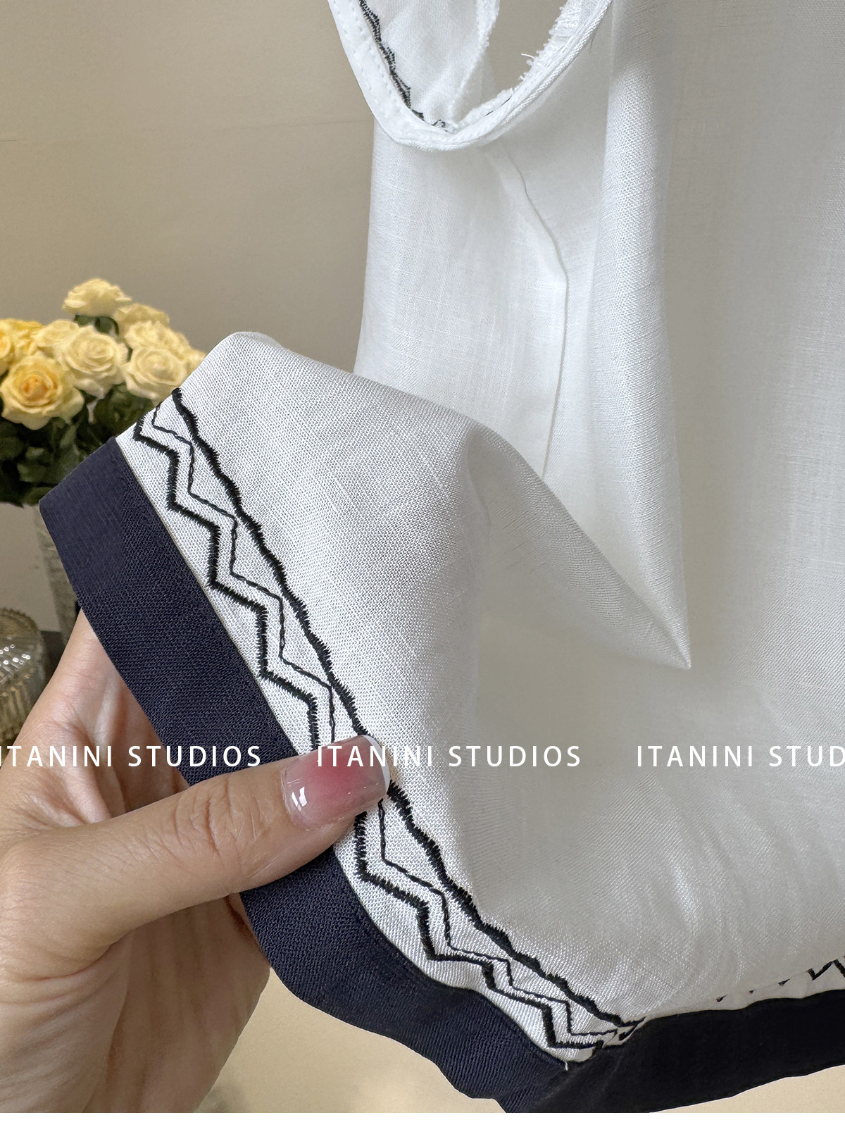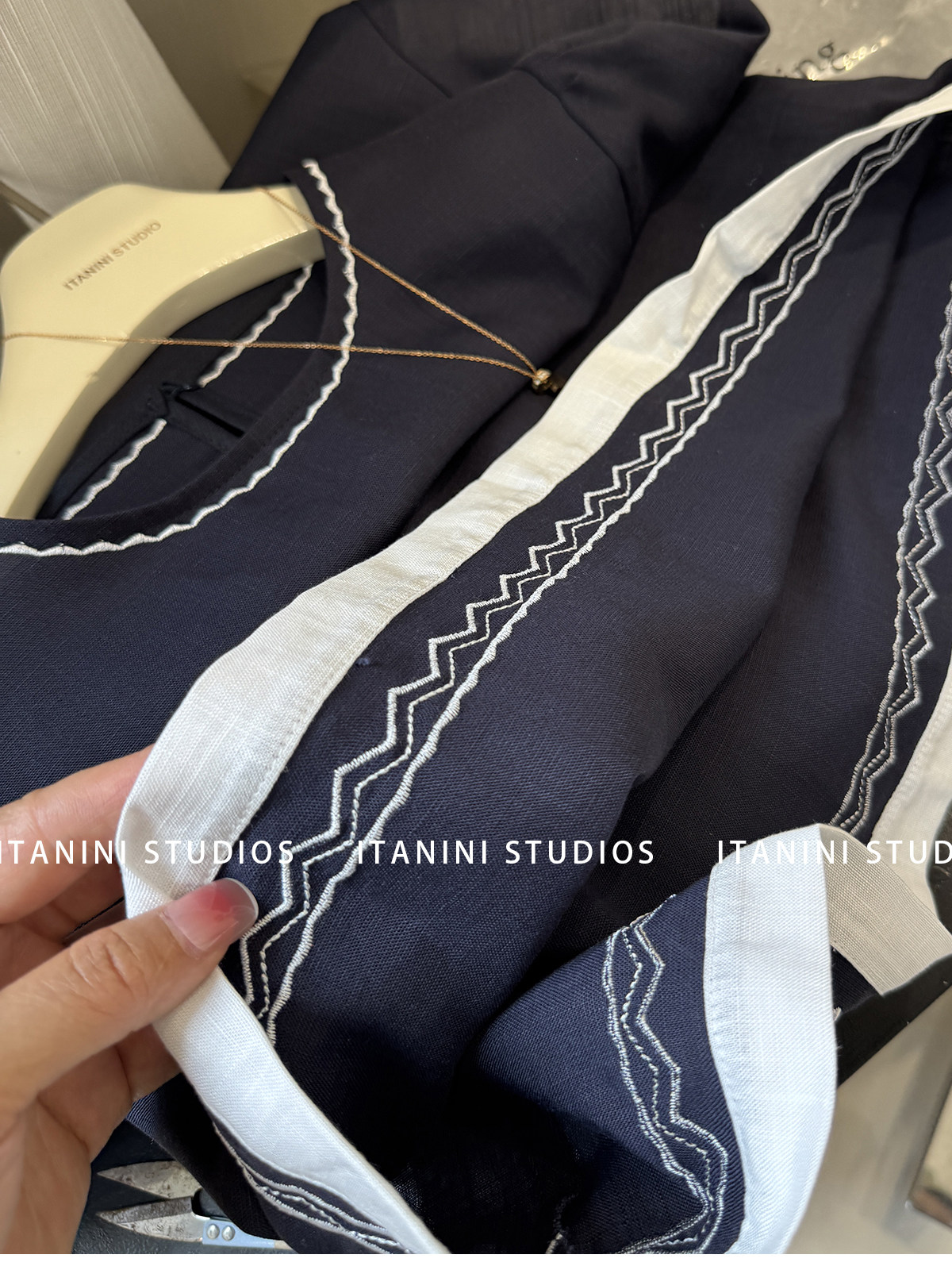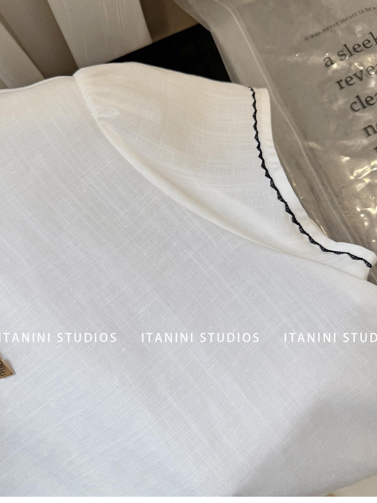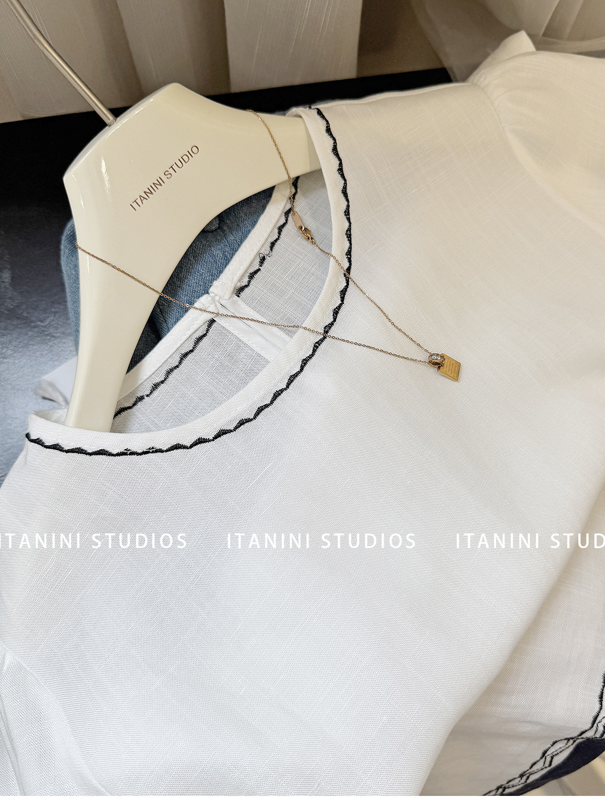 高級感襯衫女裝短袖2026夏季新款刺綉圓領寬鬆顯瘦韓系棉麻上衣薄