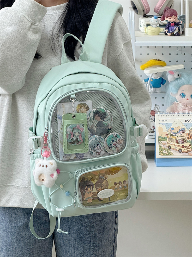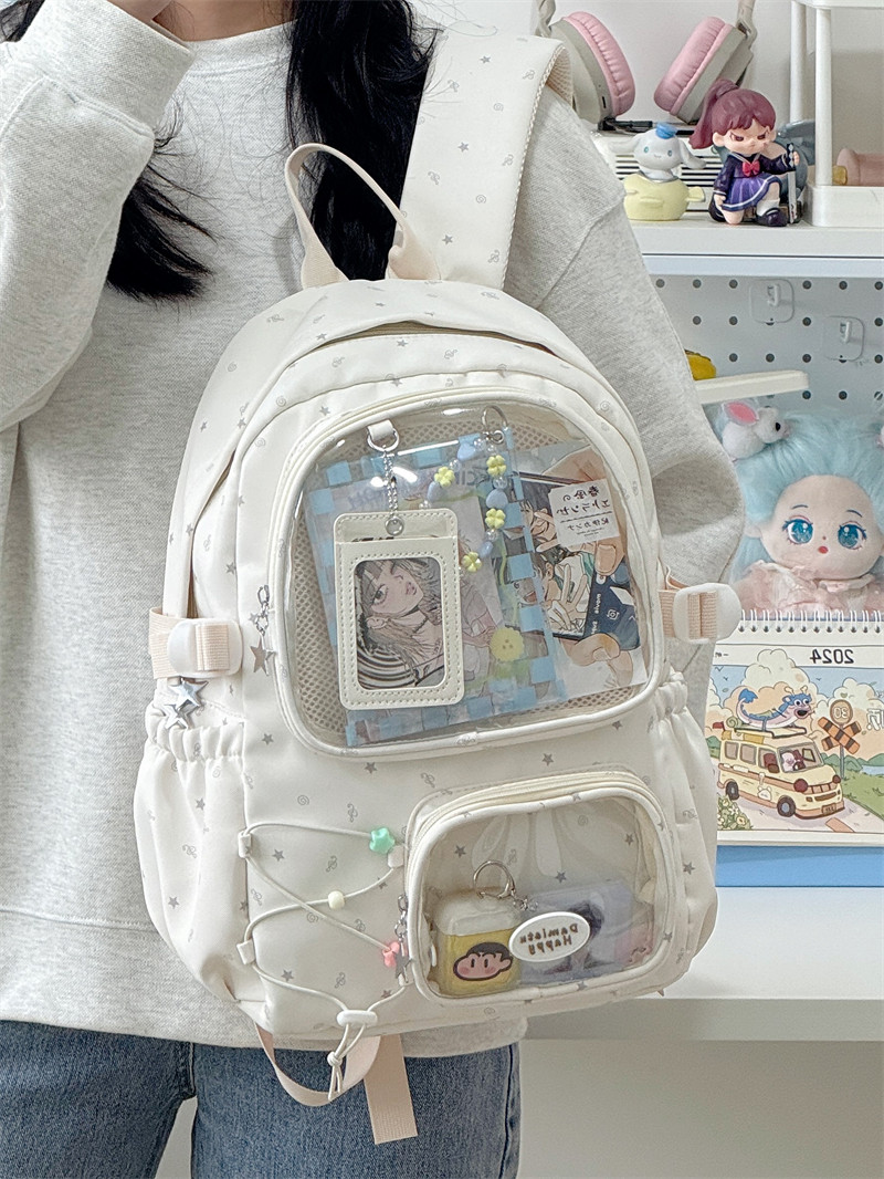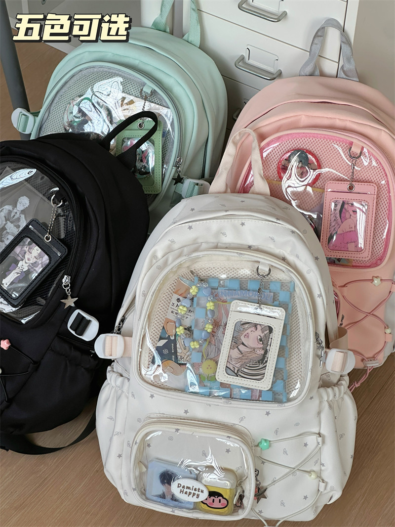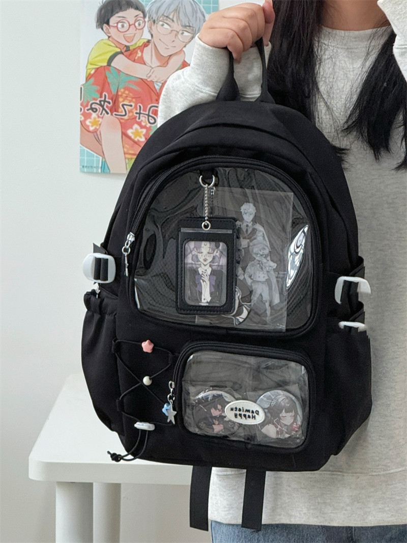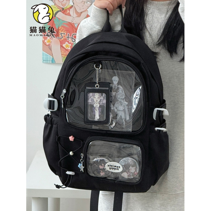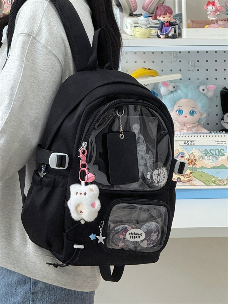 黑色痛包雙肩可愛大容量帶透明層後後背包娃包肩包初中生高顔值書包女