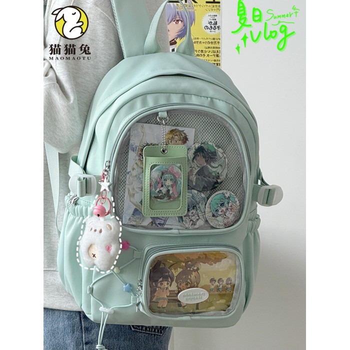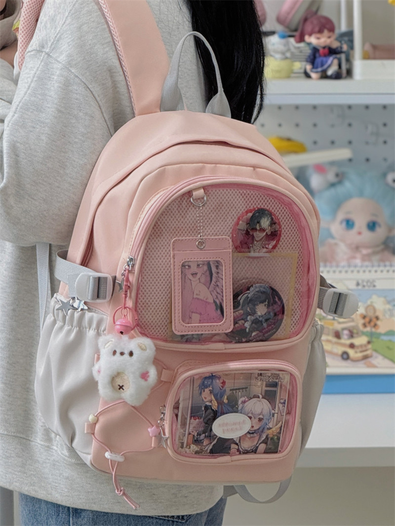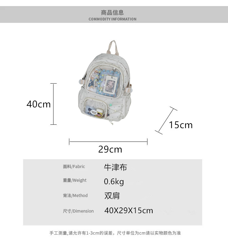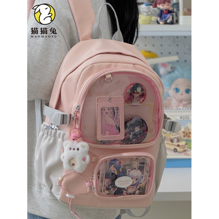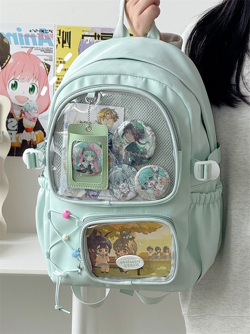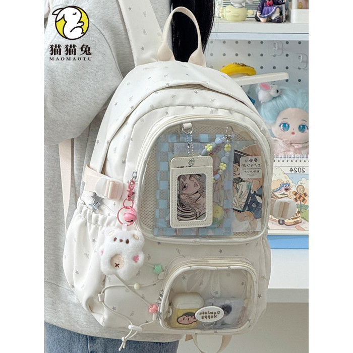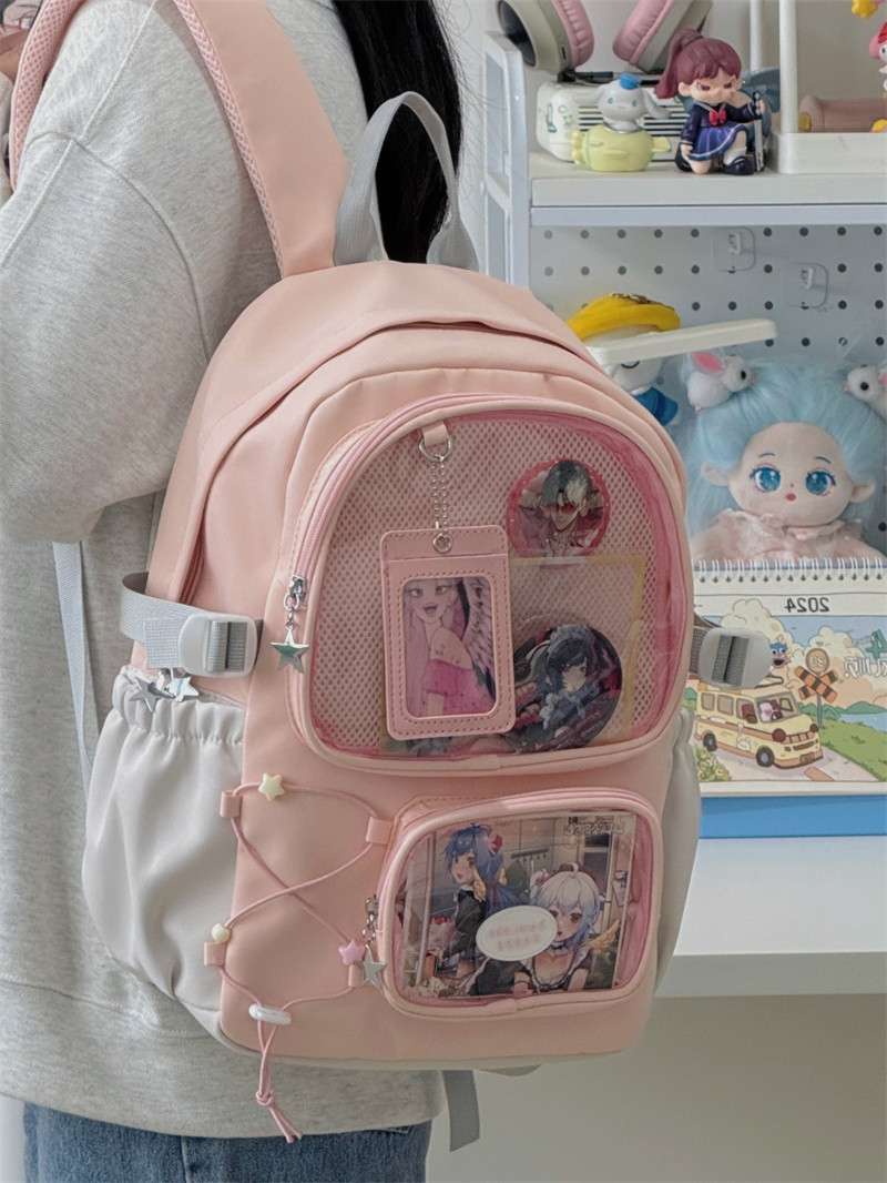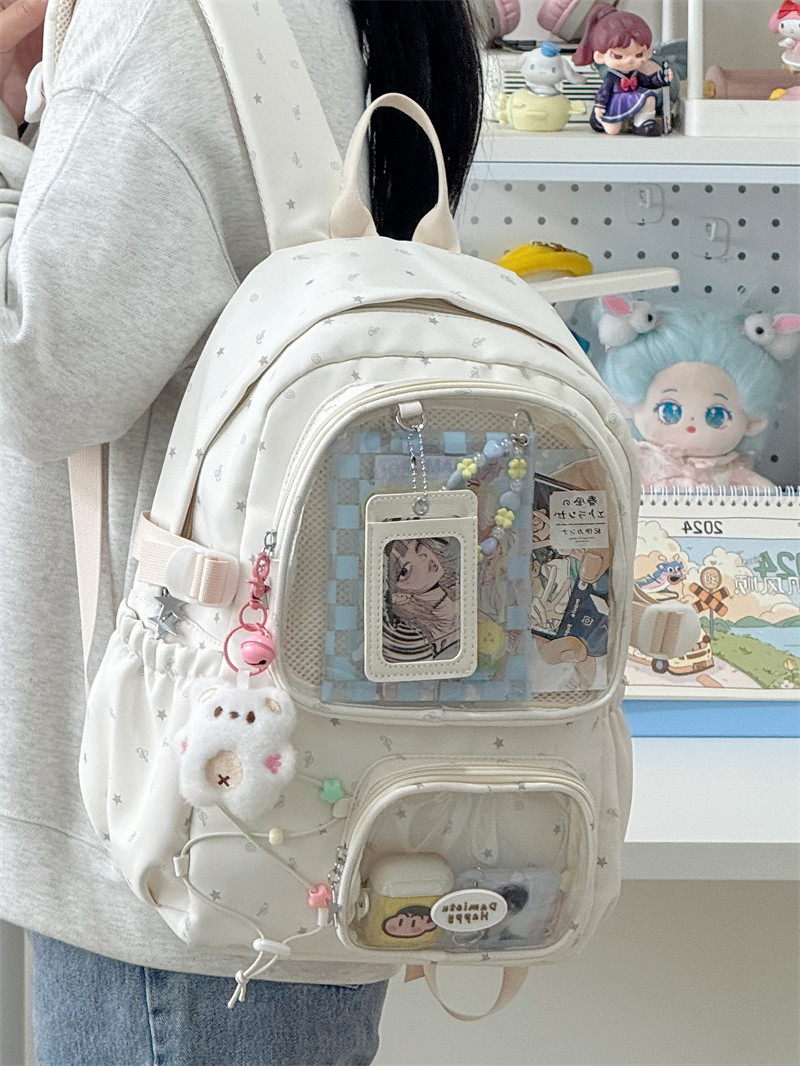 黑色痛包雙肩可愛大容量帶透明層後後背包娃包肩包初中生高顔值書包女