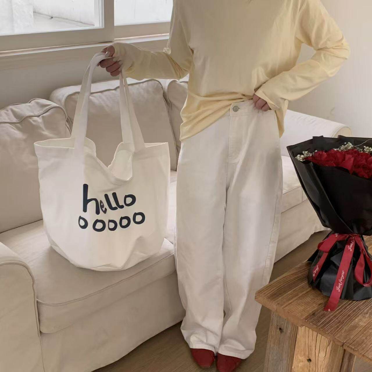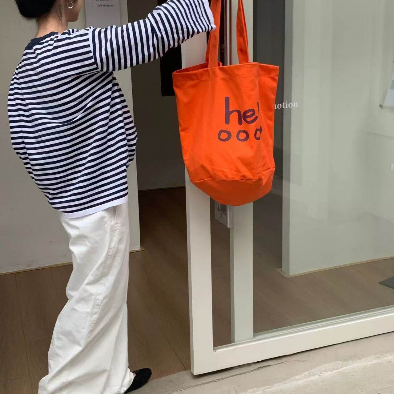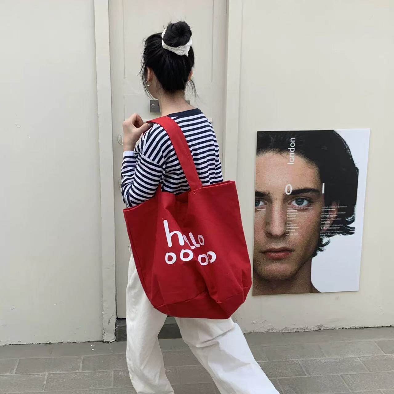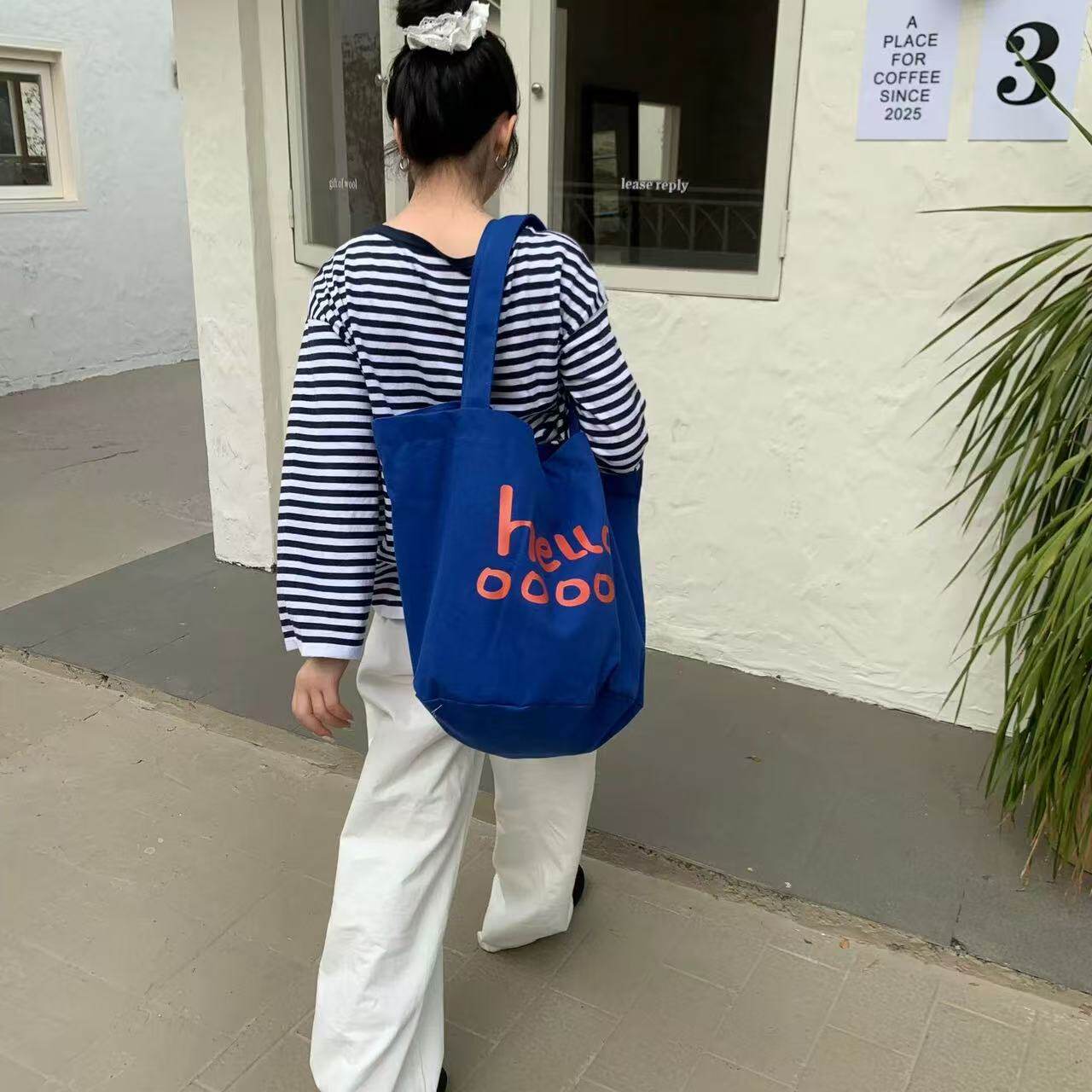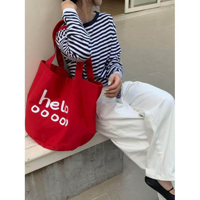 韓版2025春季新款字母帆布托特包大容量韓國百搭購物袋休閒女生包