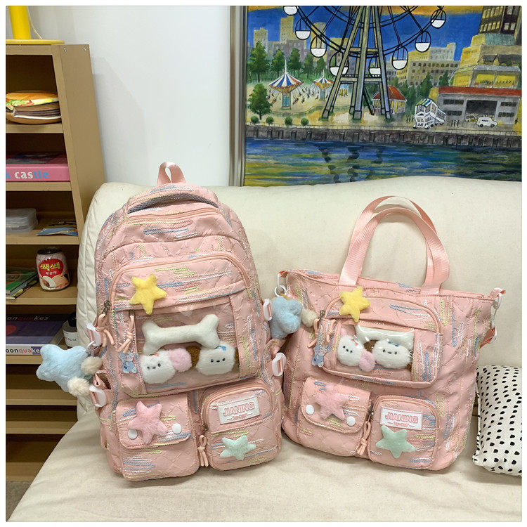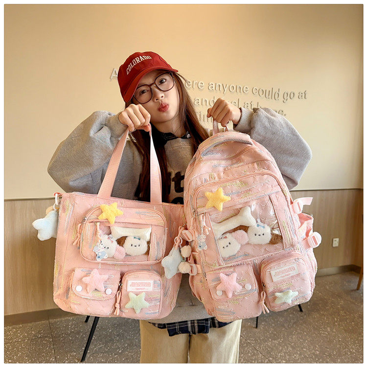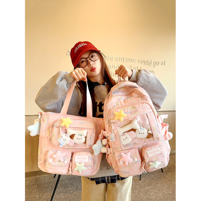 兒童書包女生小學生初中生高中女孩可愛字母後後背包大學生痛包雙肩包