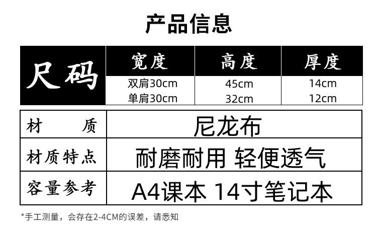 箱包尺寸 30x14x45cm