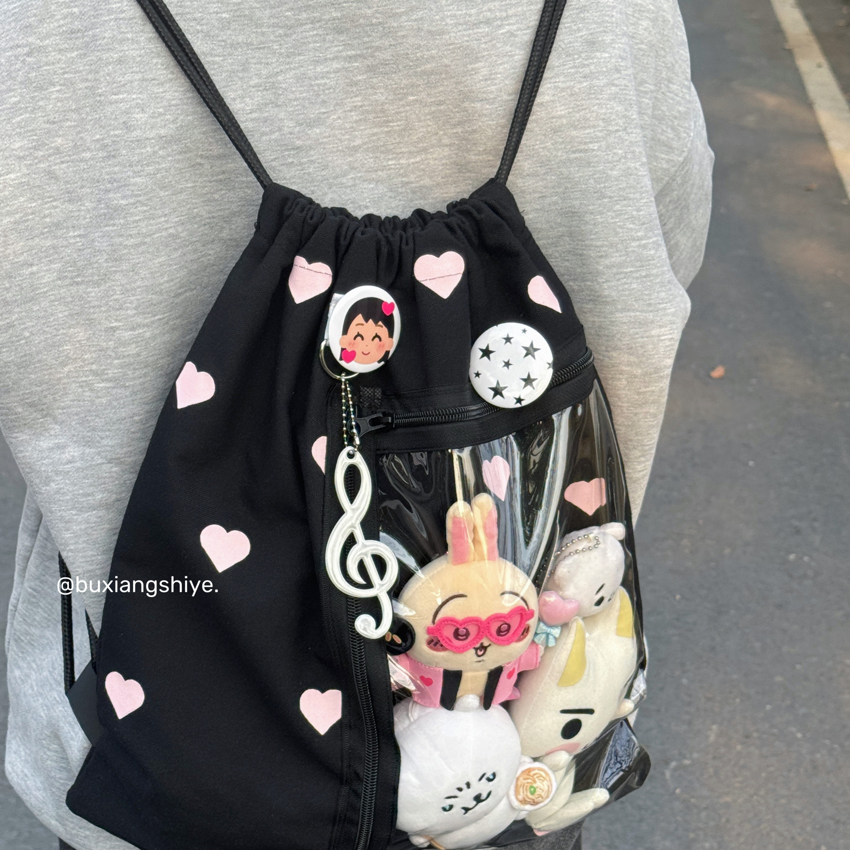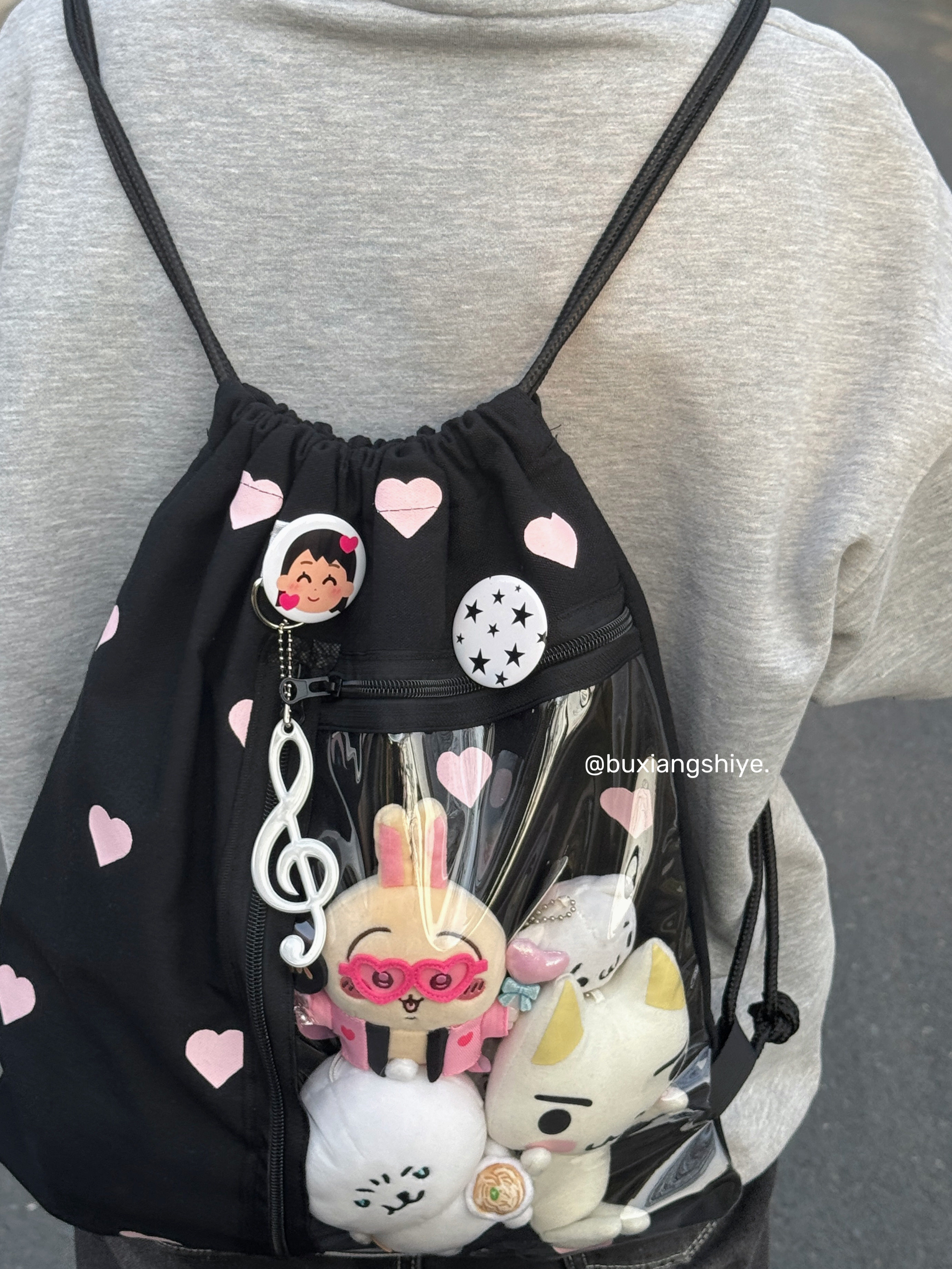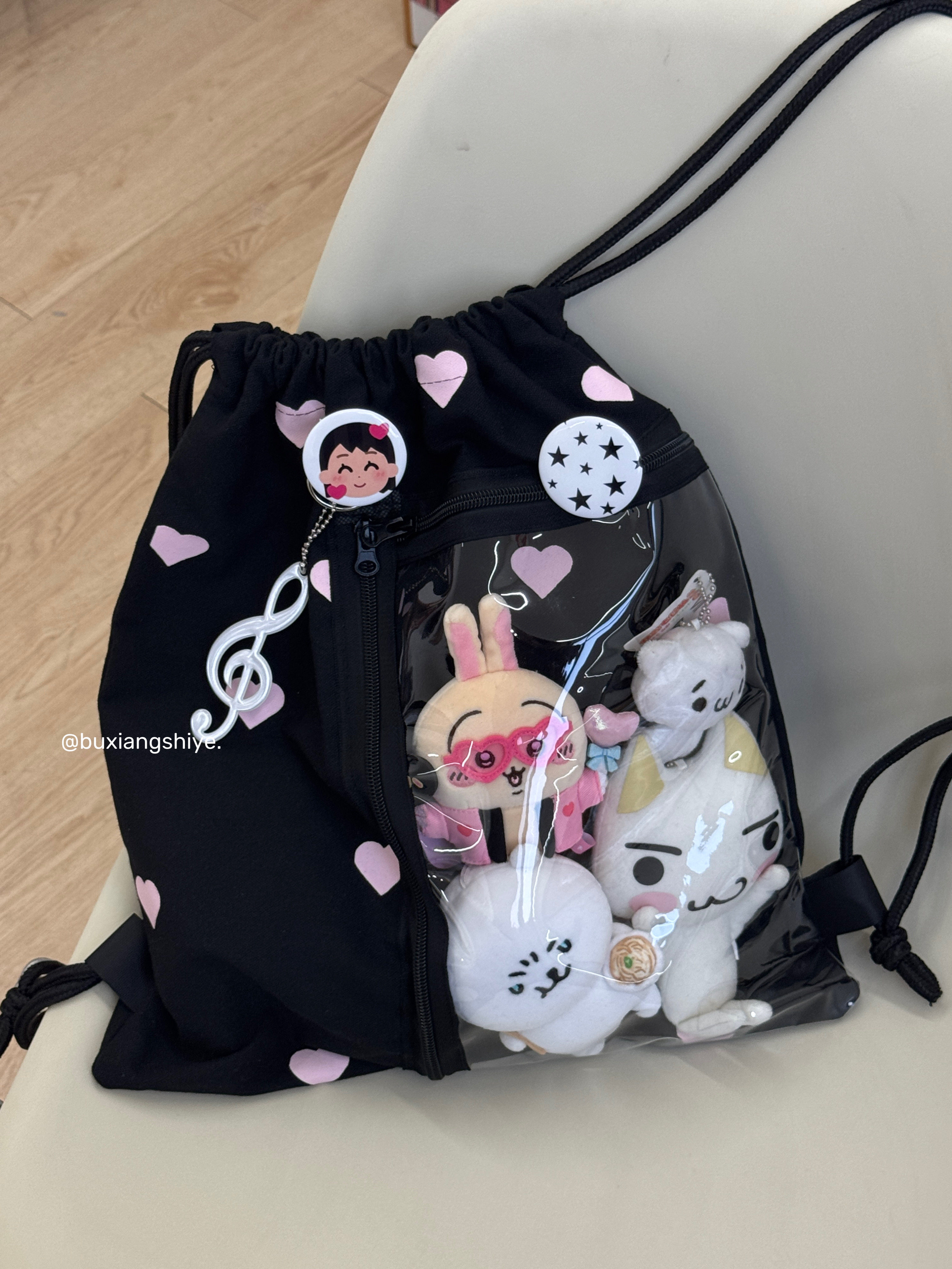 不想失業原創愛心抽繩痛包小衆黑色雙肩包簡約休閒學生大容量後後背包