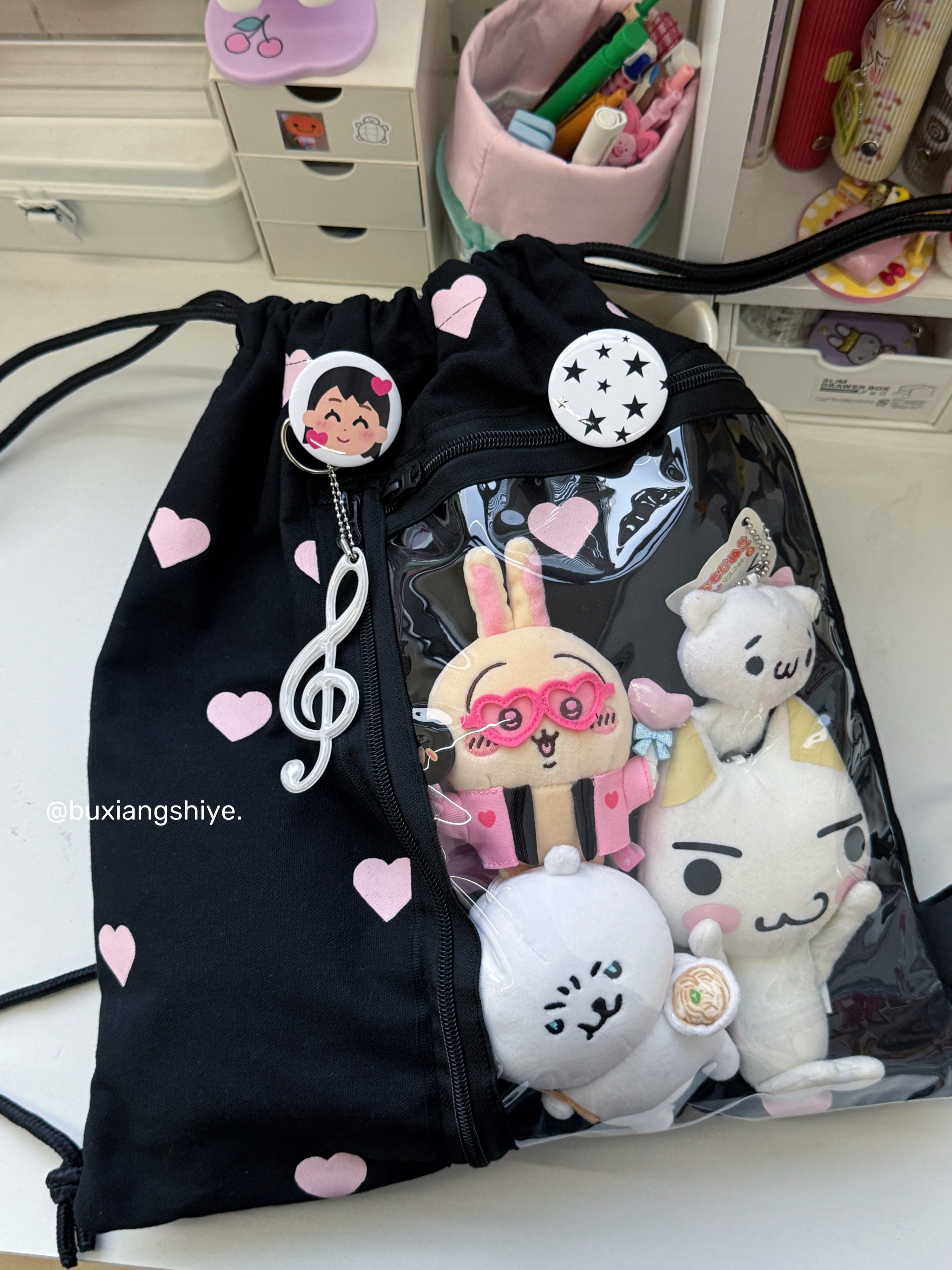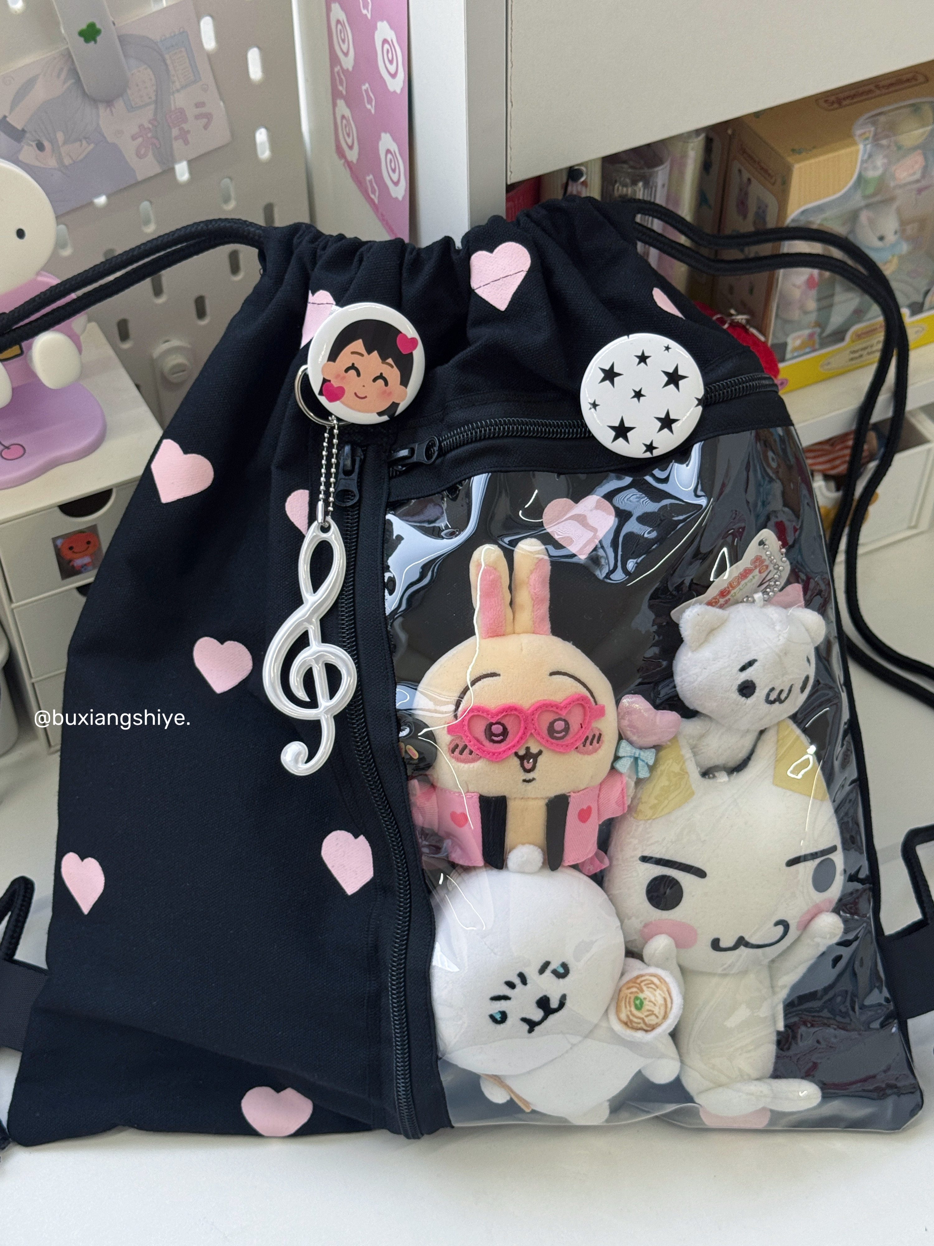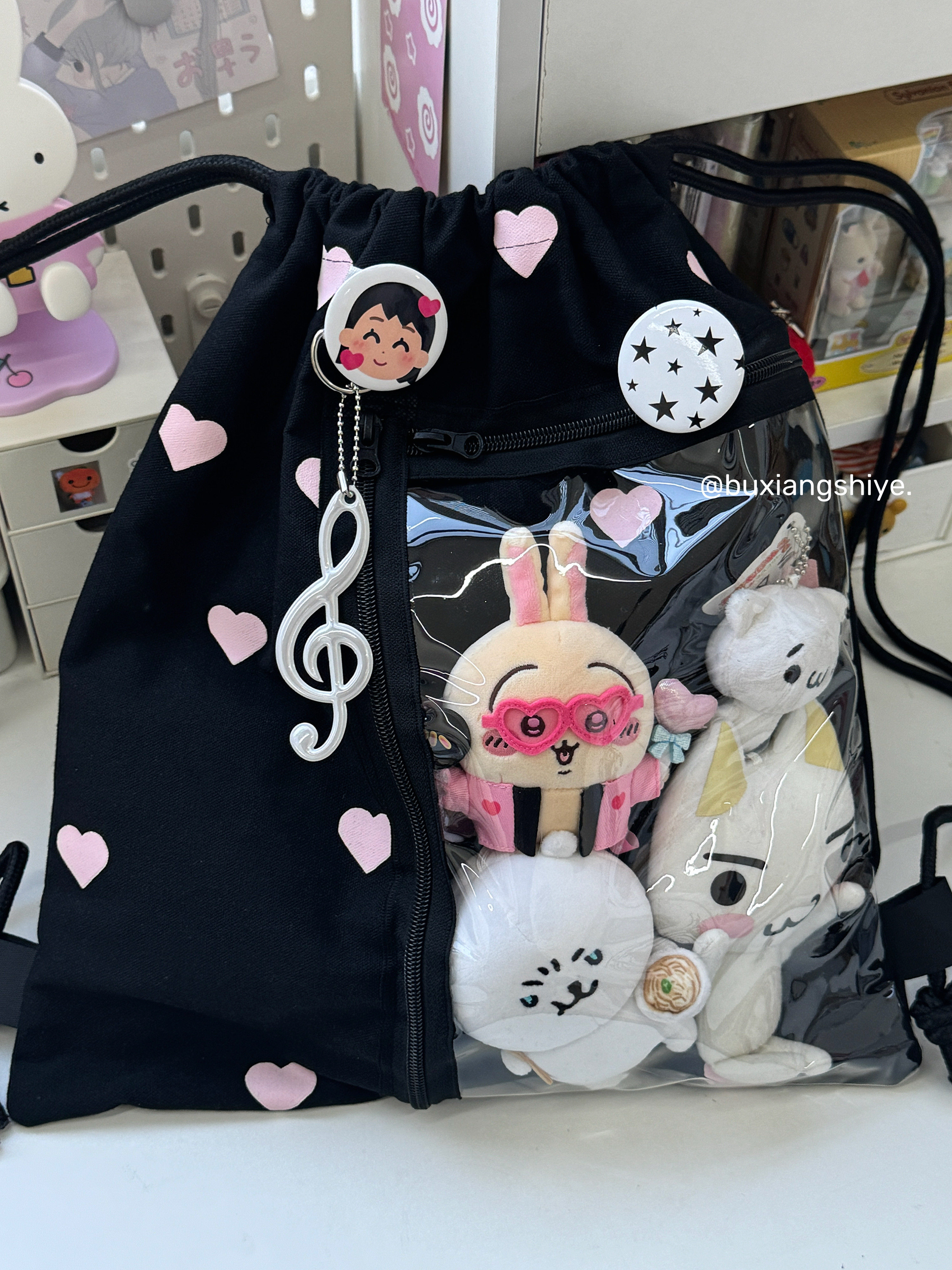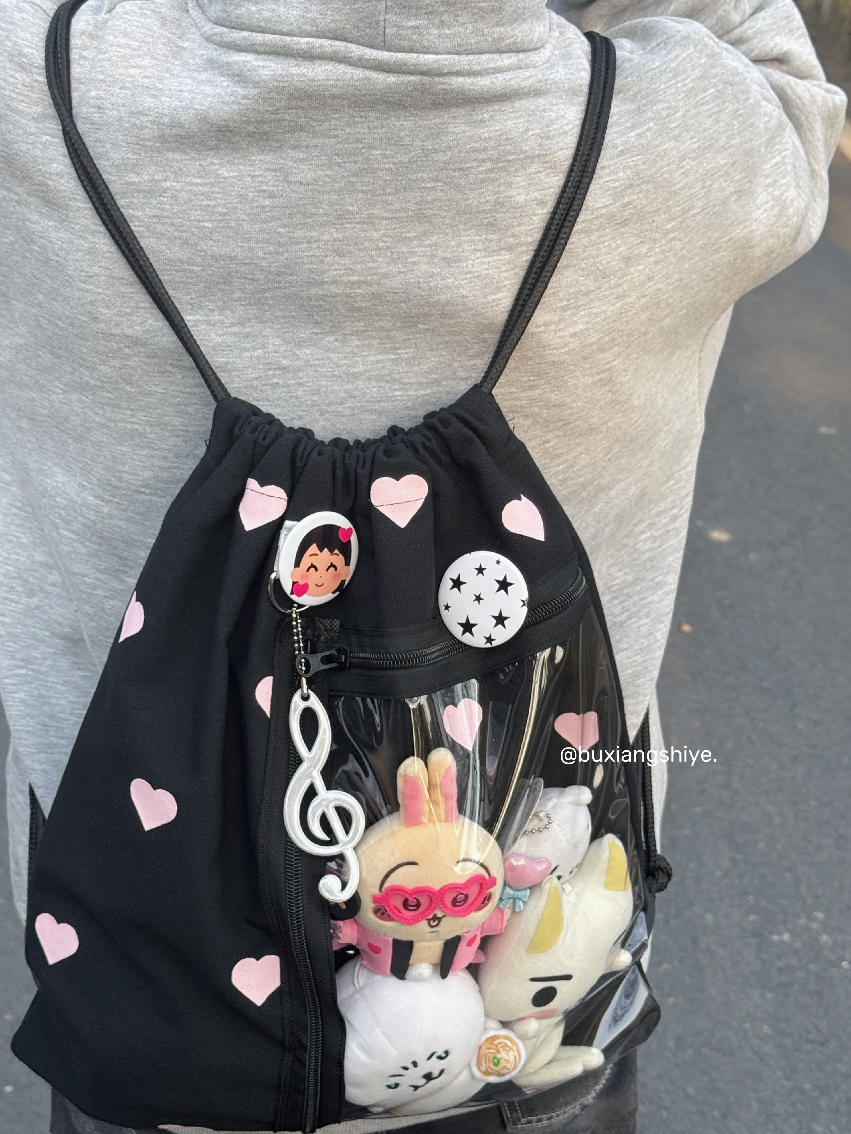 不想失業原創愛心抽繩痛包小衆黑色雙肩包簡約休閒學生大容量後後背包