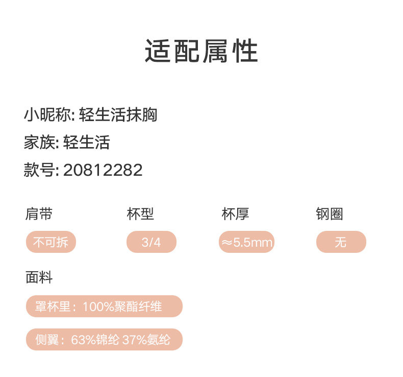 | 文胸款式 | 抹胸式 |