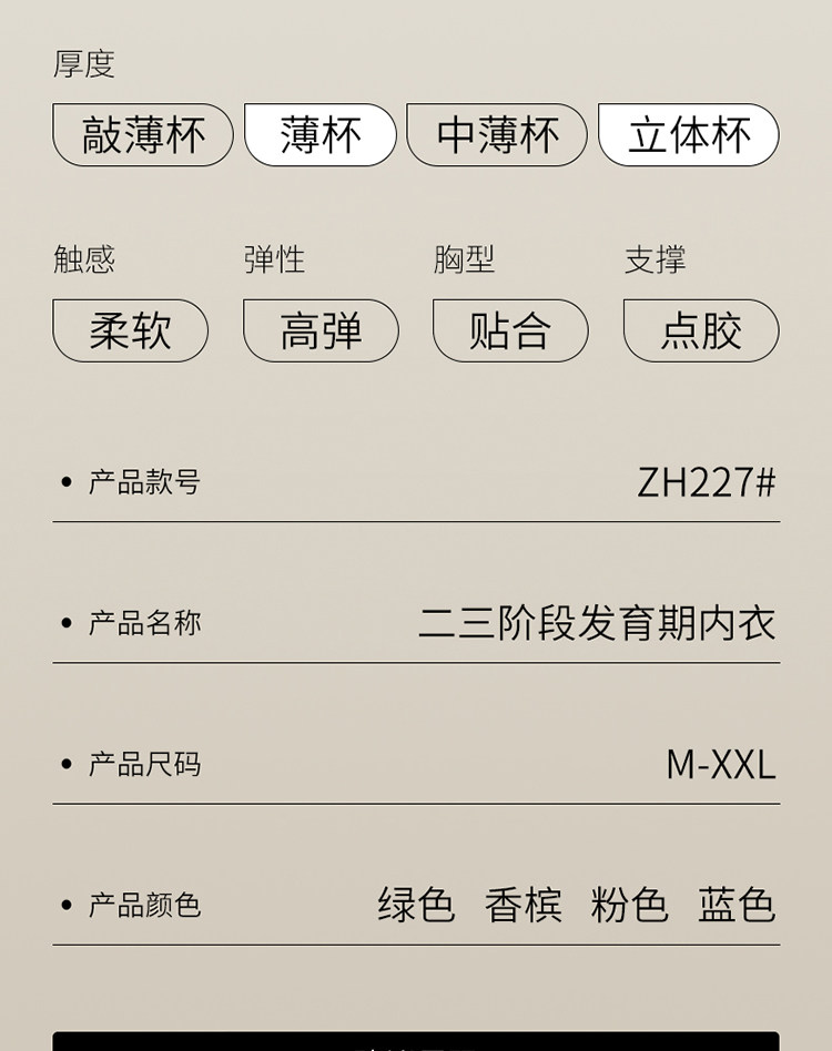 | 文胸風格 | 少女 |