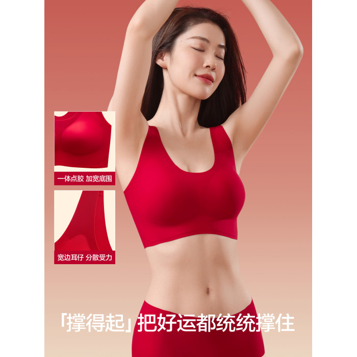 草本初色內衣套裝女本命年紅馬年提拉聚攏7A無鋼圈收副乳文胸女罩