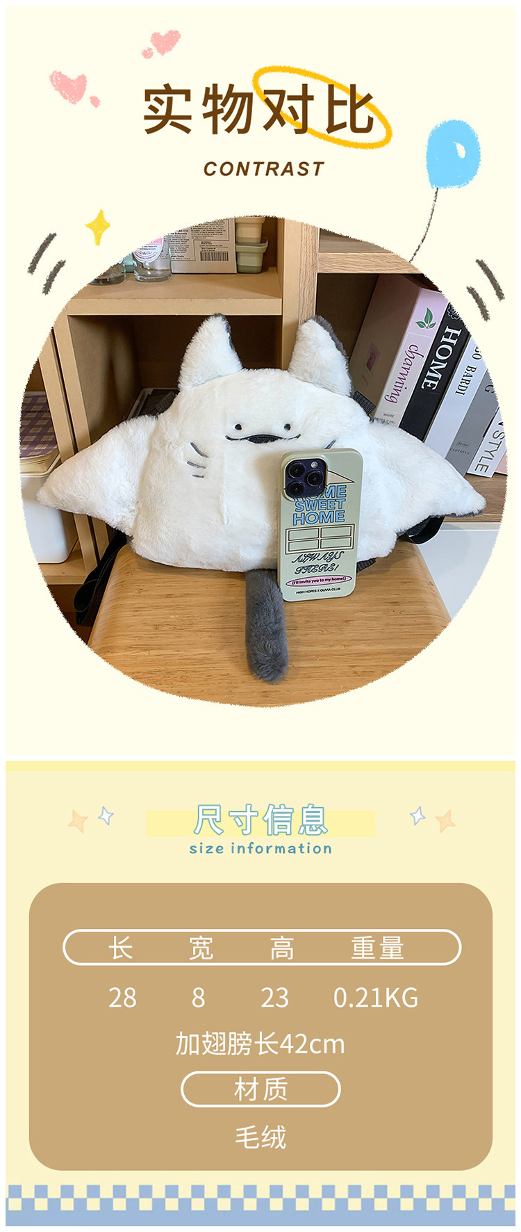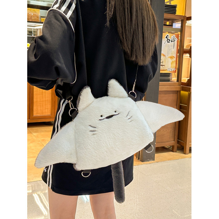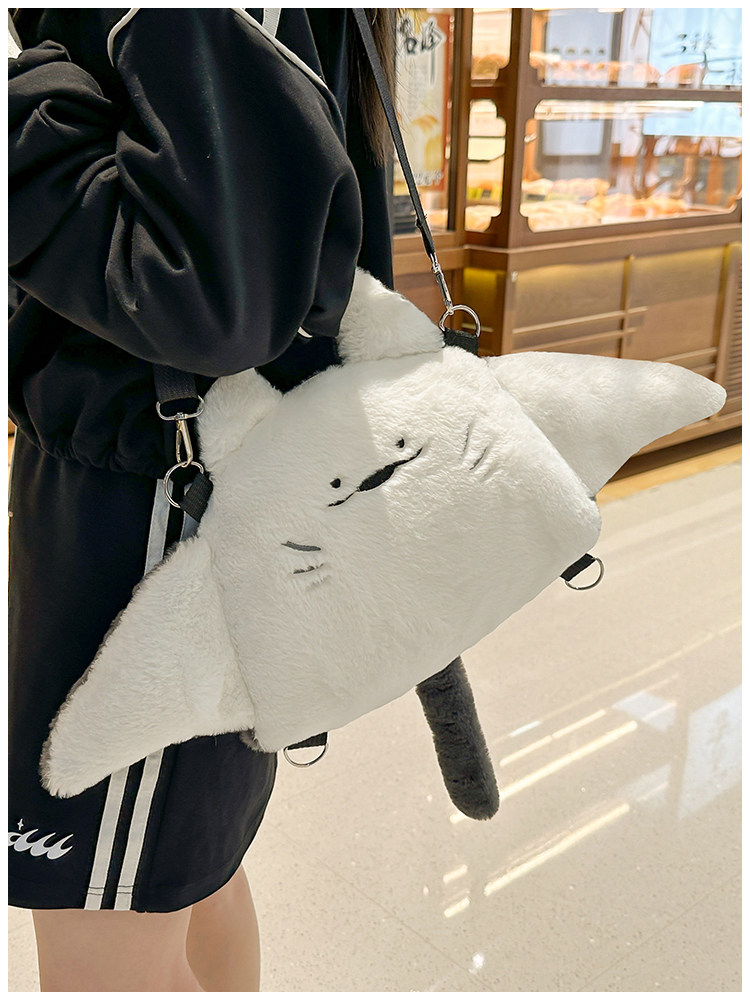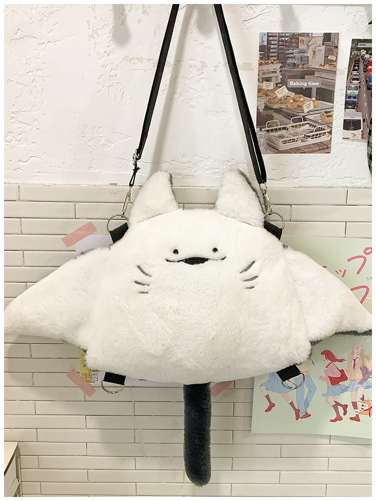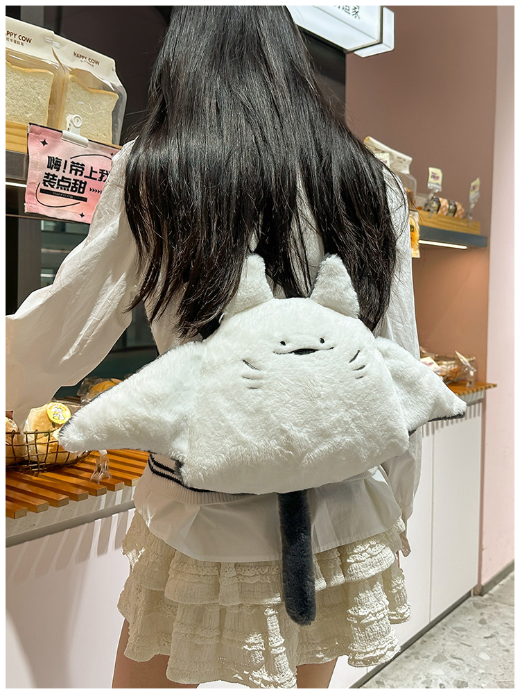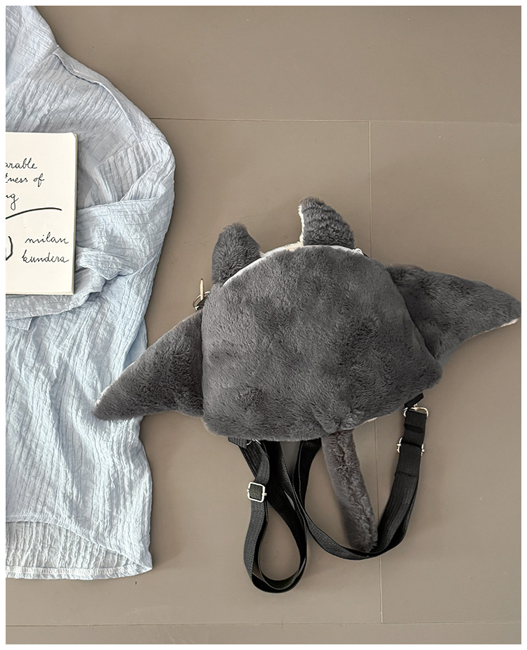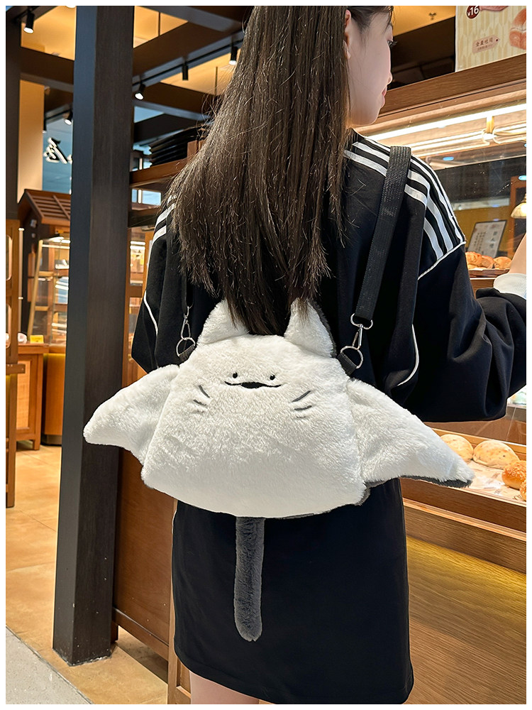 新款魔鬼魚雙肩包女個性公仔毛絨玩偶斜後後背包日系可愛少女卡通後後背包