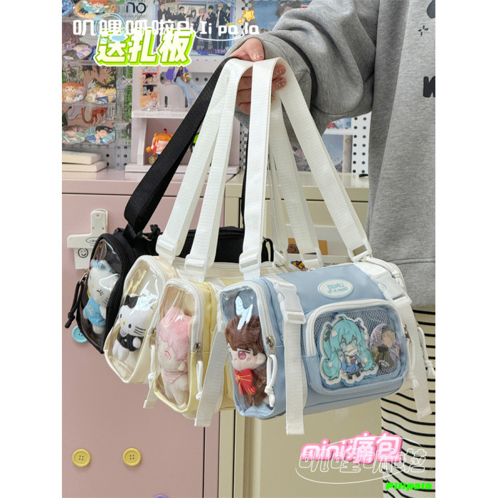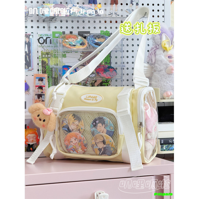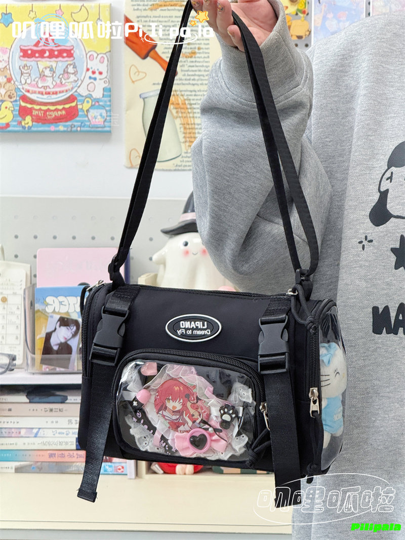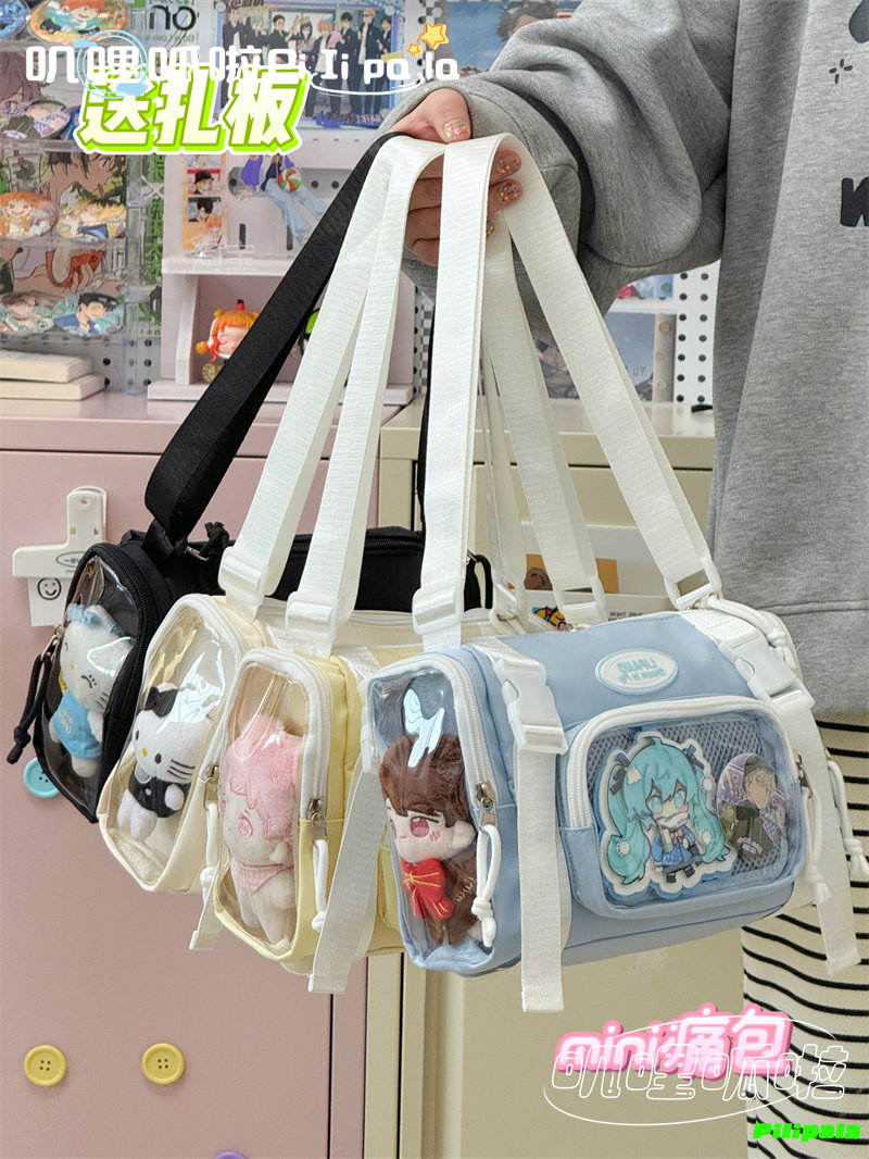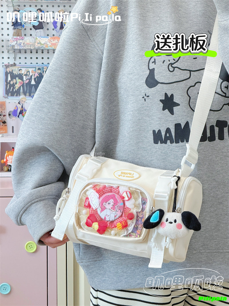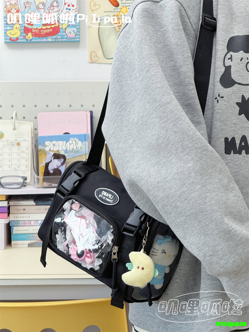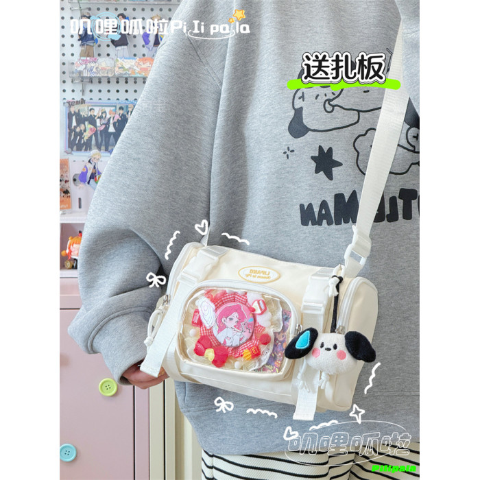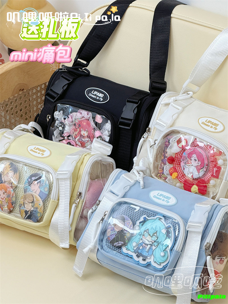 日系二次元百搭透明吧唧痛包10cm少女娃包休閒斜後後背包迷你手機小包