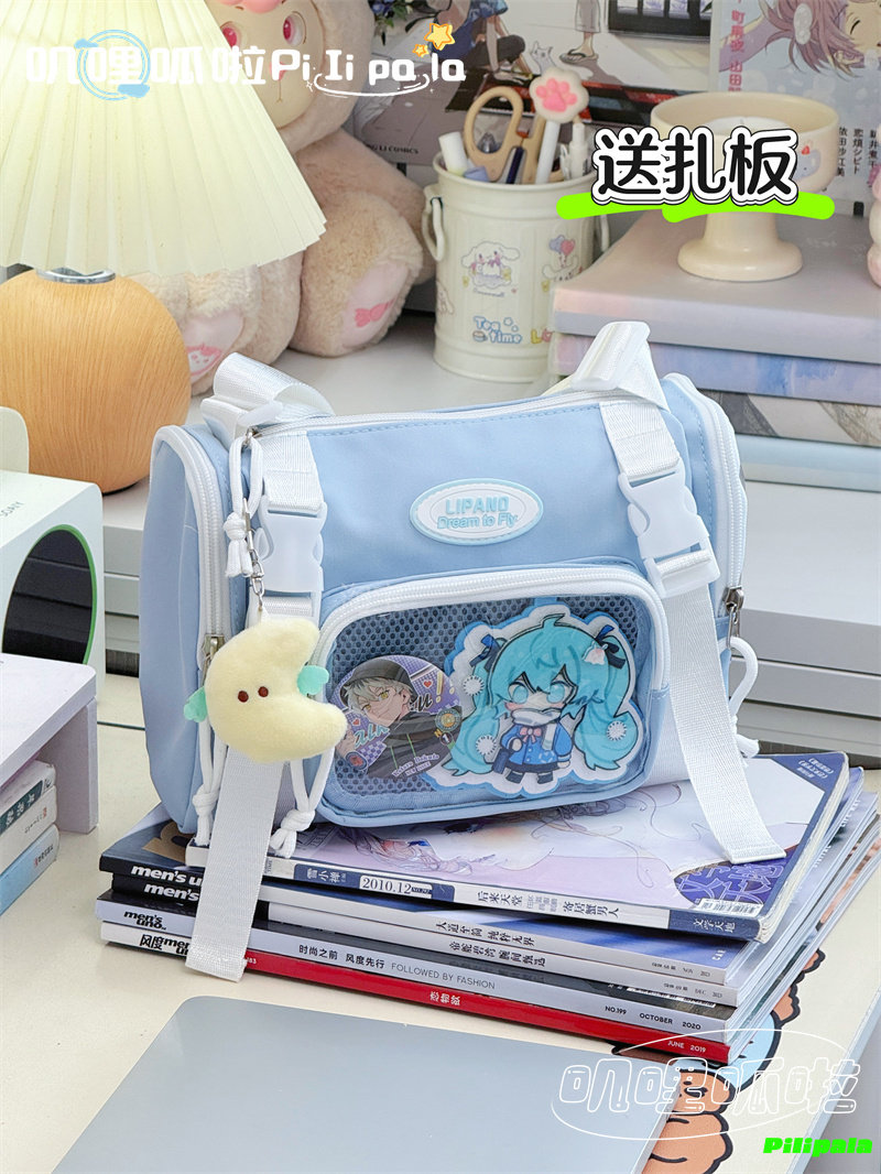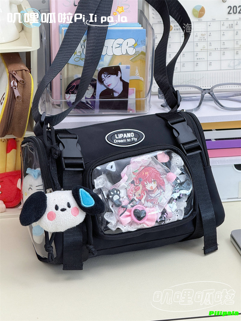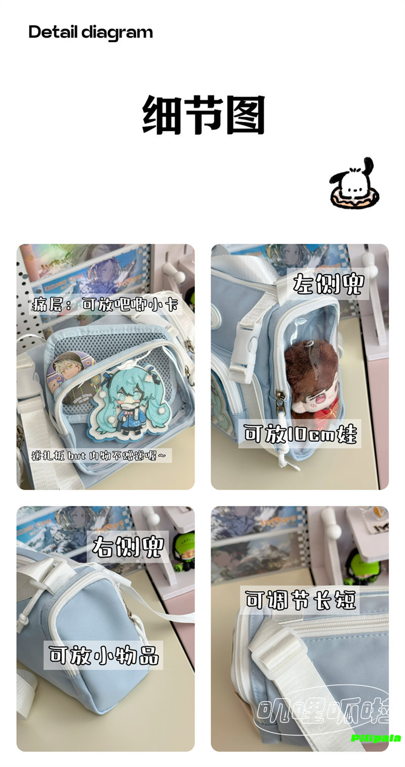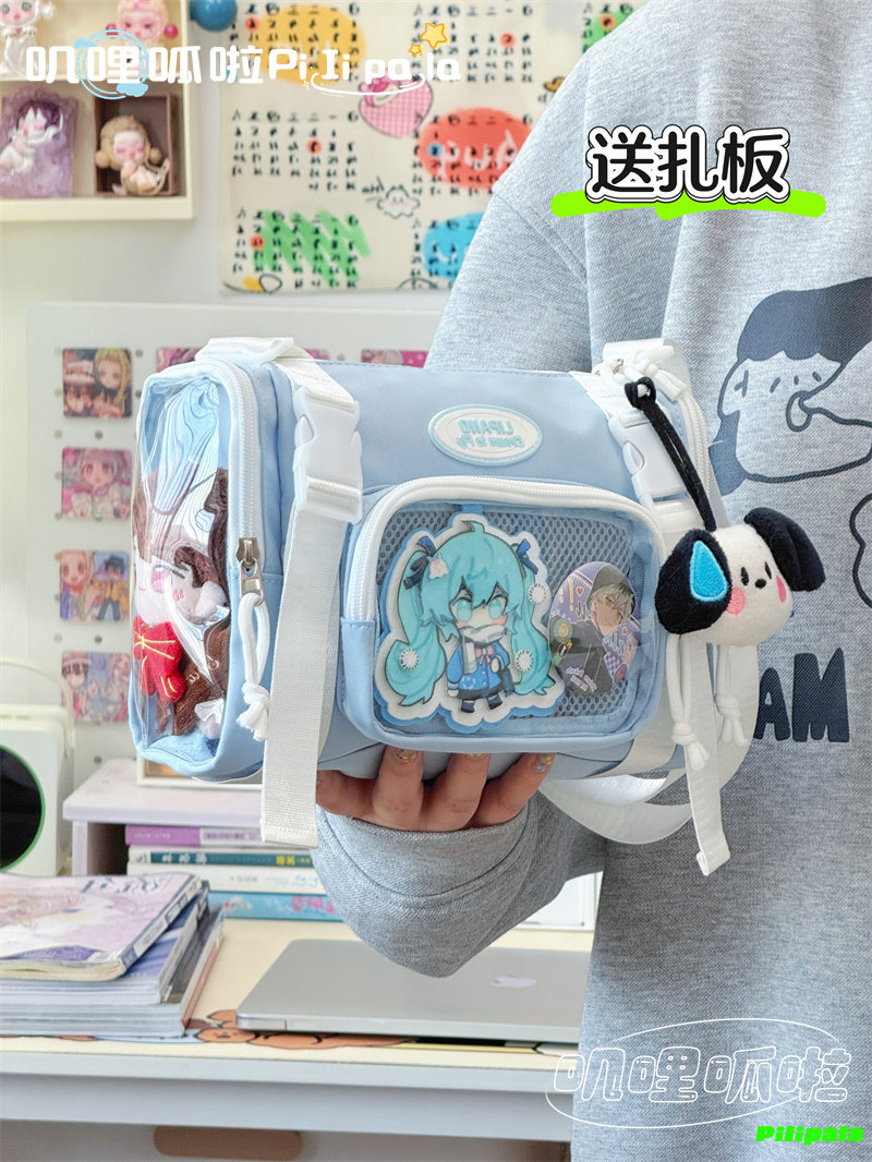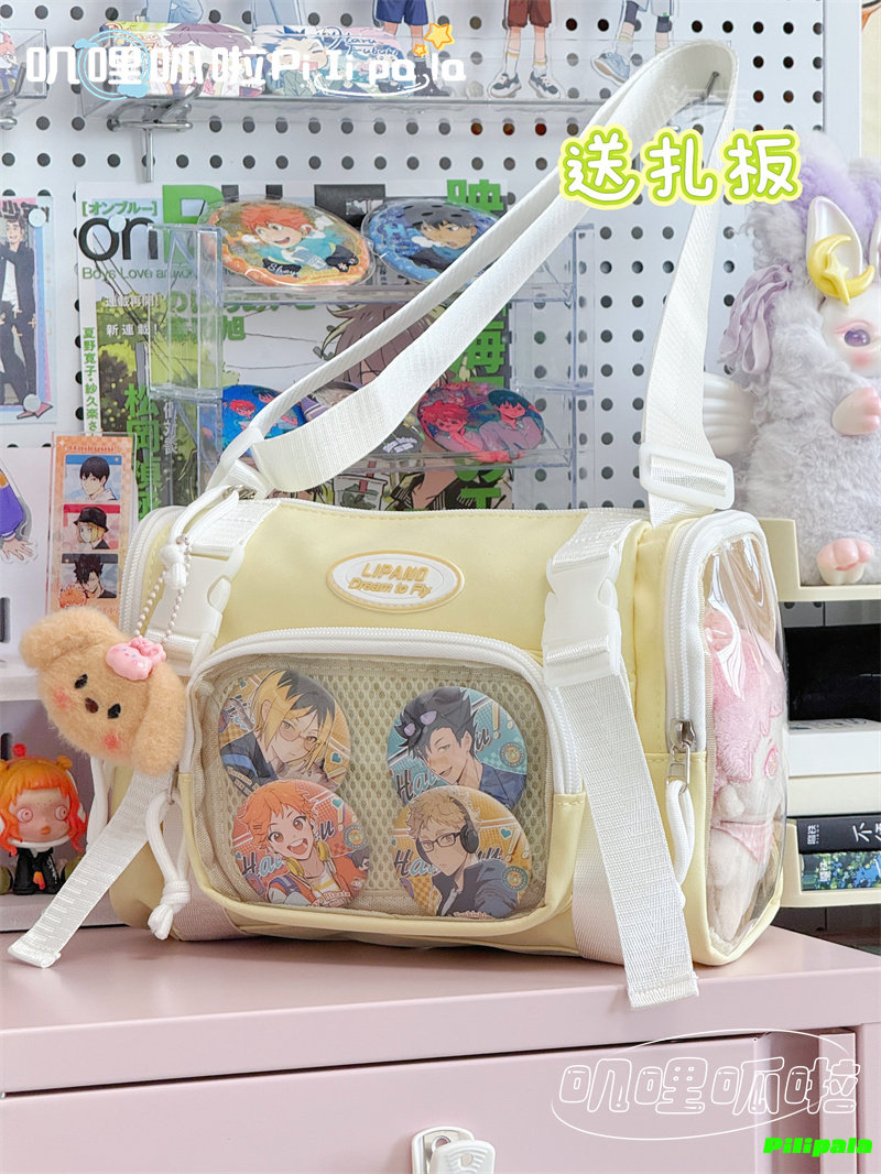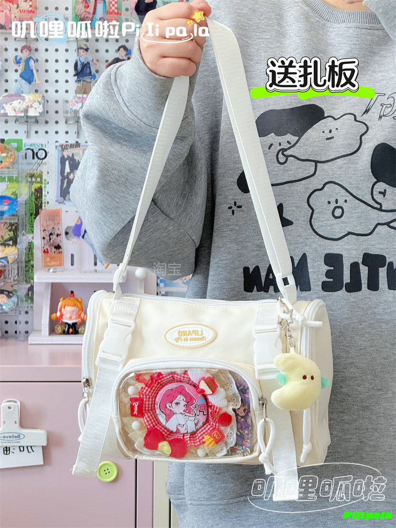 日系二次元百搭透明吧唧痛包10cm少女娃包休閒斜後後背包迷你手機小包