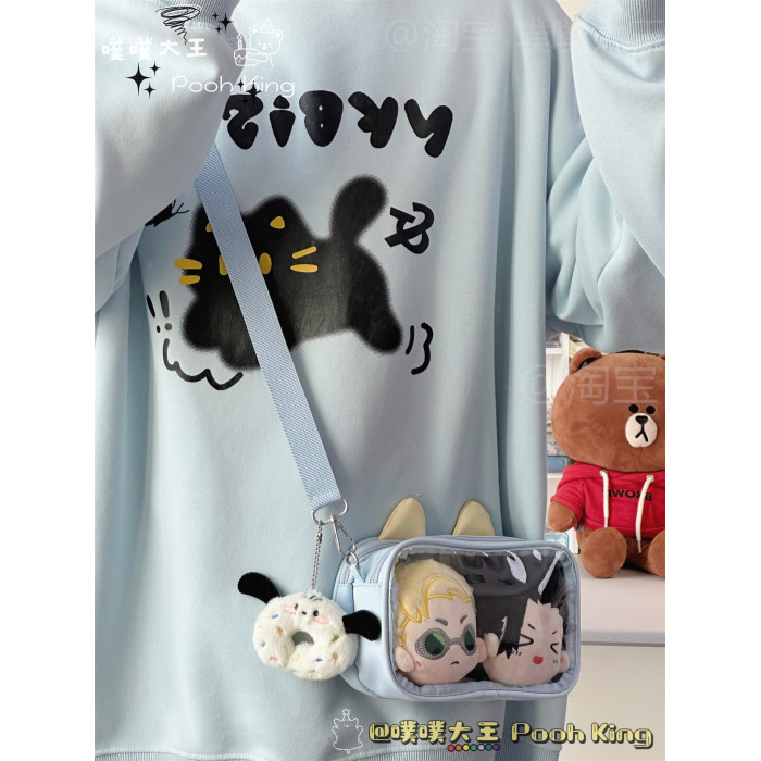 ins二次元日常透明遛娃痛包10cm娃包展示百搭貓耳斜後後背包手機挎包