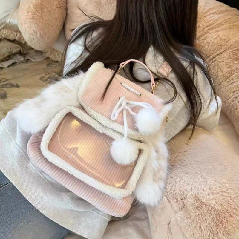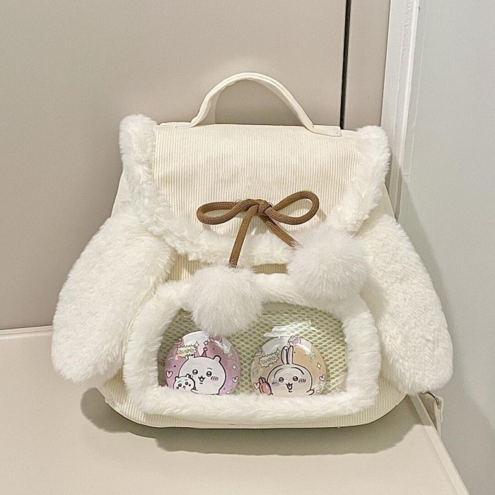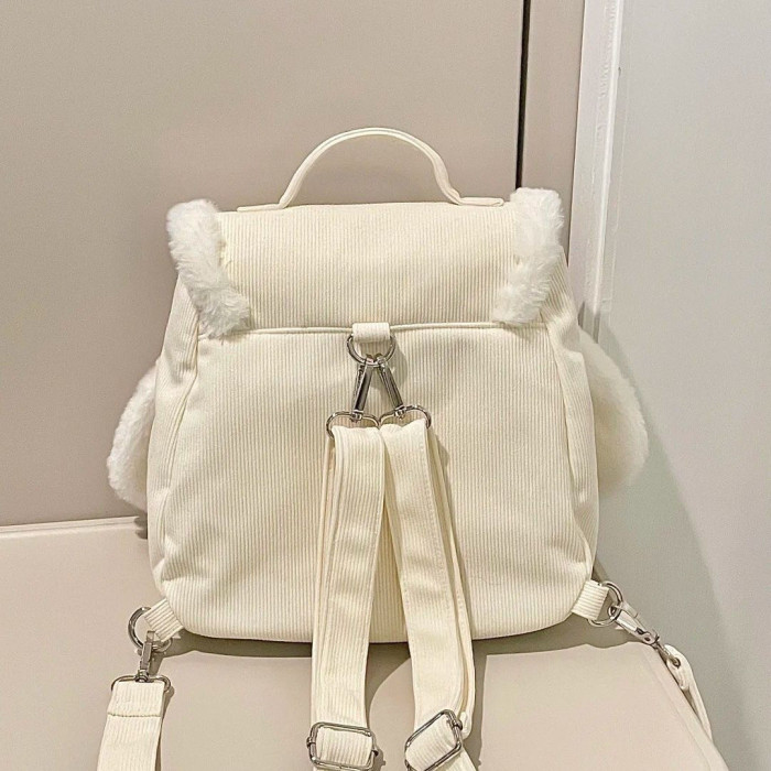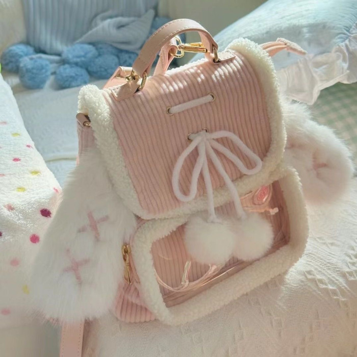 ZAPCRA粉色兔耳朵可愛毛茸茸雙肩包2024秋冬休閒簡約大容量痛包