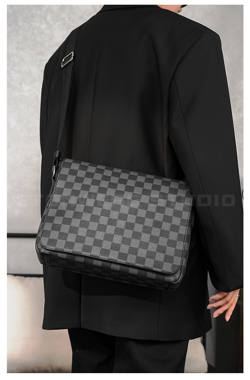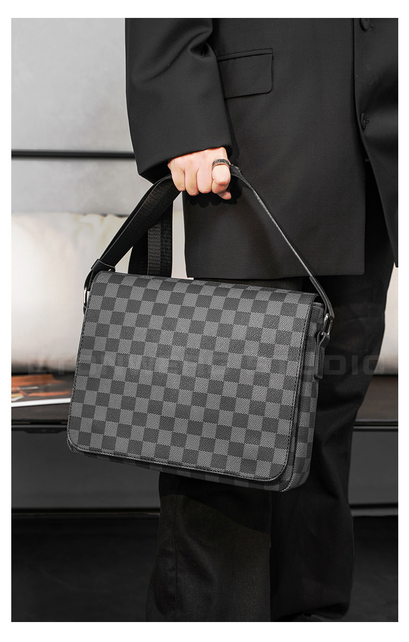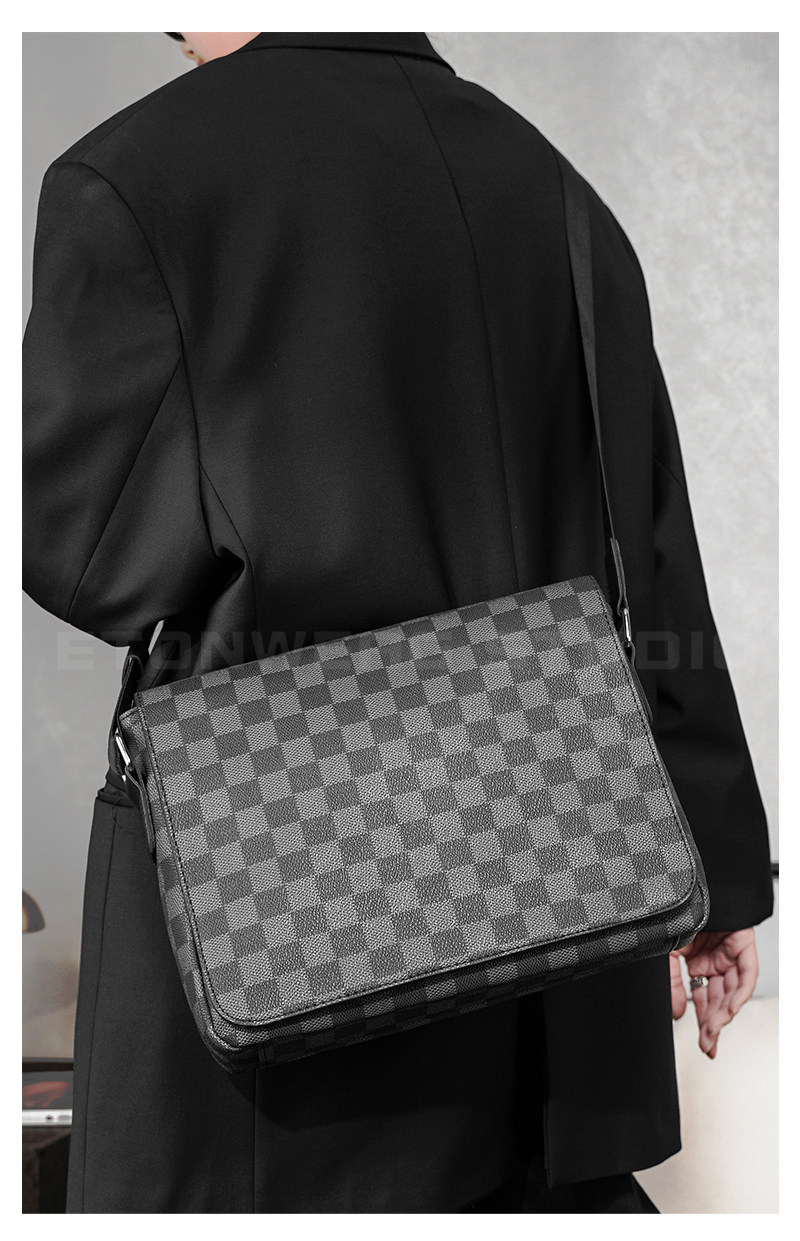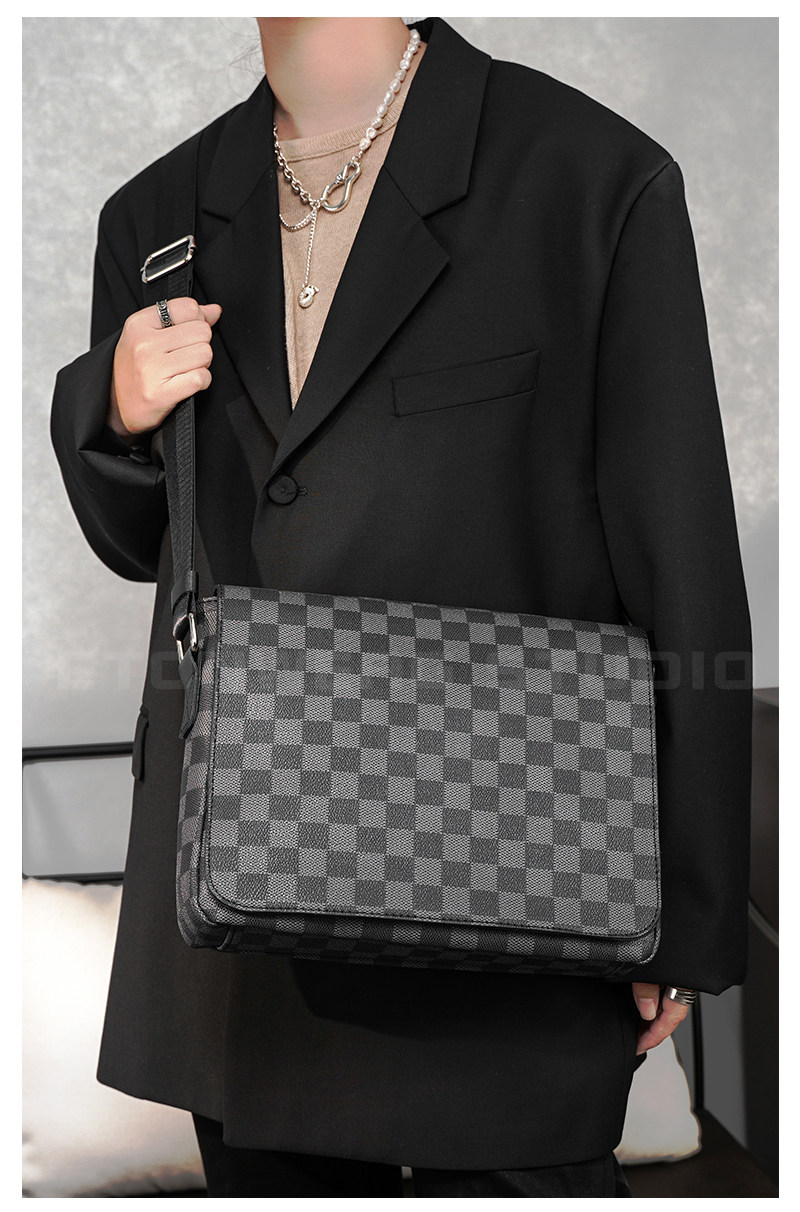 商務休閒格子單肩包 韓版男包潮流斜後後背包街頭小挎包IPAD包潮男包
