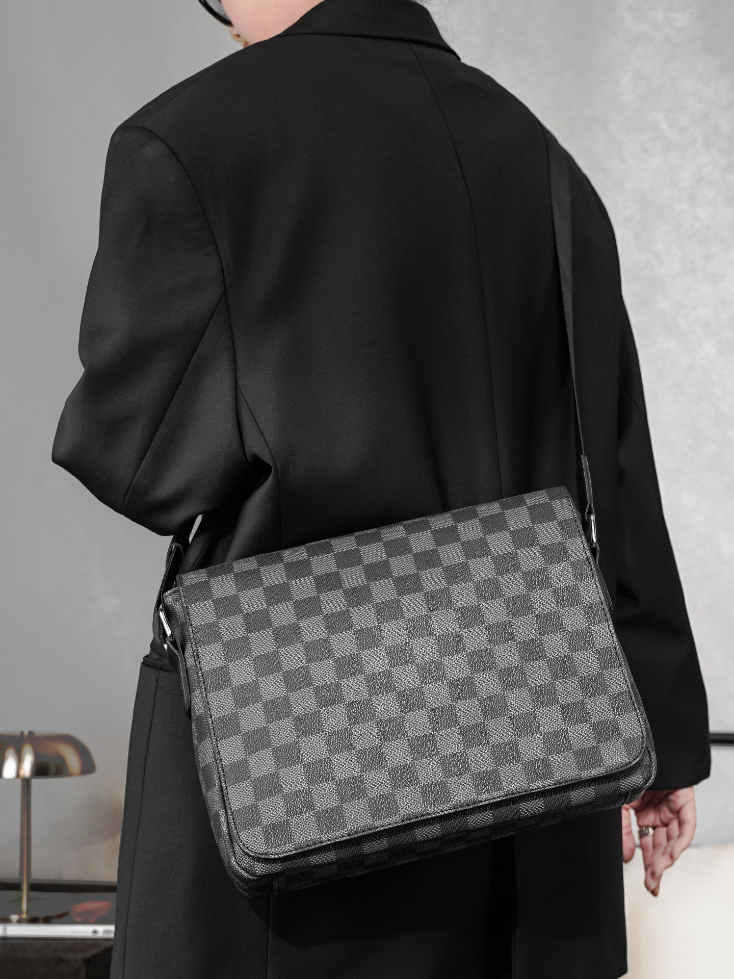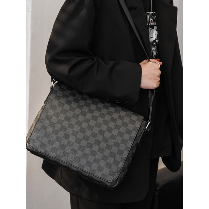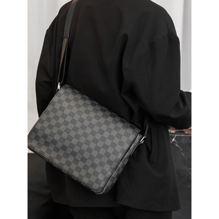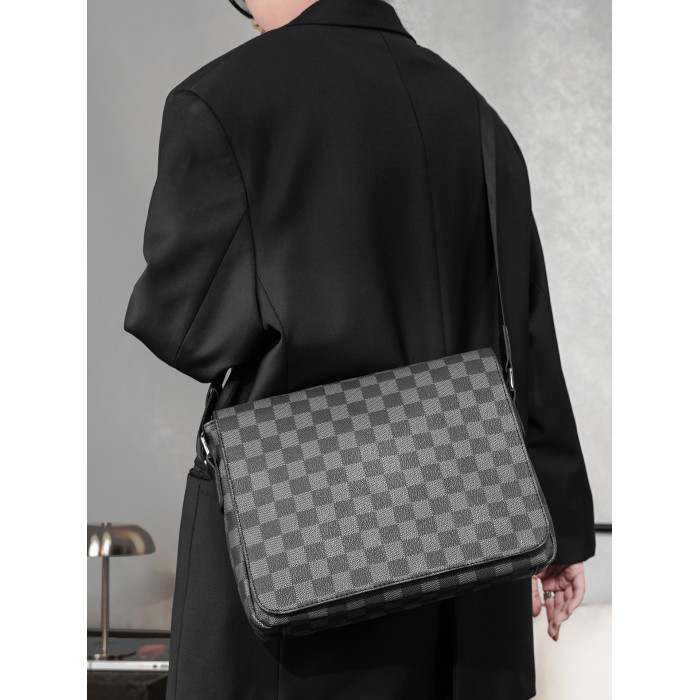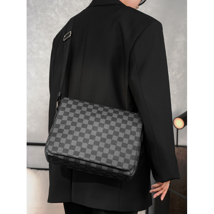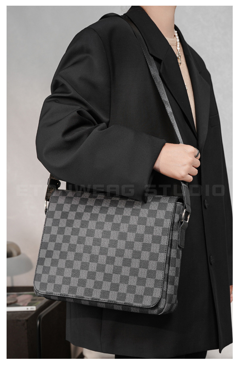 商務休閒格子單肩包 韓版男包潮流斜後後背包街頭小挎包IPAD包潮男包