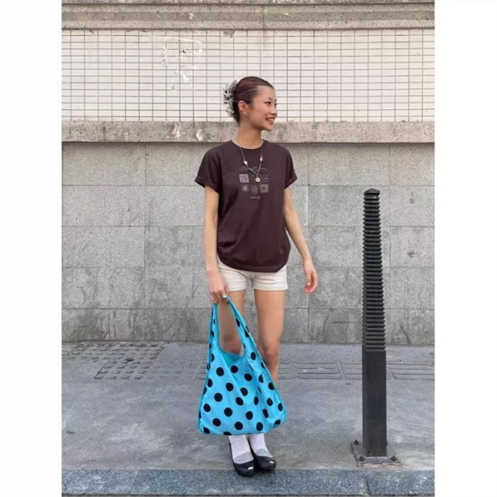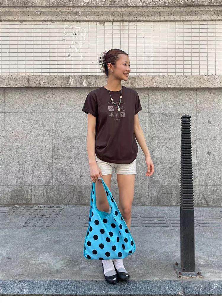 圓弧波點單肩包正反多背法托特包大容量腋下包