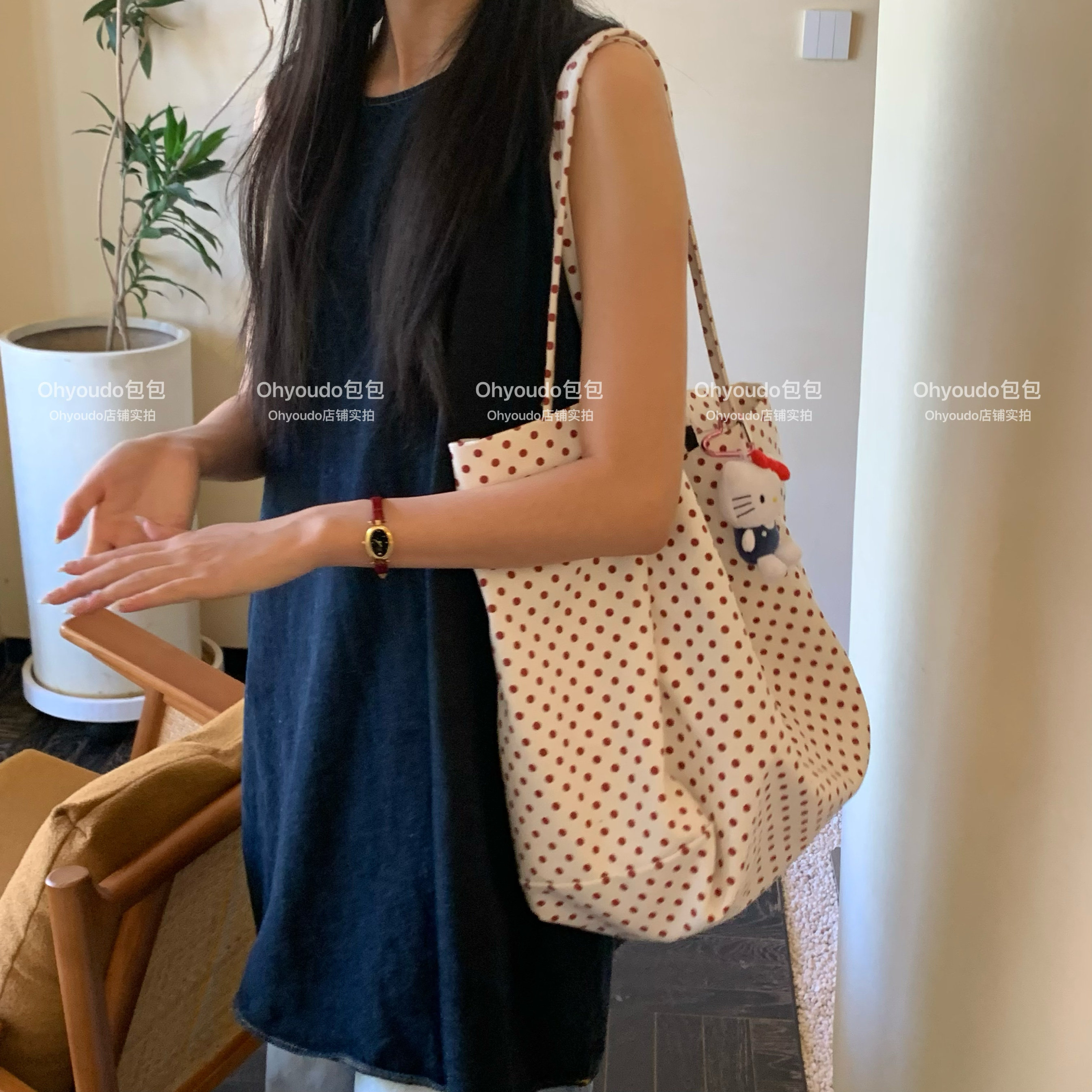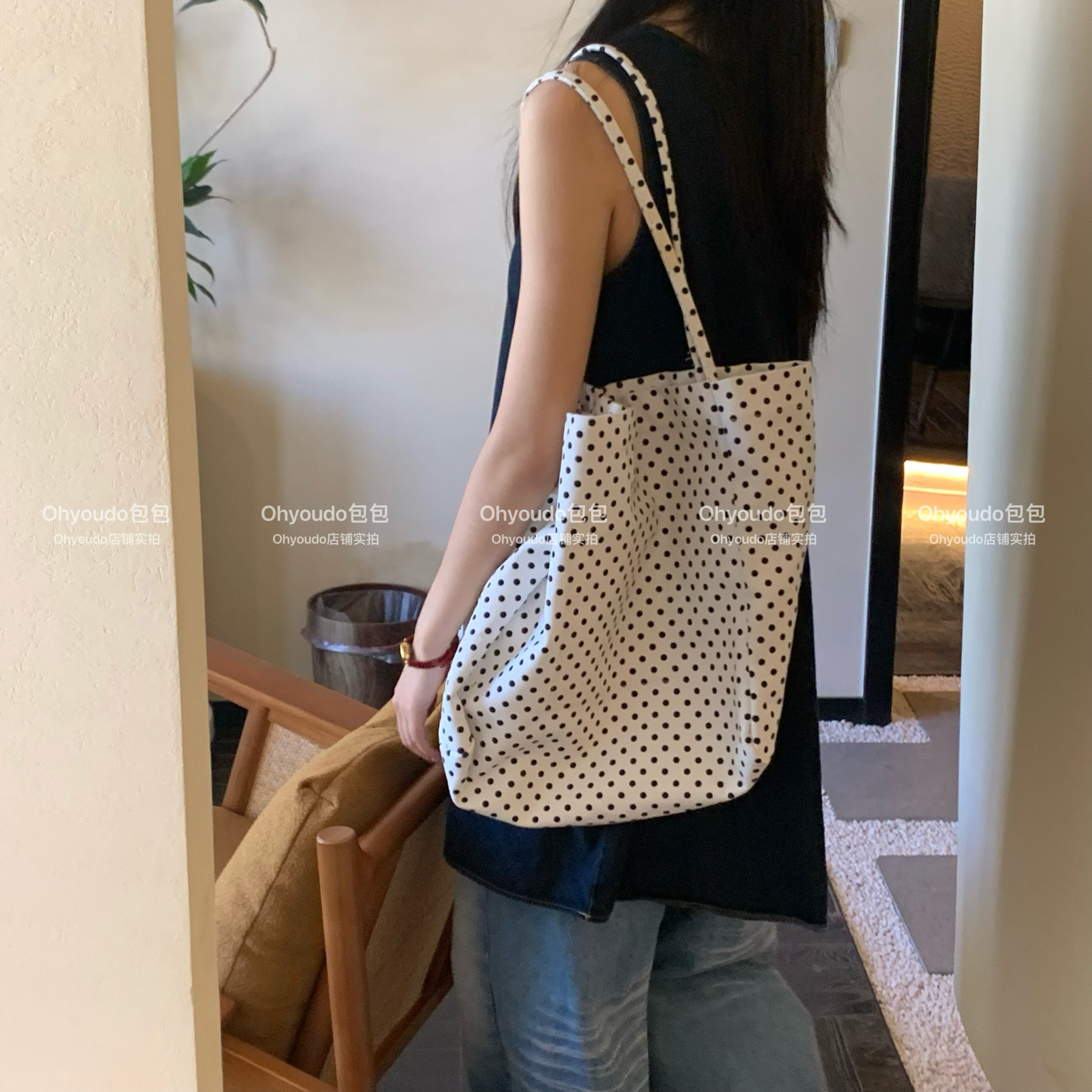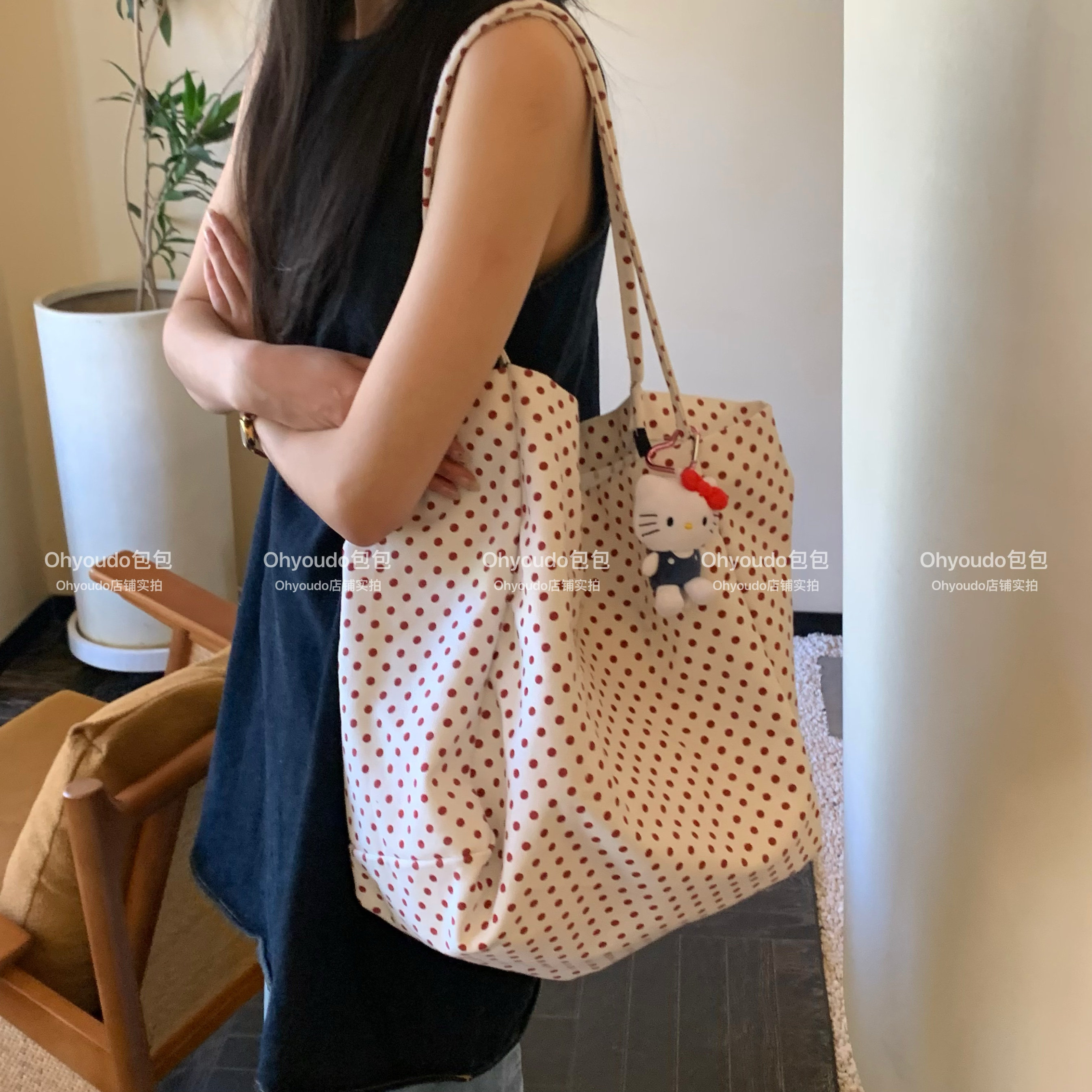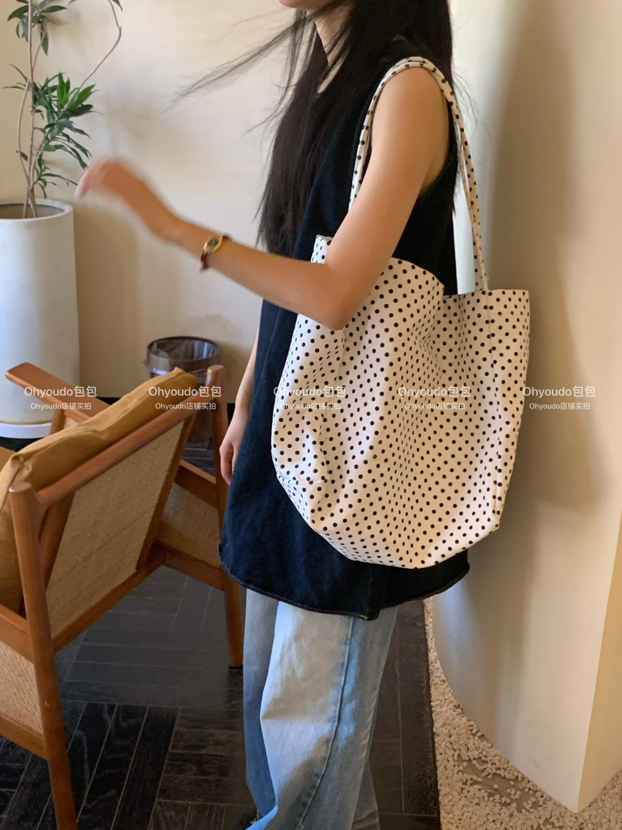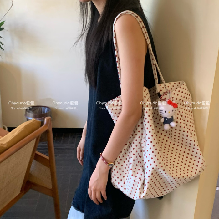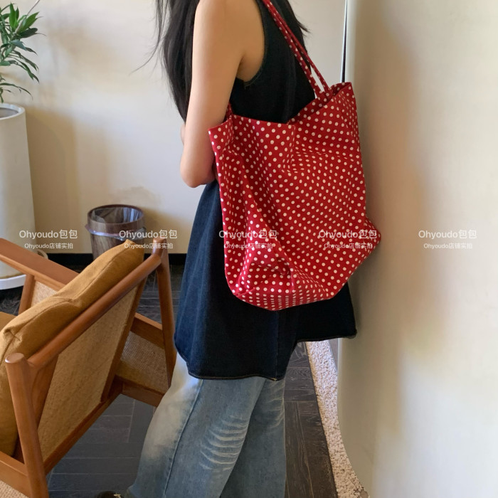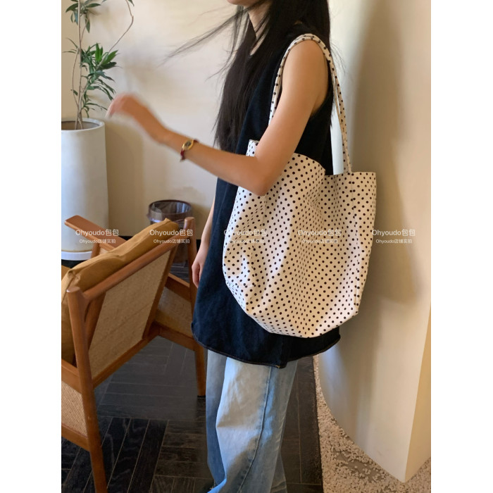 「Ohyoudo」韓系大大波點托特包!Oversize帆布包通勤百搭單肩包