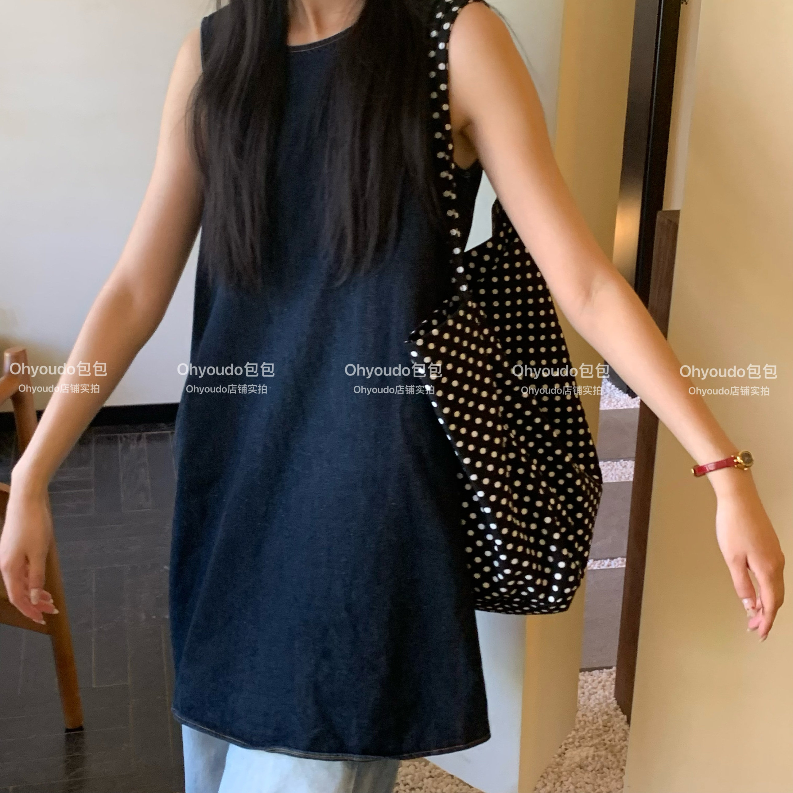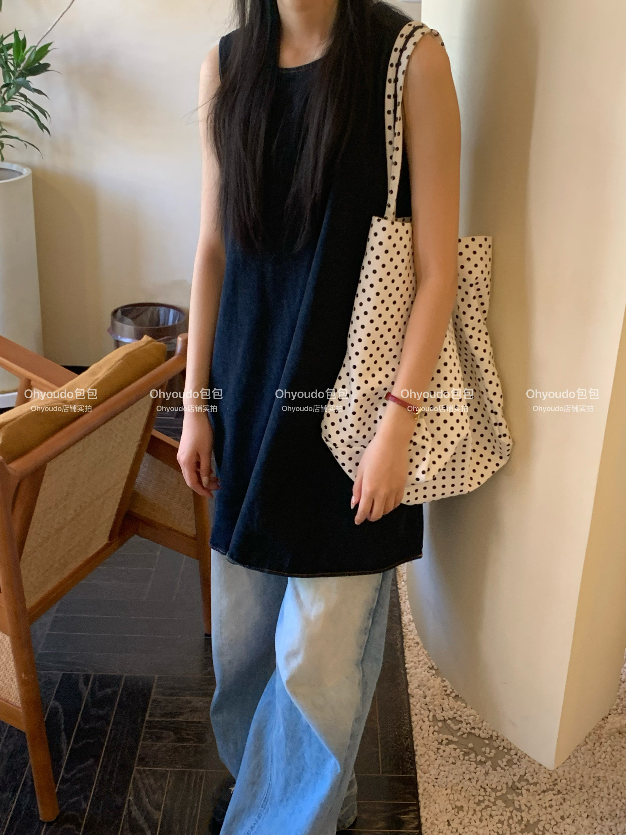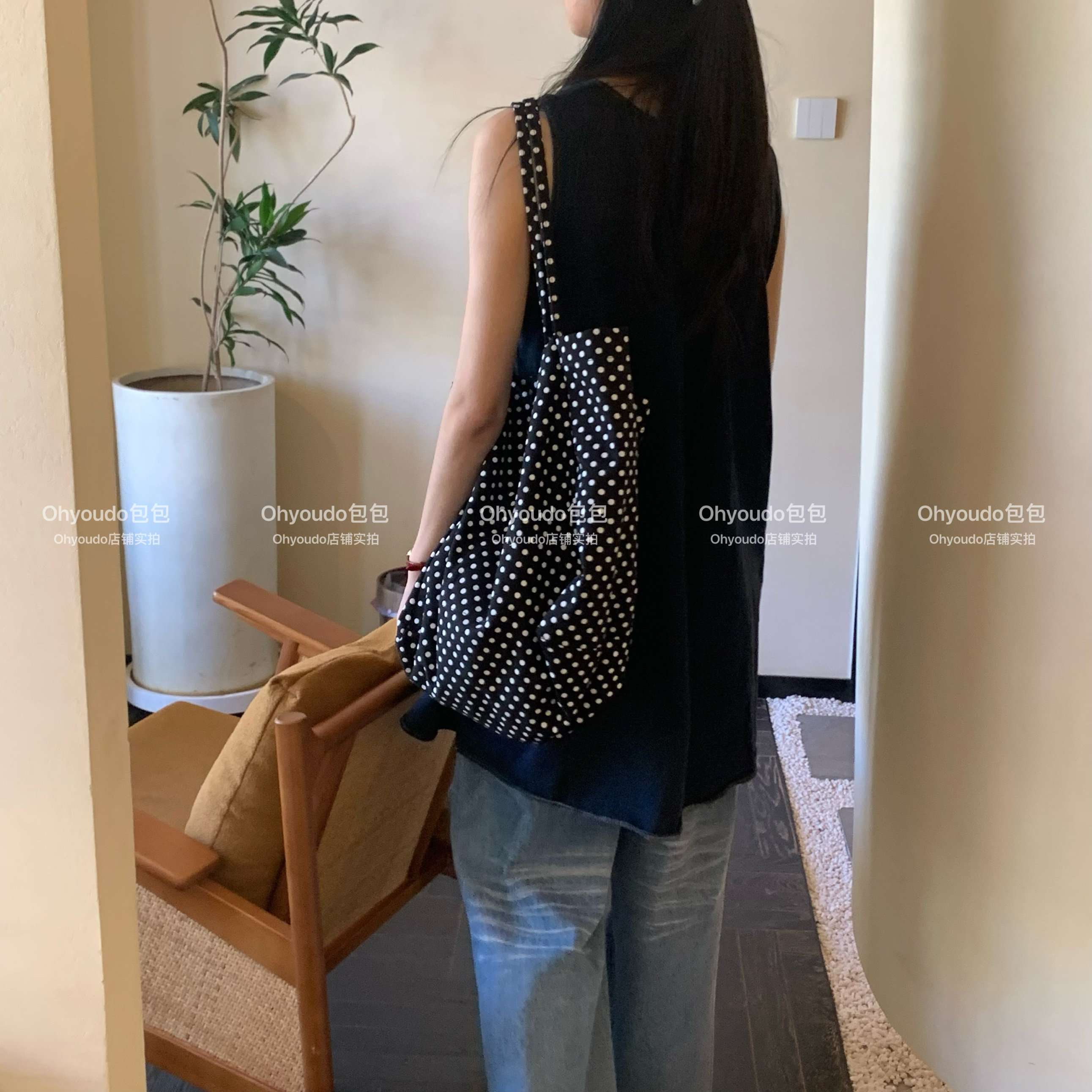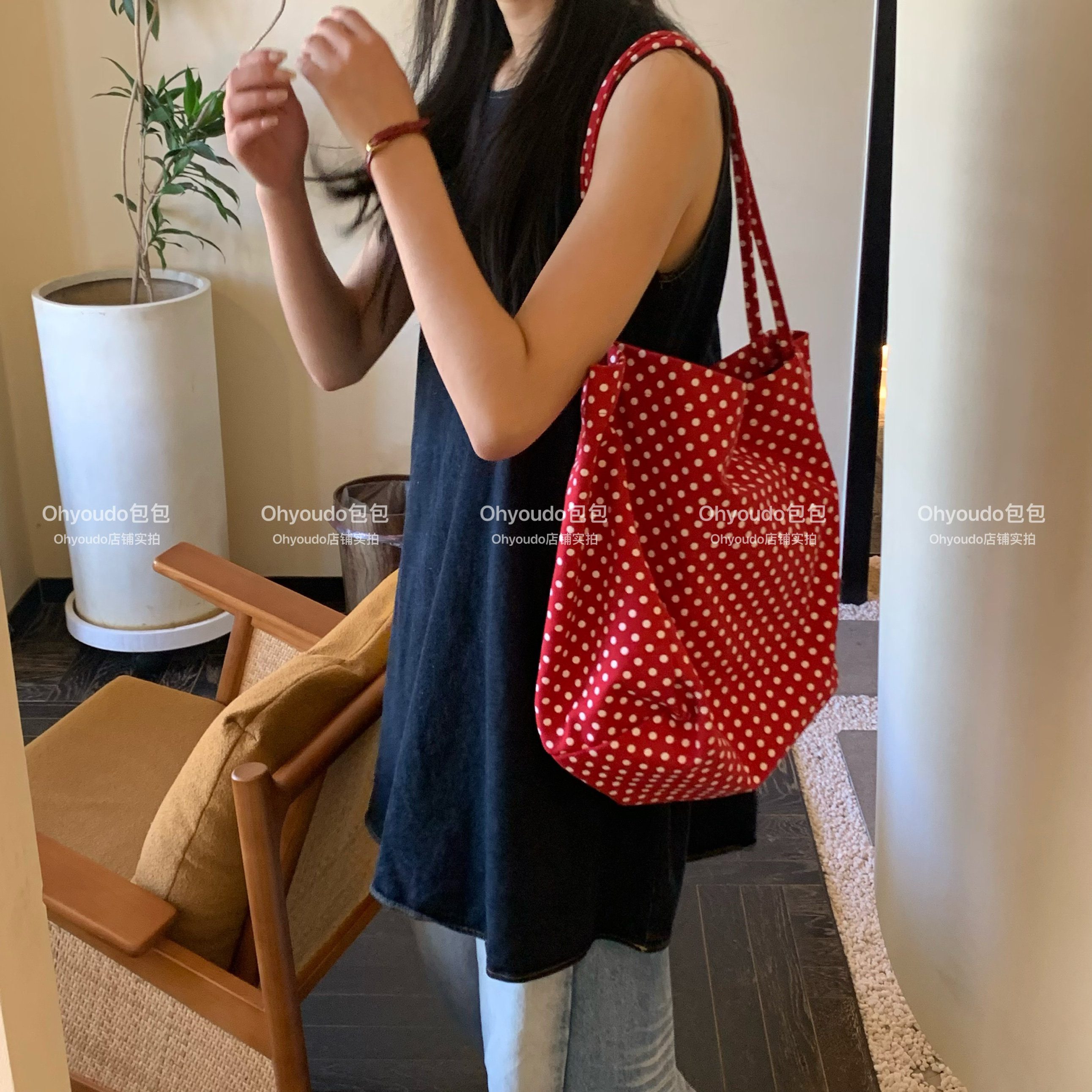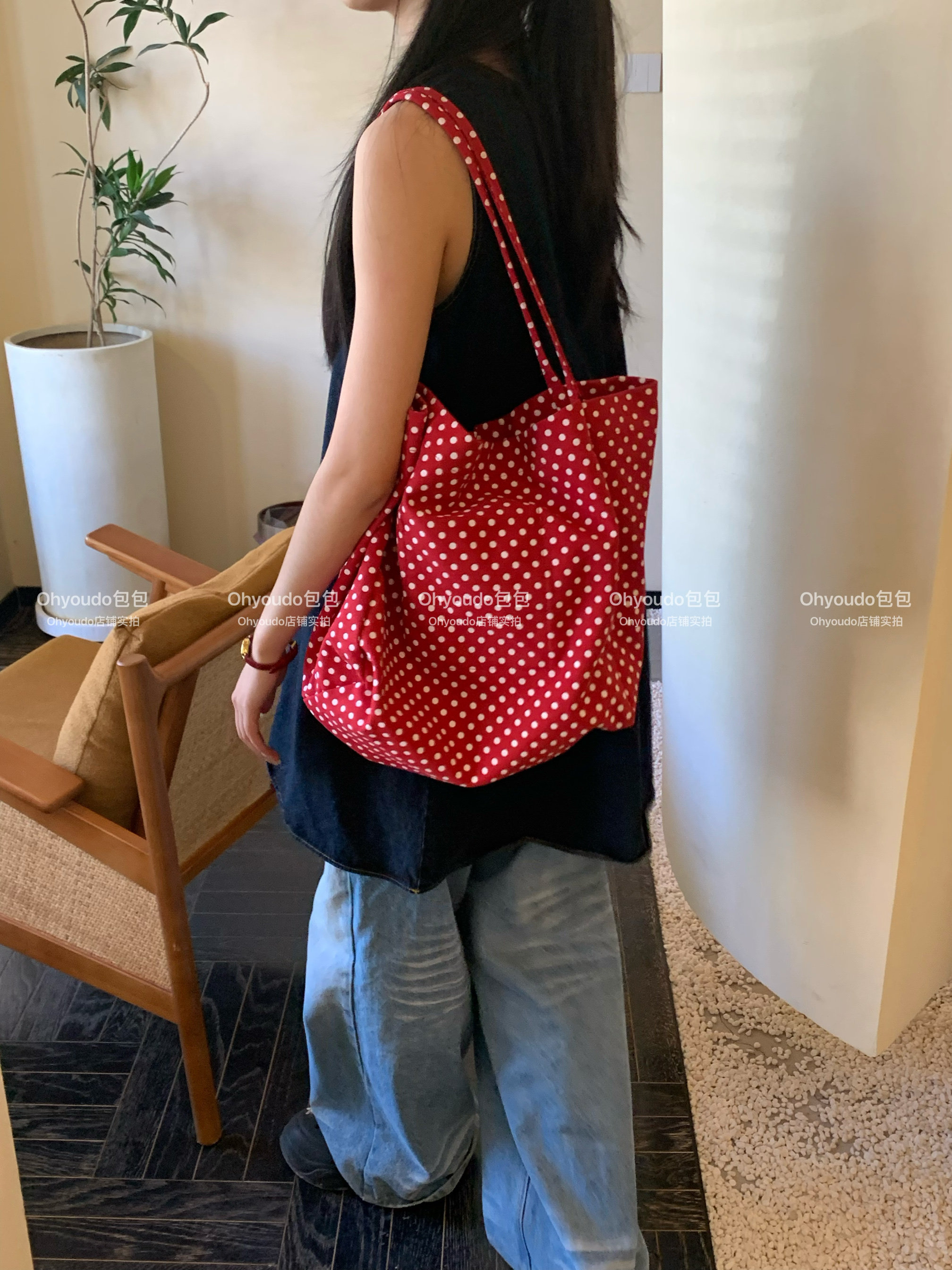 「Ohyoudo」韓系大大波點托特包!Oversize帆布包通勤百搭單肩包
