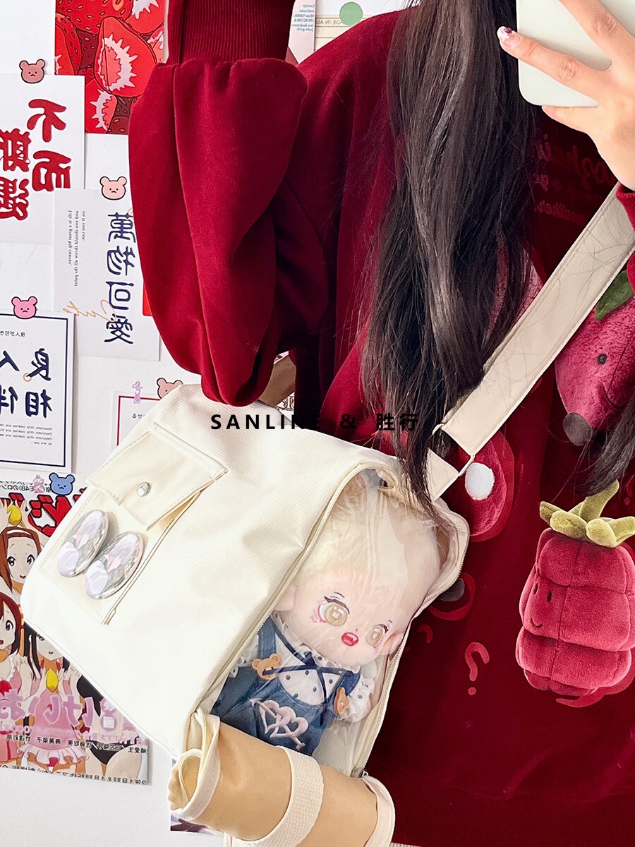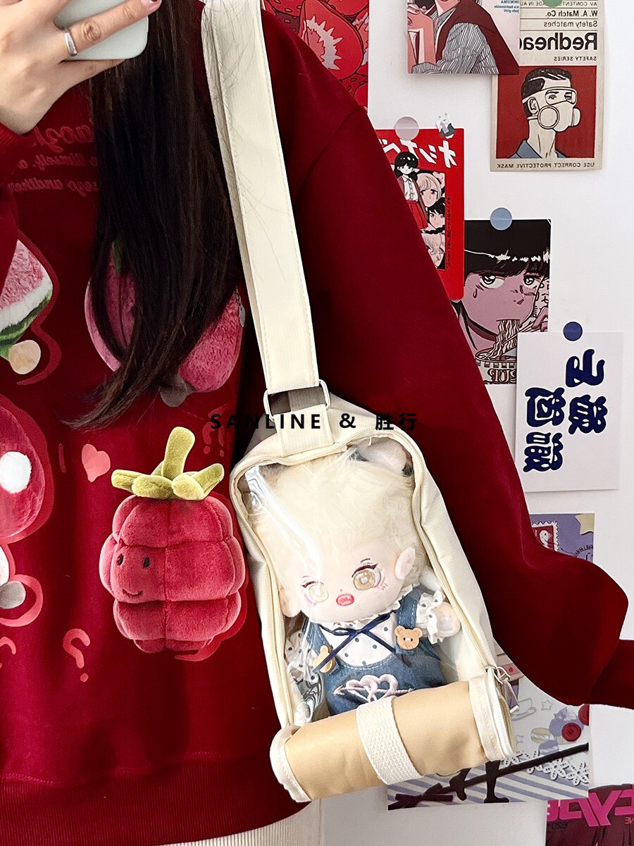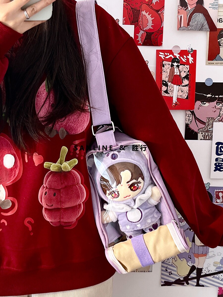 20cm棉花娃娃外出包學生日常休閒痛包少女小食量透明腋下斜背痛包