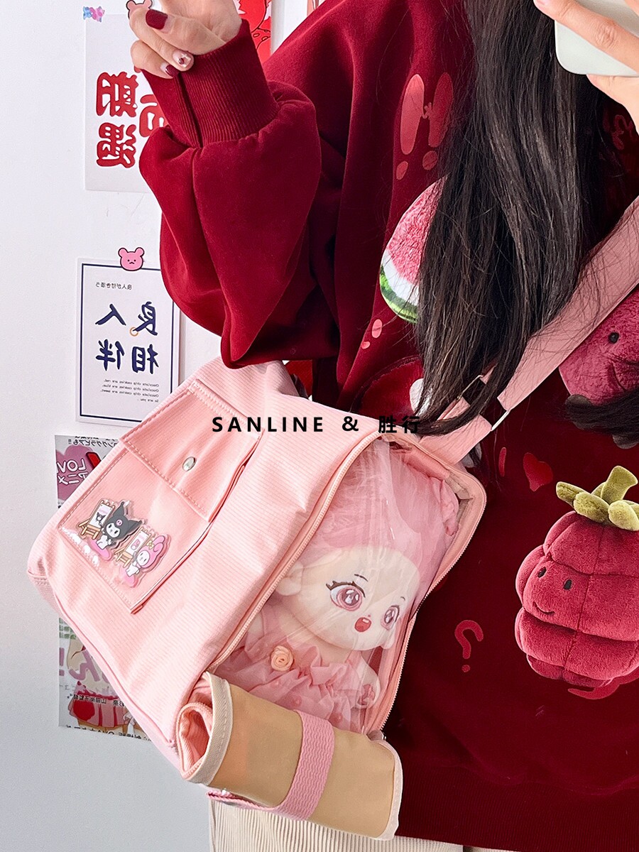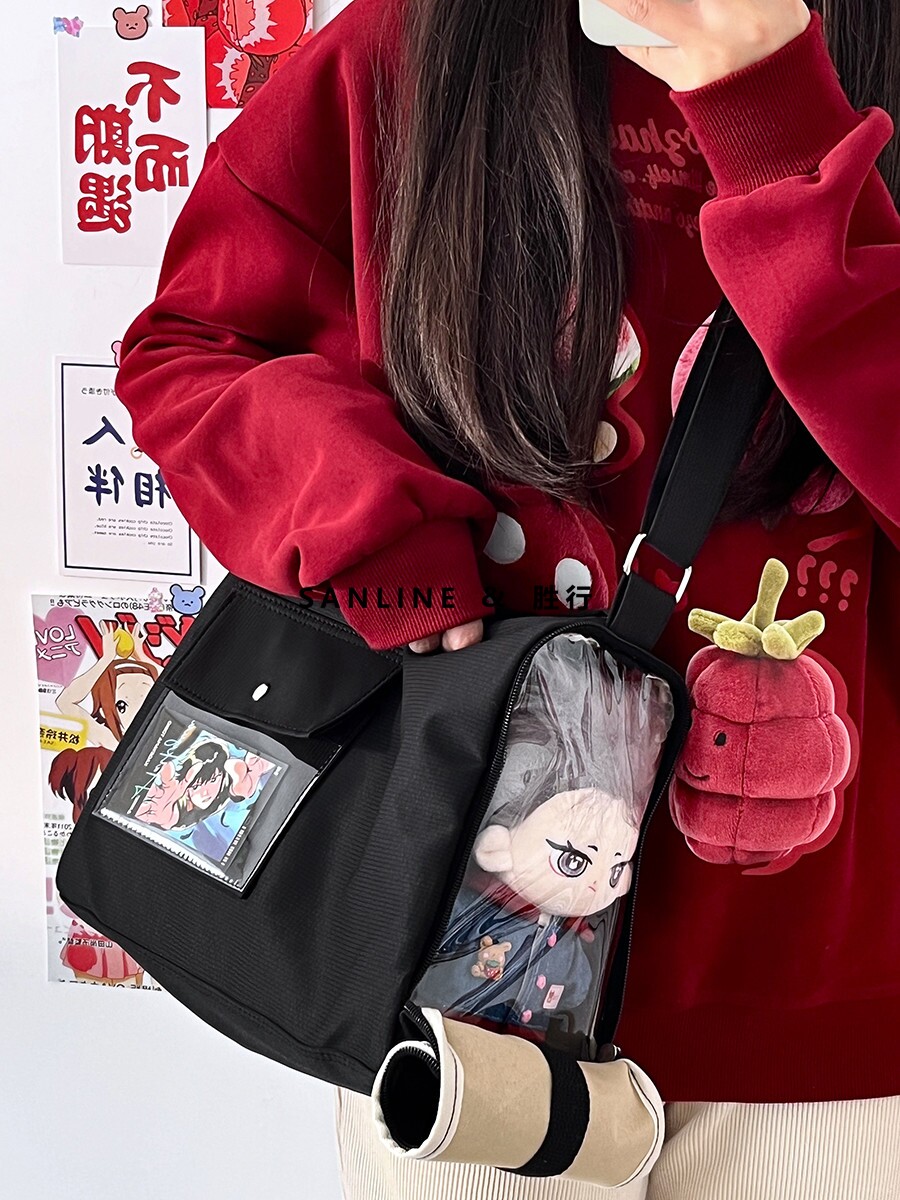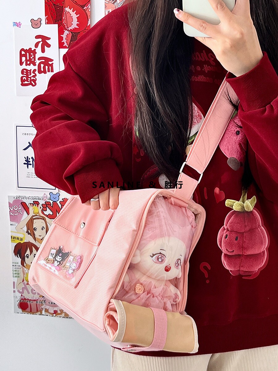 20cm棉花娃娃外出包學生日常休閒痛包少女小食量透明腋下斜背痛包
