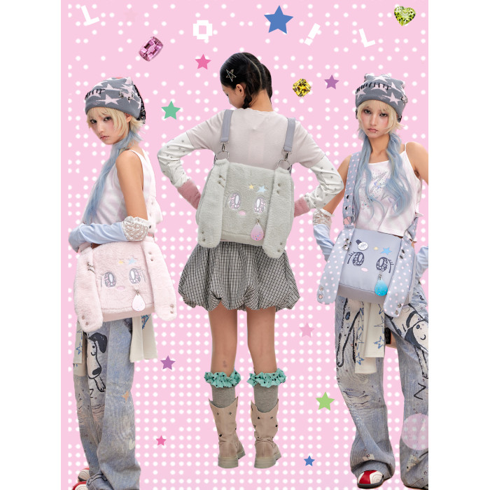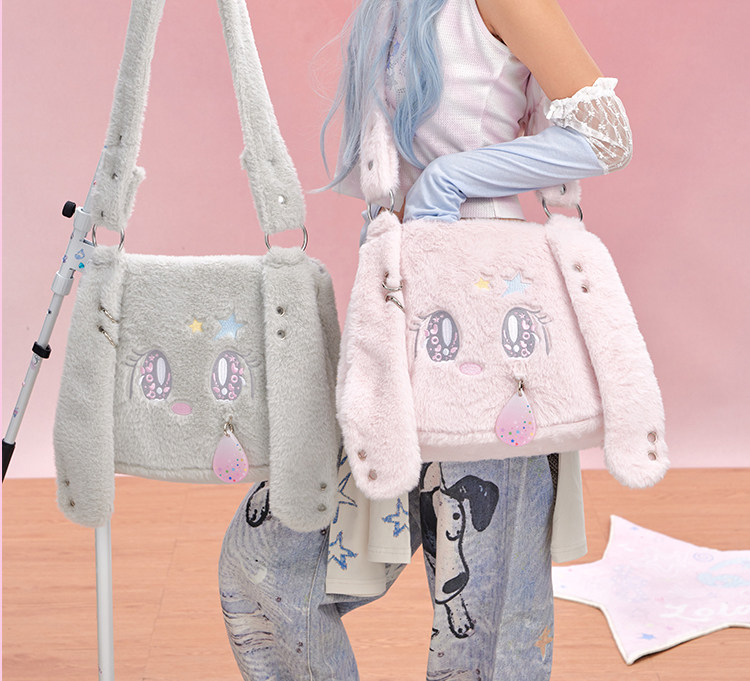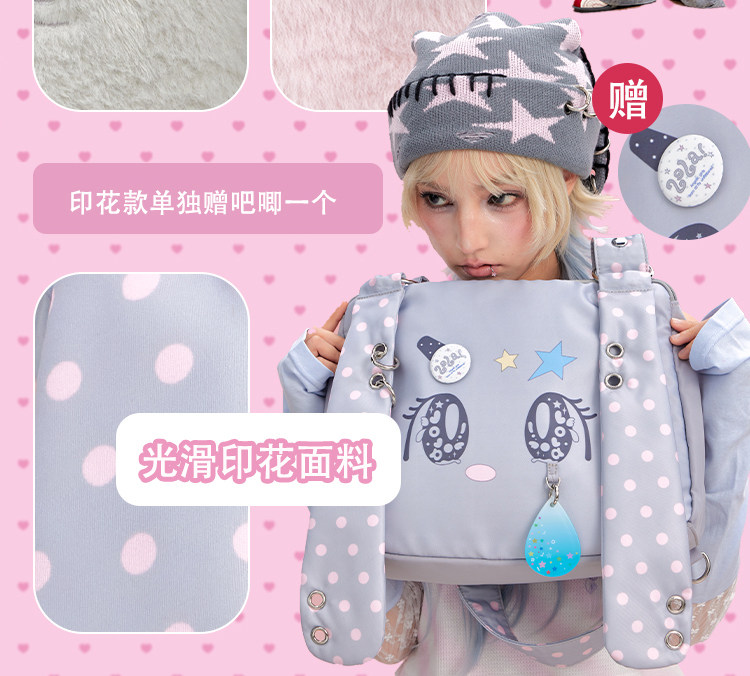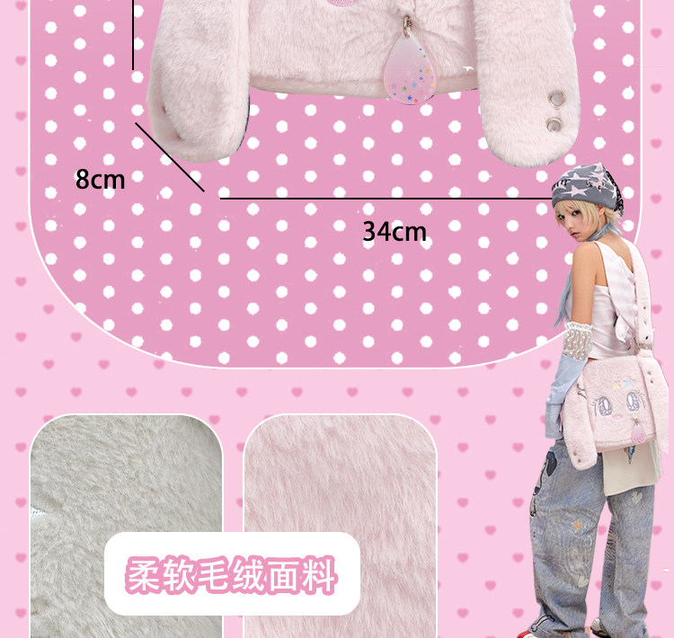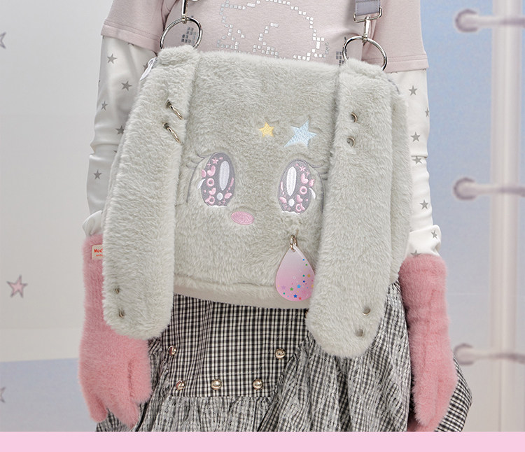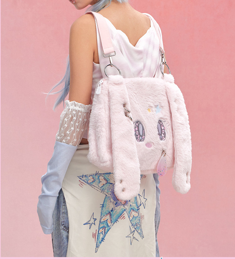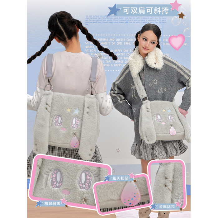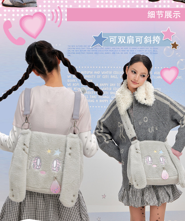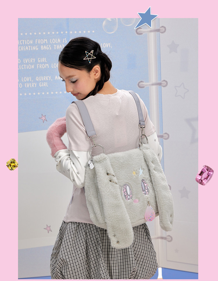 LOLA DESIGN輕亞風古早毛絨兔子斜背雙肩後後背包女韓系ins書包電腦包
