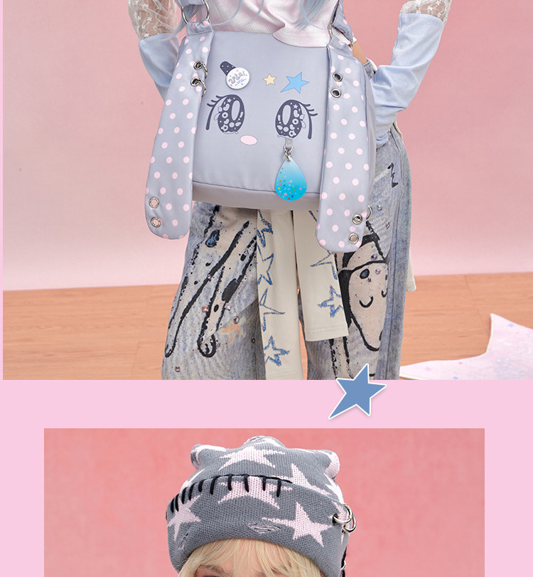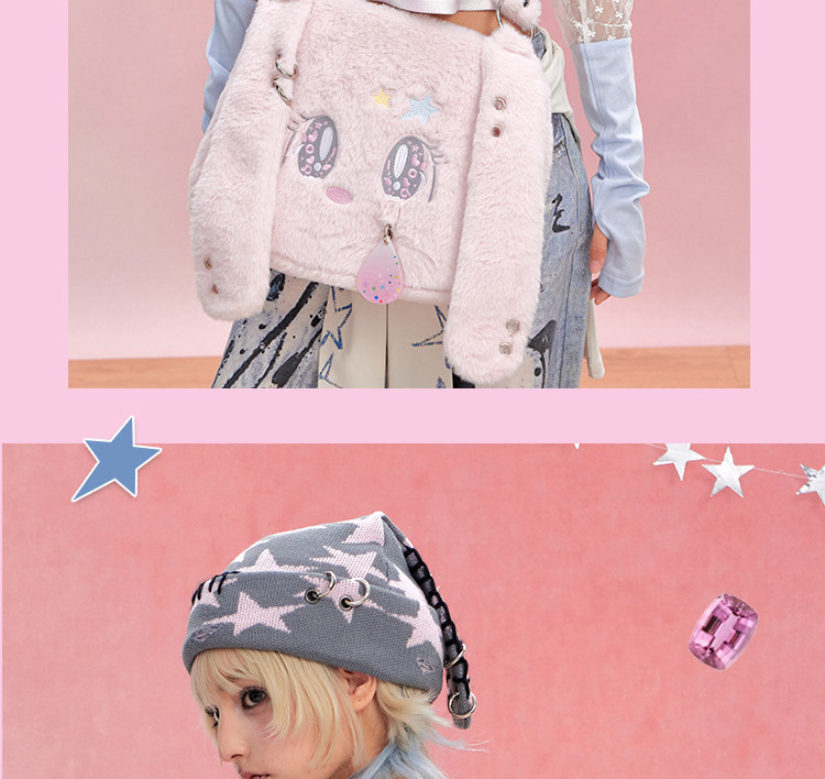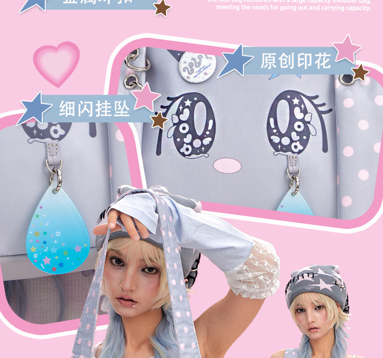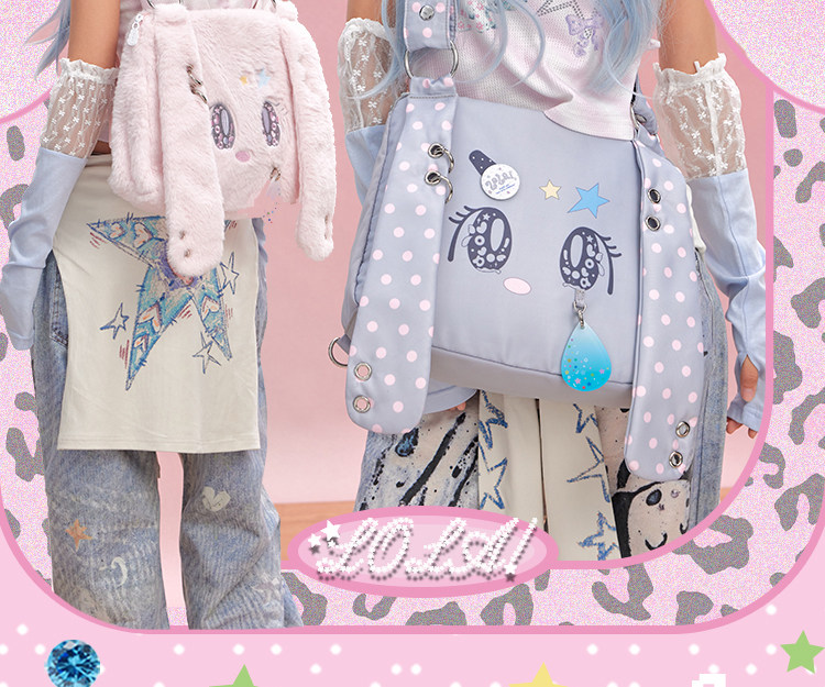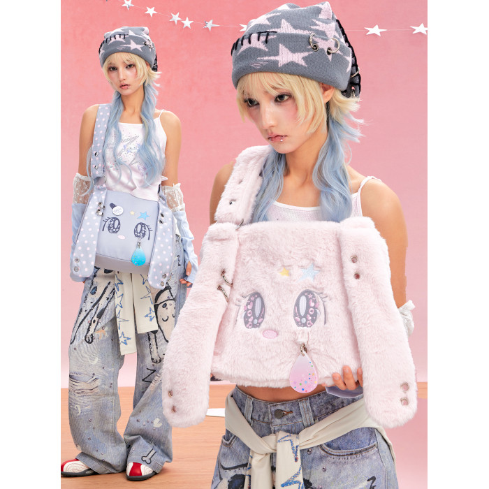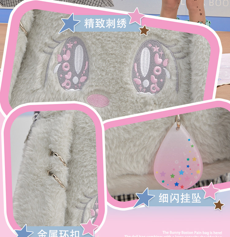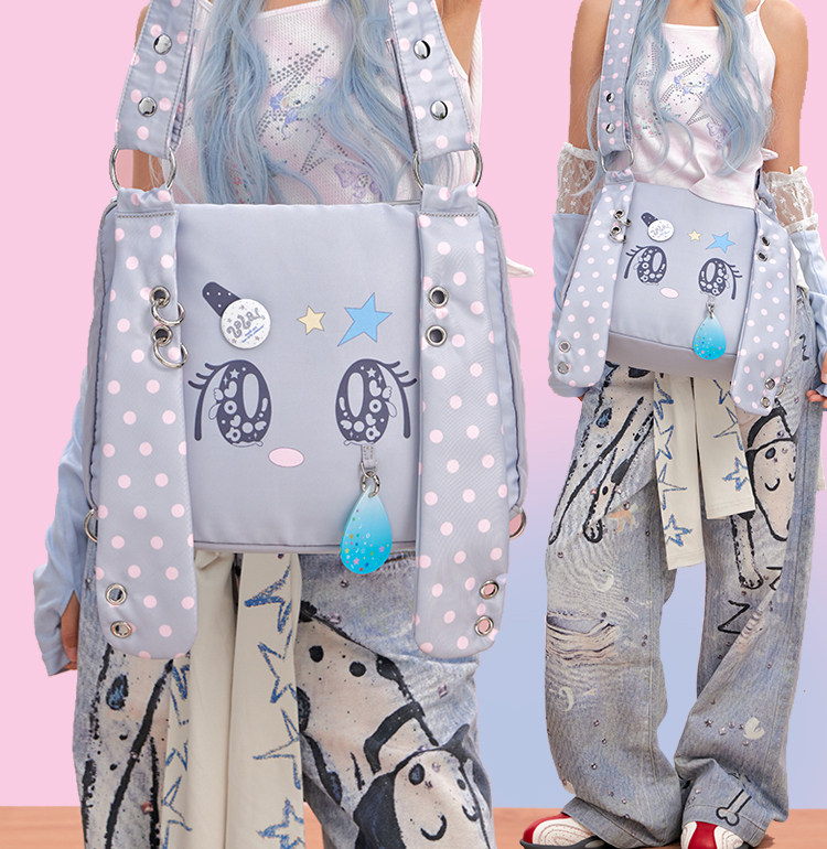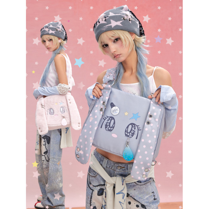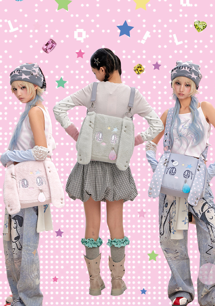 LOLA DESIGN輕亞風古早毛絨兔子斜背雙肩後後背包女韓系ins書包電腦包