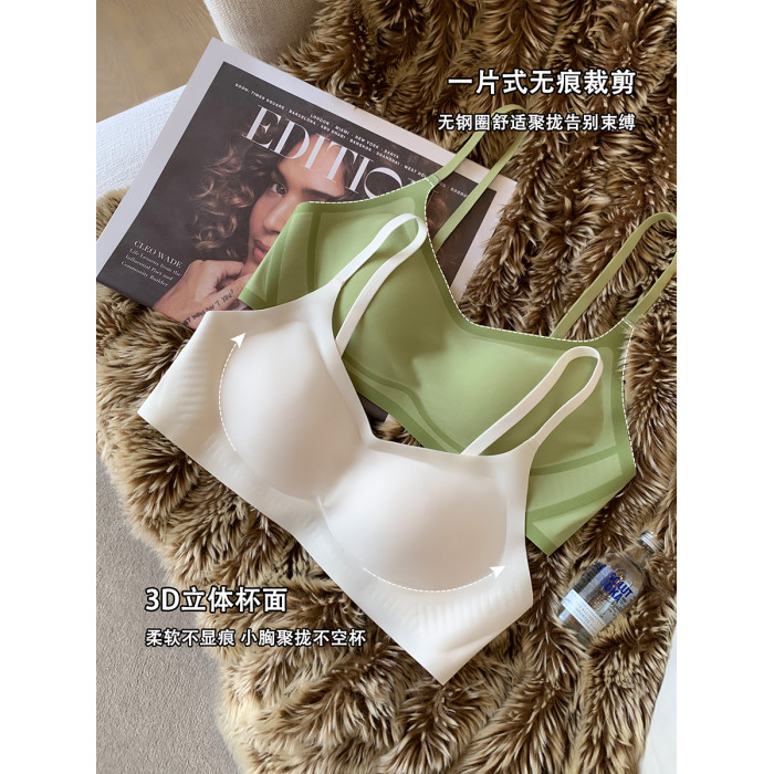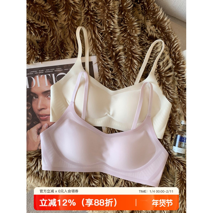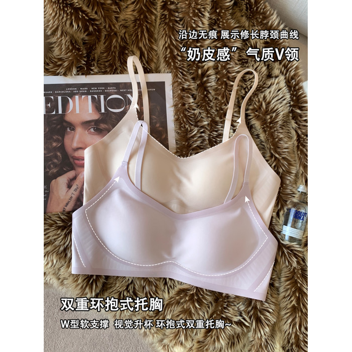 裸感光面無痕內衣女無鋼圈小胸聚攏收副乳防下垂透氣2025新款文胸