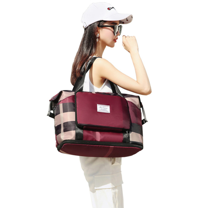旅行袋可折曡可攜式大容量行李包女士手提短途男防水出差待産收納袋