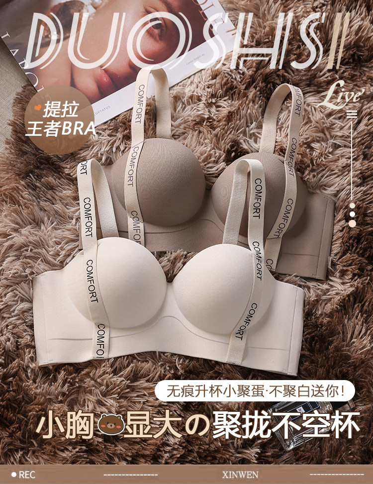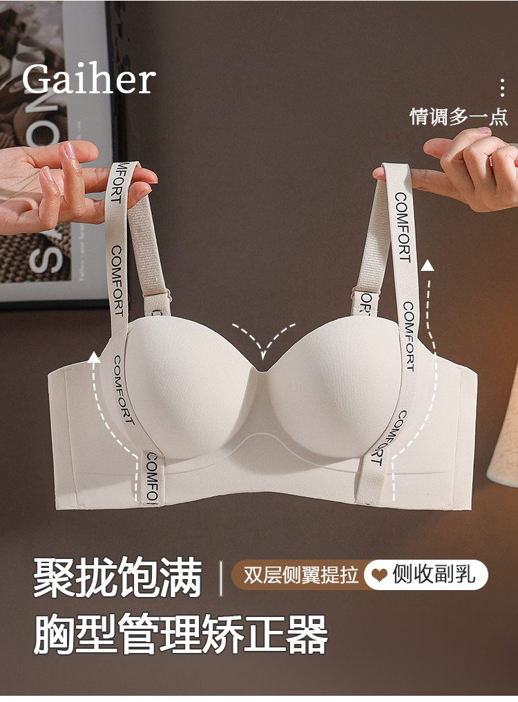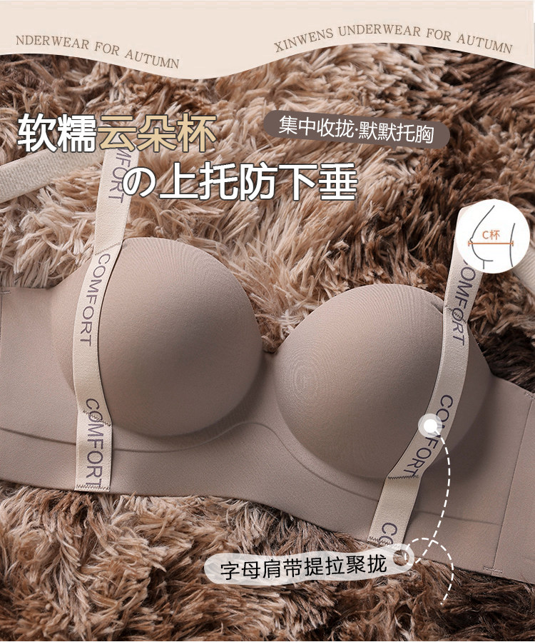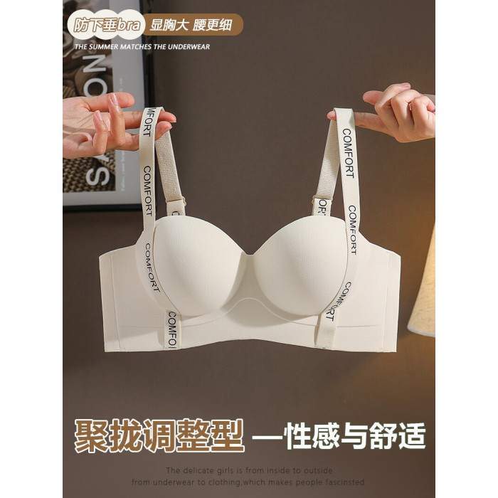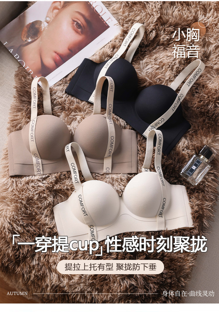無痕內衣女聚攏小胸提拉女王字母肩帶防外擴收副乳防下垂文胸罩