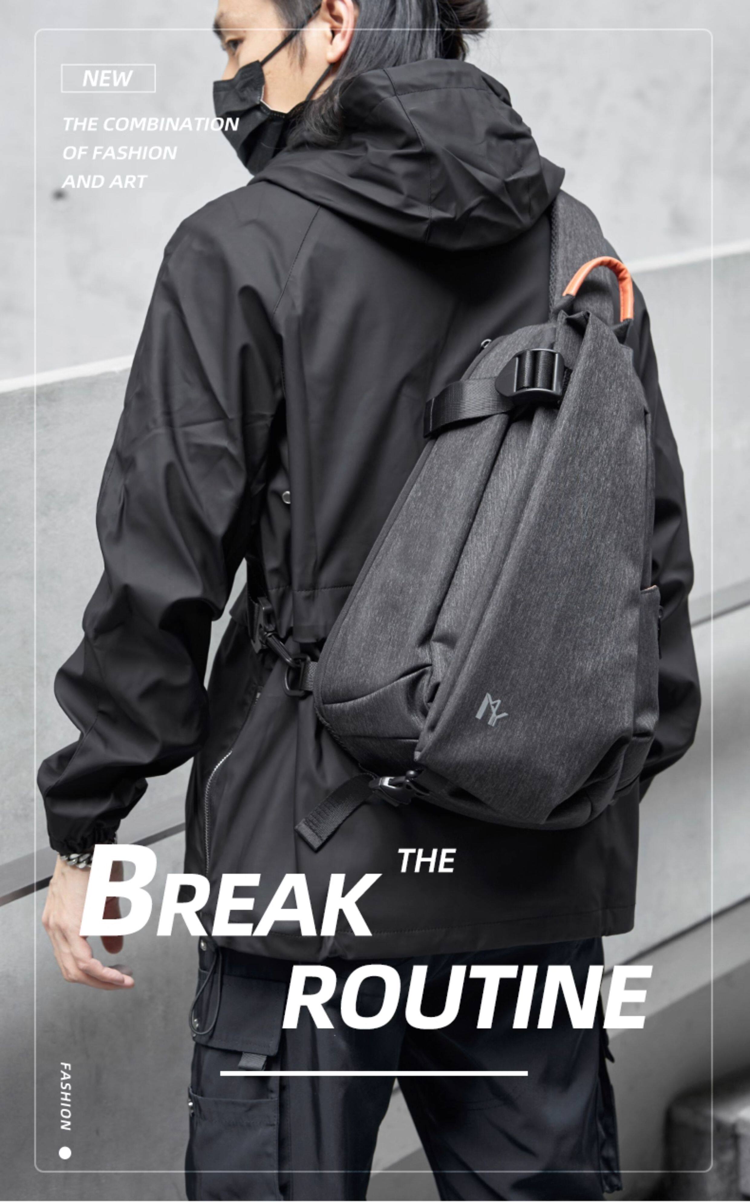 胸包男士通勤包男款機車騎行郵差包後後背包斜後後背包運動潮流單肩包男包