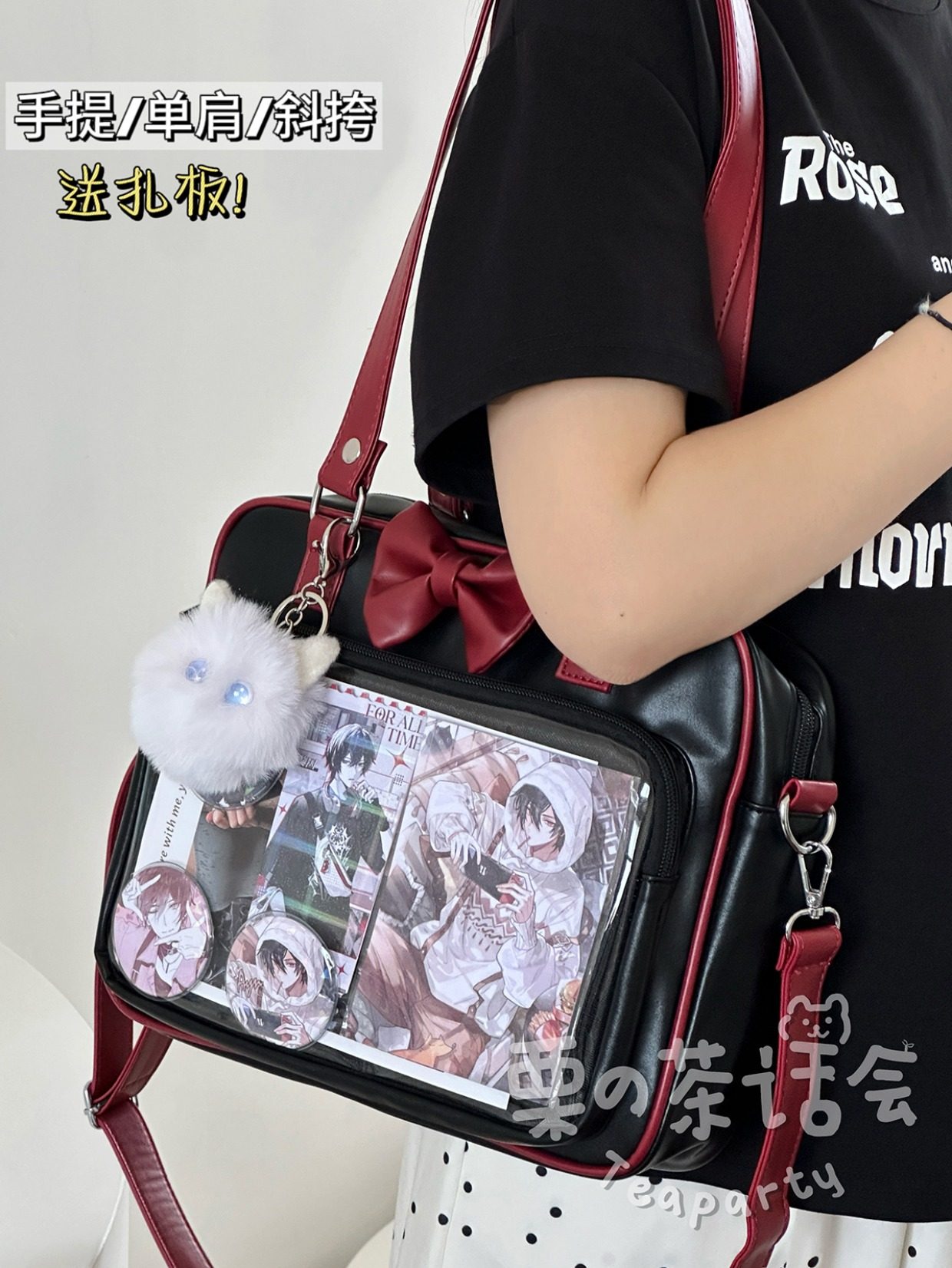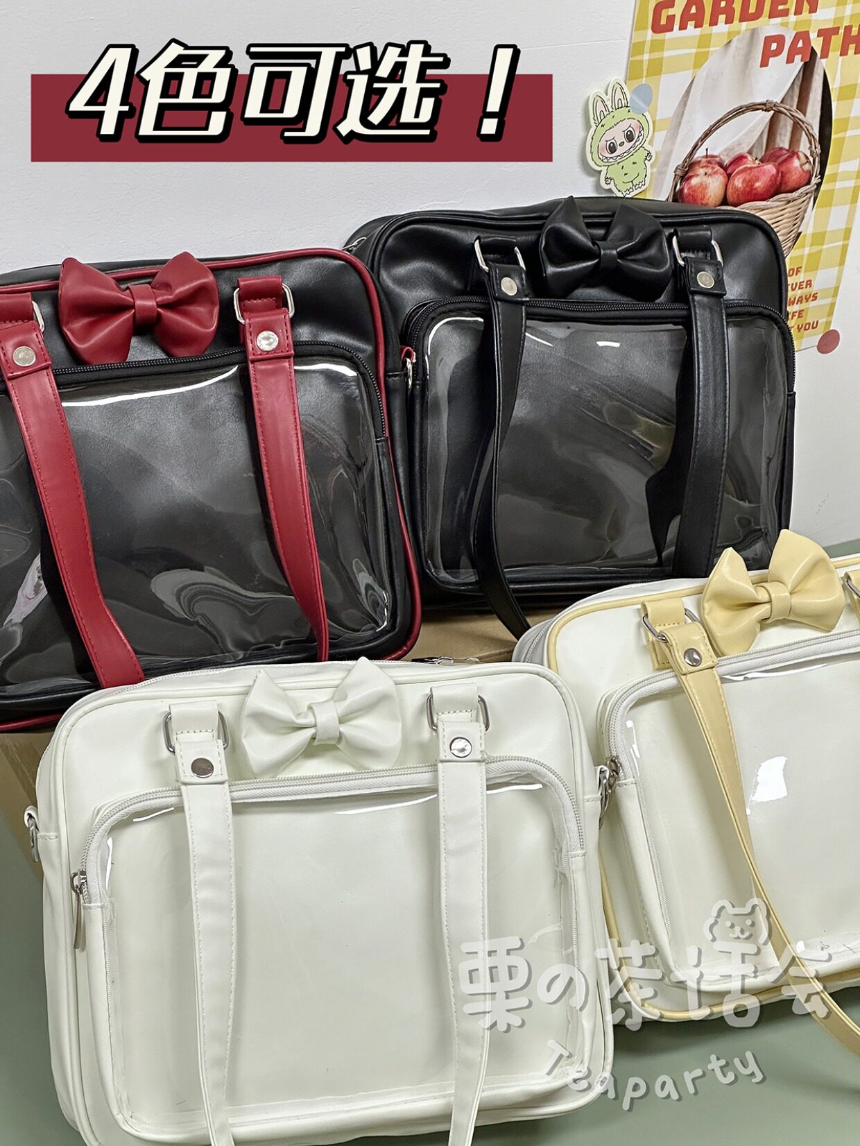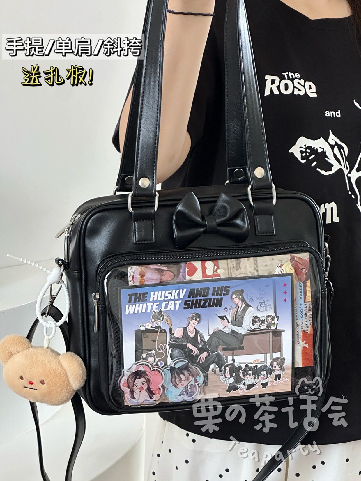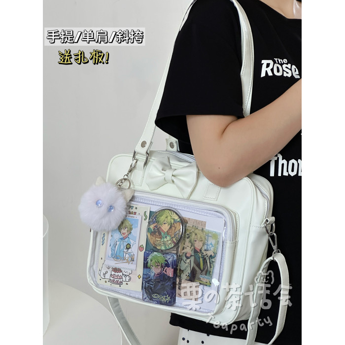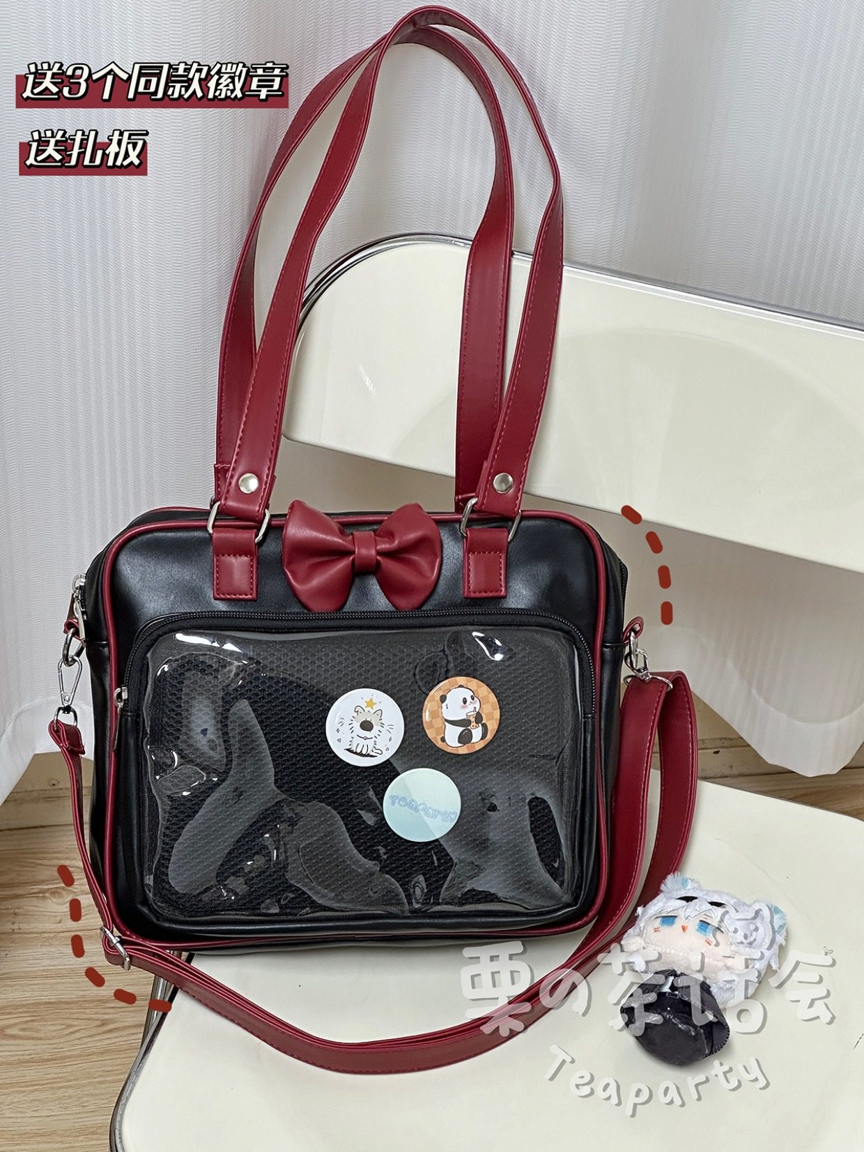 日系可愛蝴蝶結JK製服吧唧痛包穀子包二次元PU學生單肩斜後後背包包女