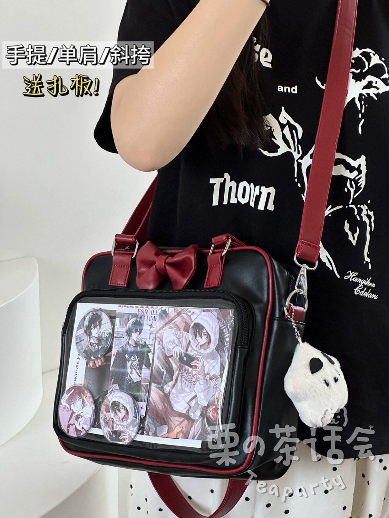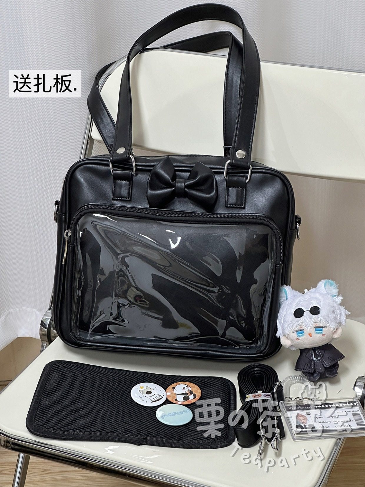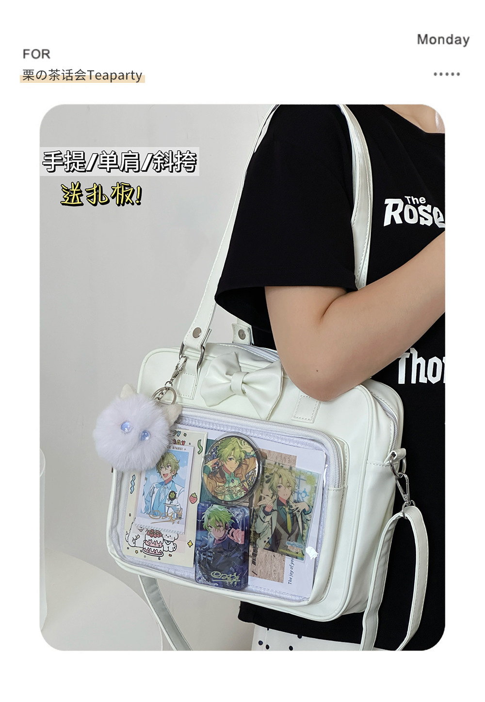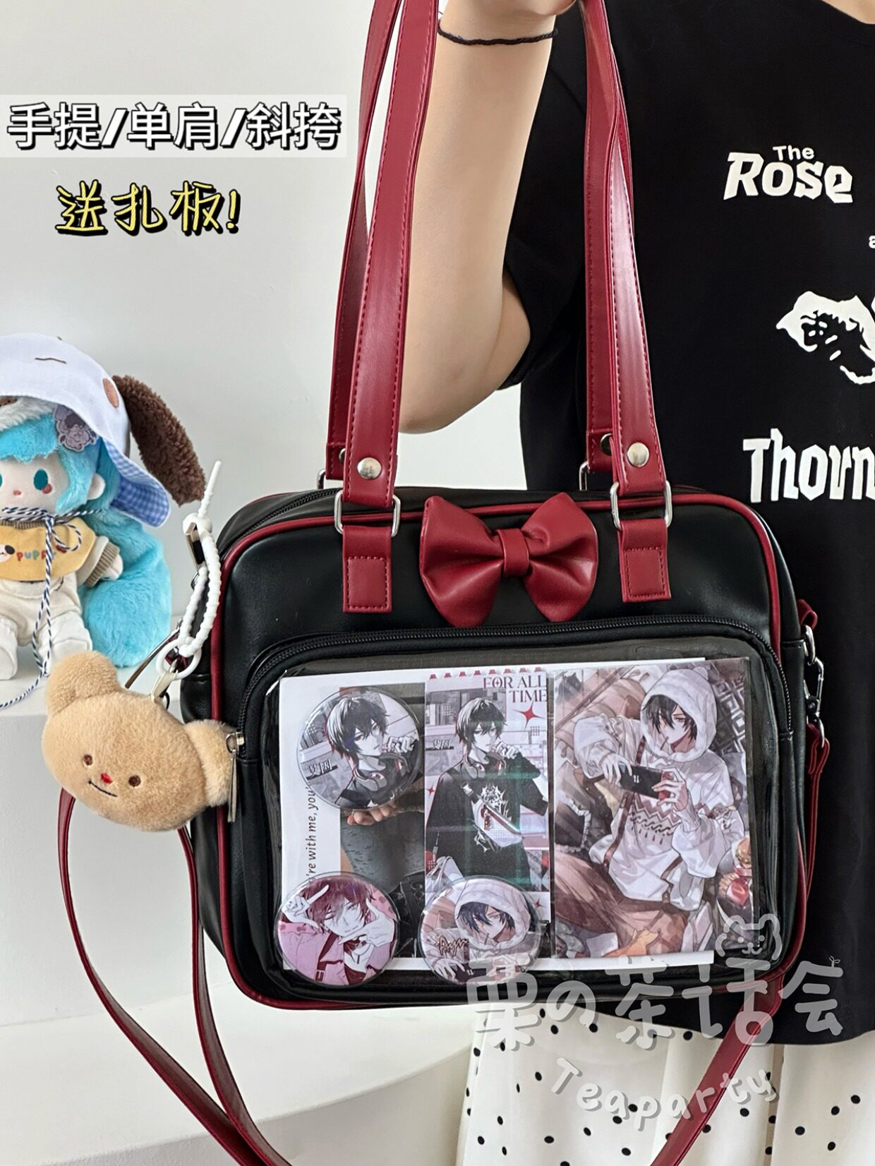 日系可愛蝴蝶結JK製服吧唧痛包穀子包二次元PU學生單肩斜後後背包包女