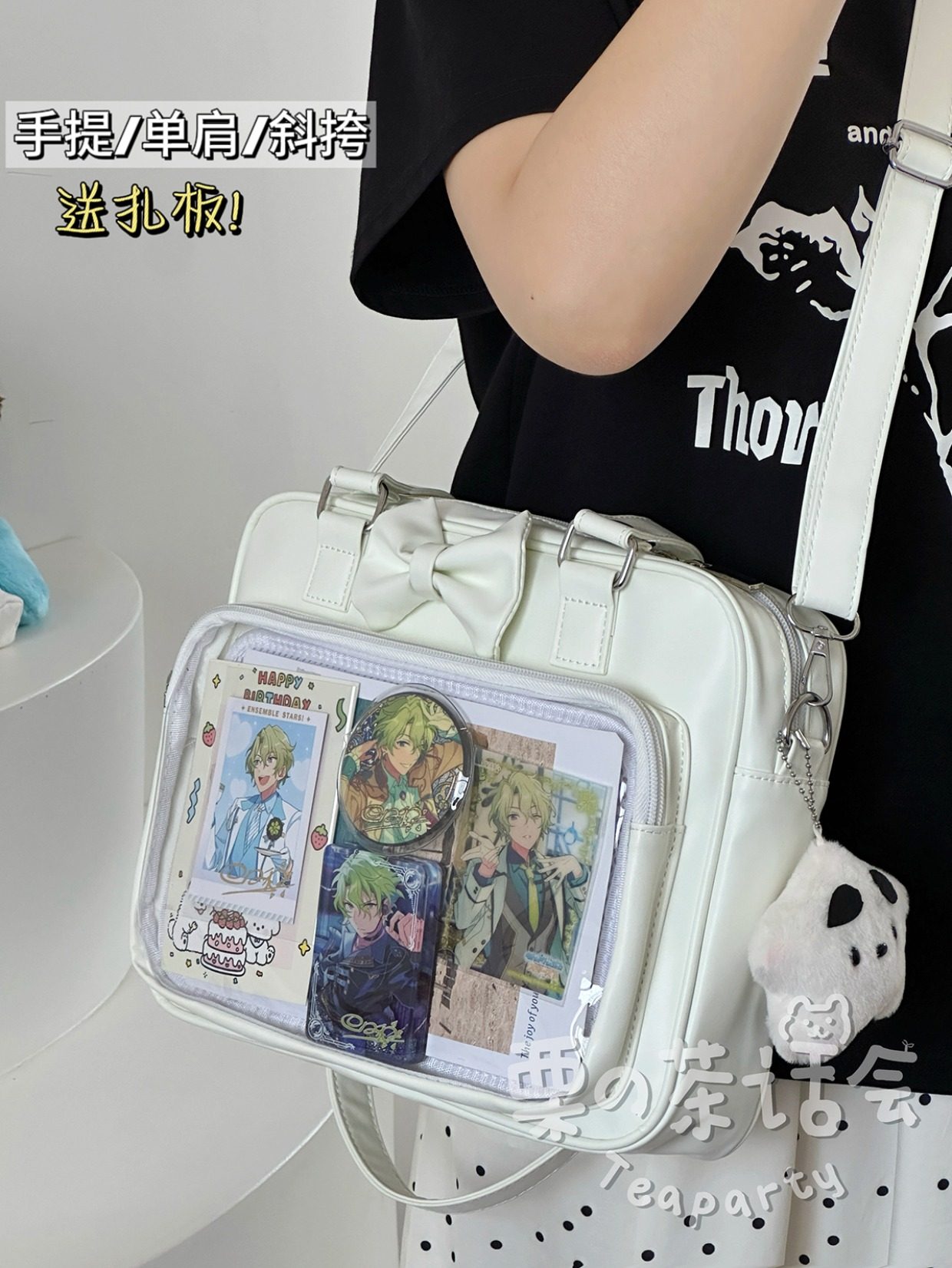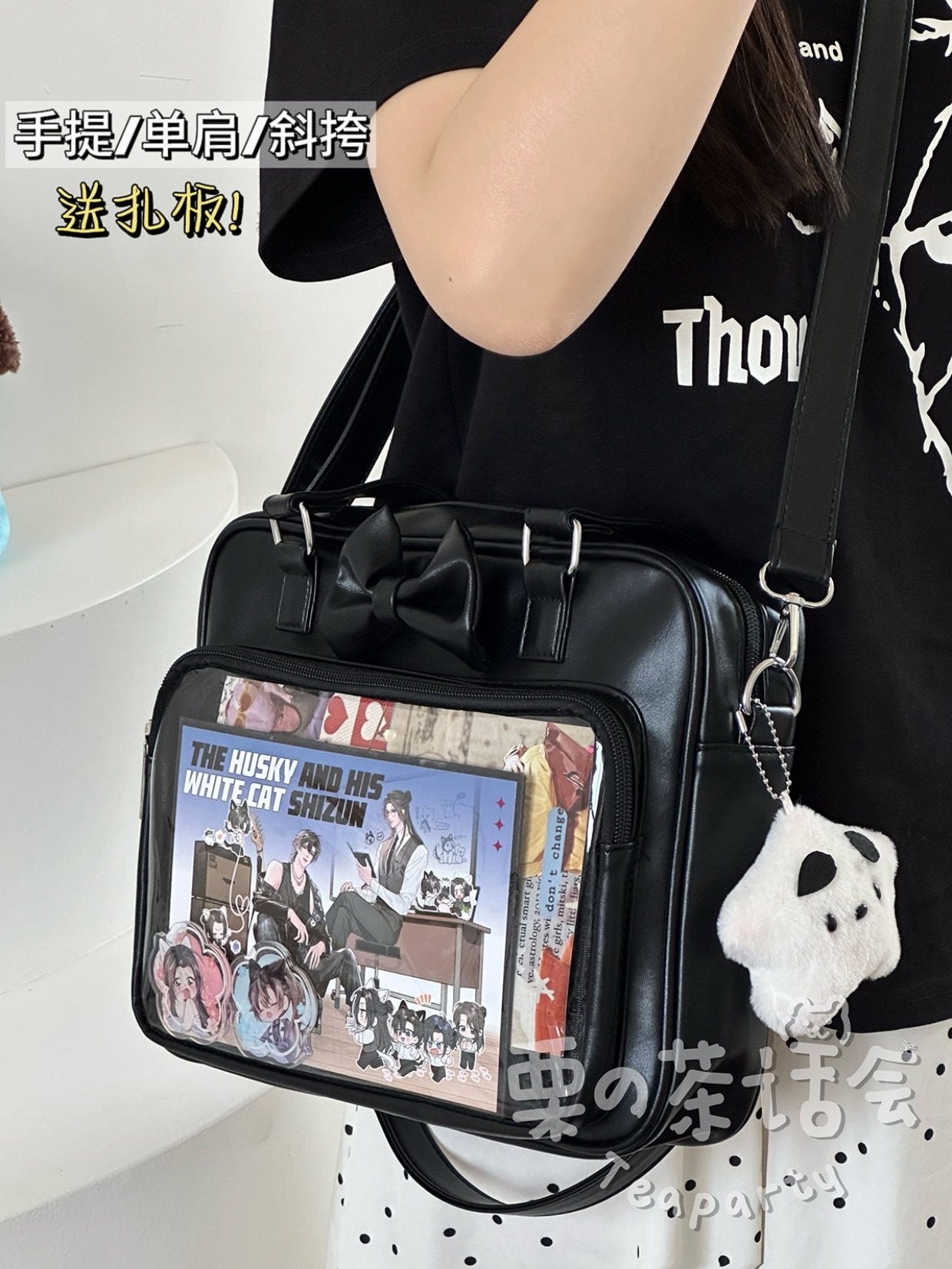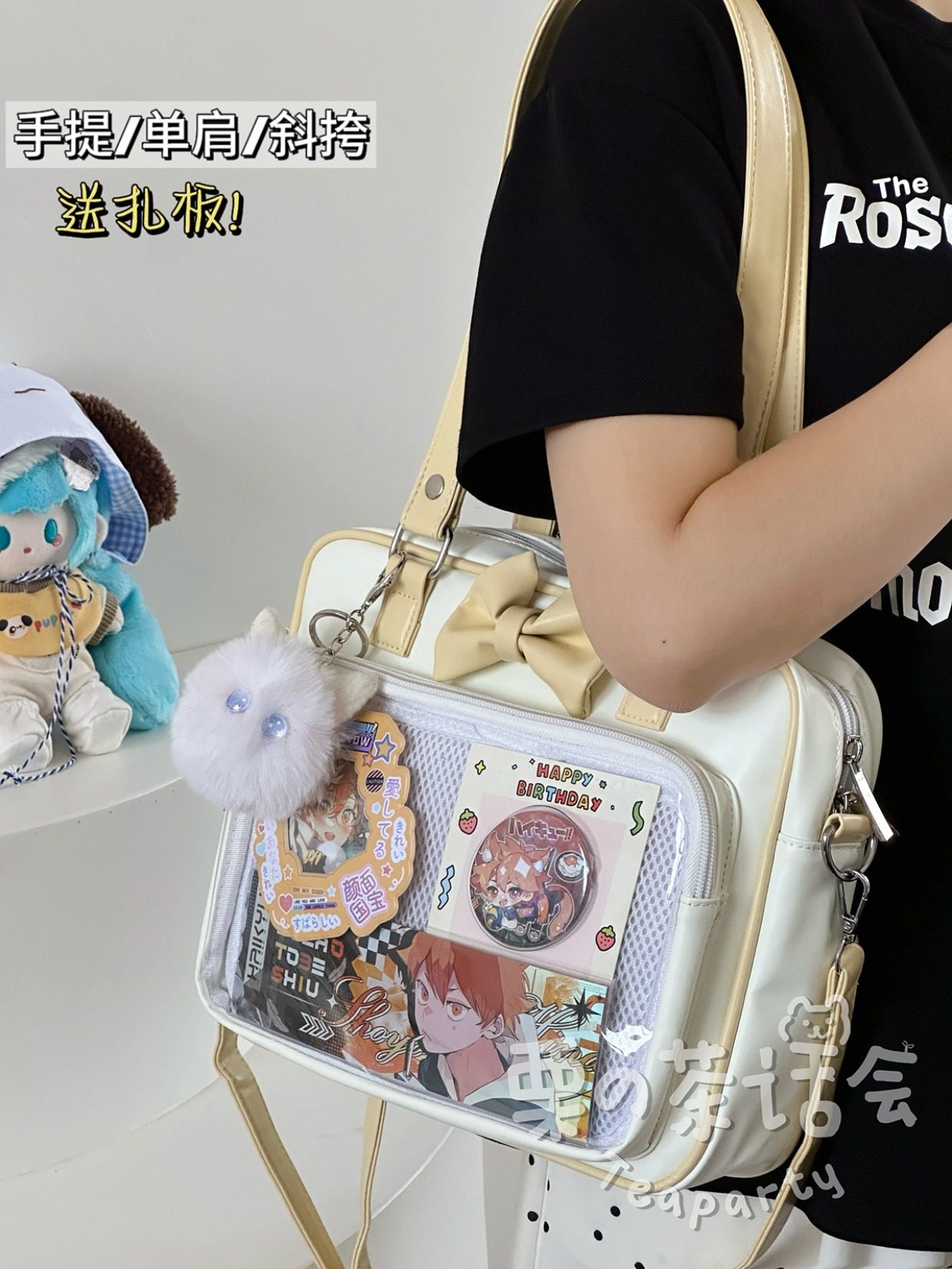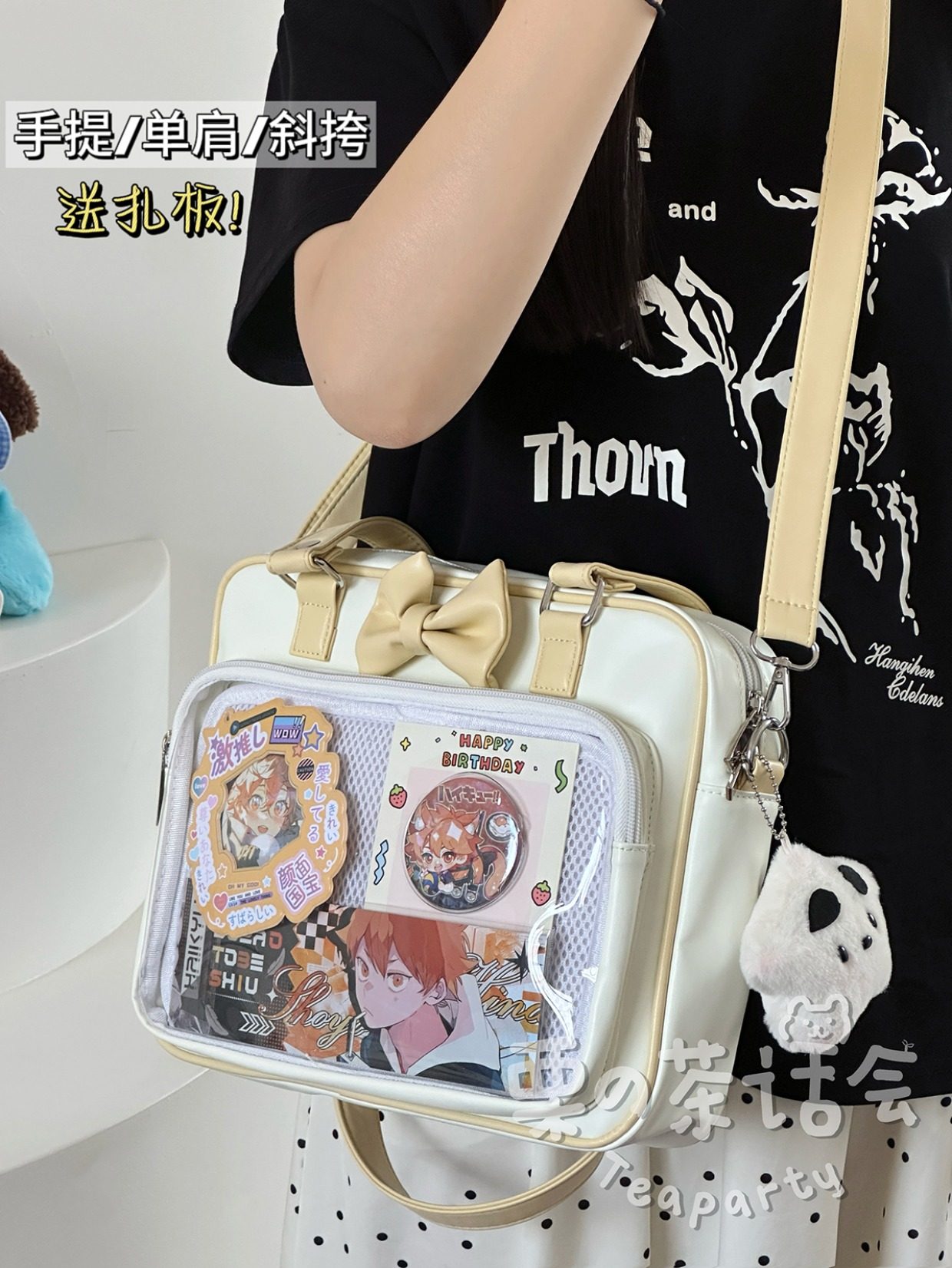 日系可愛蝴蝶結JK製服吧唧痛包穀子包二次元PU學生單肩斜後後背包包女