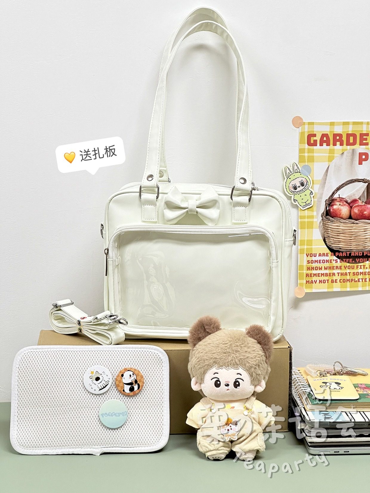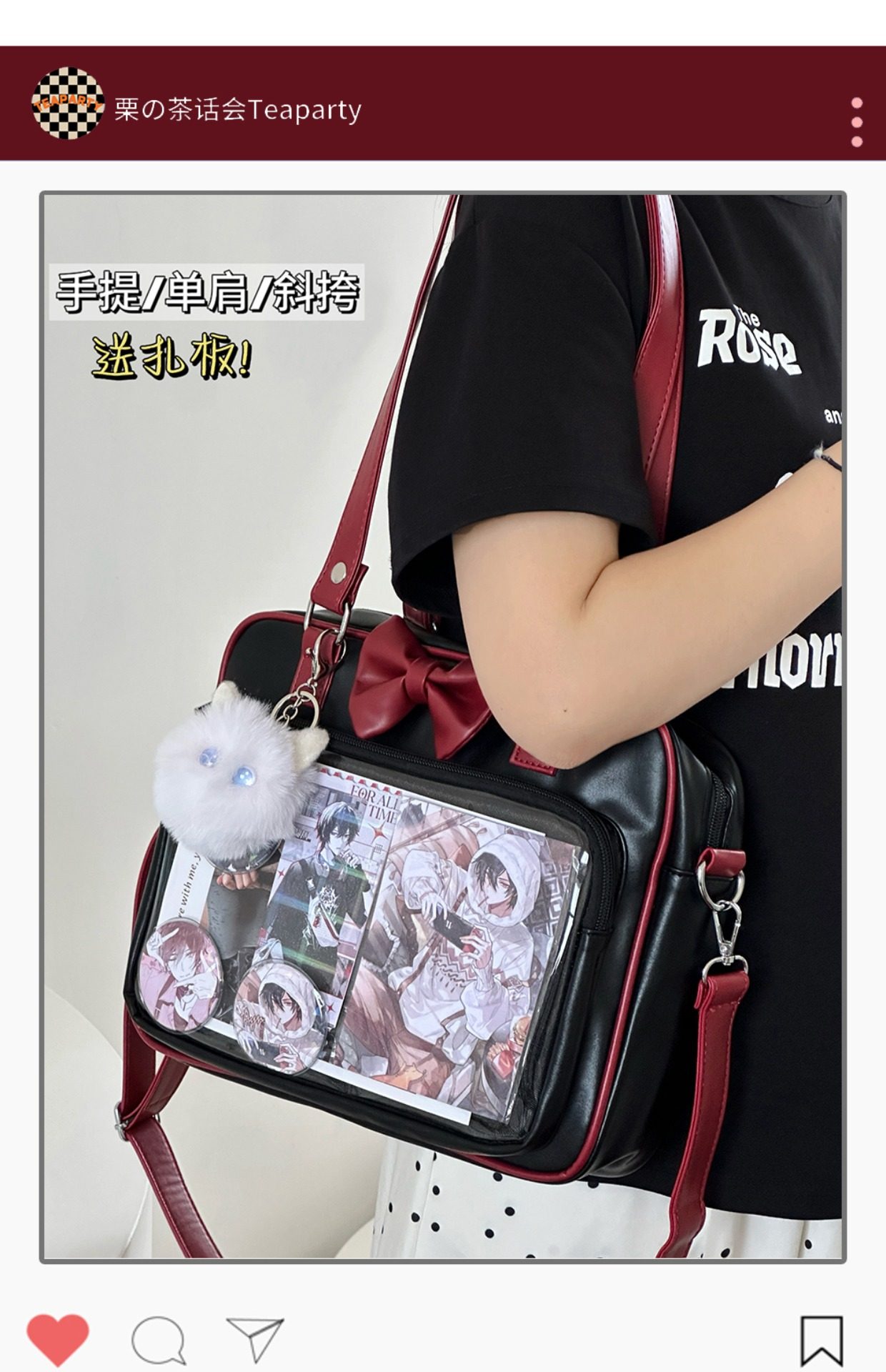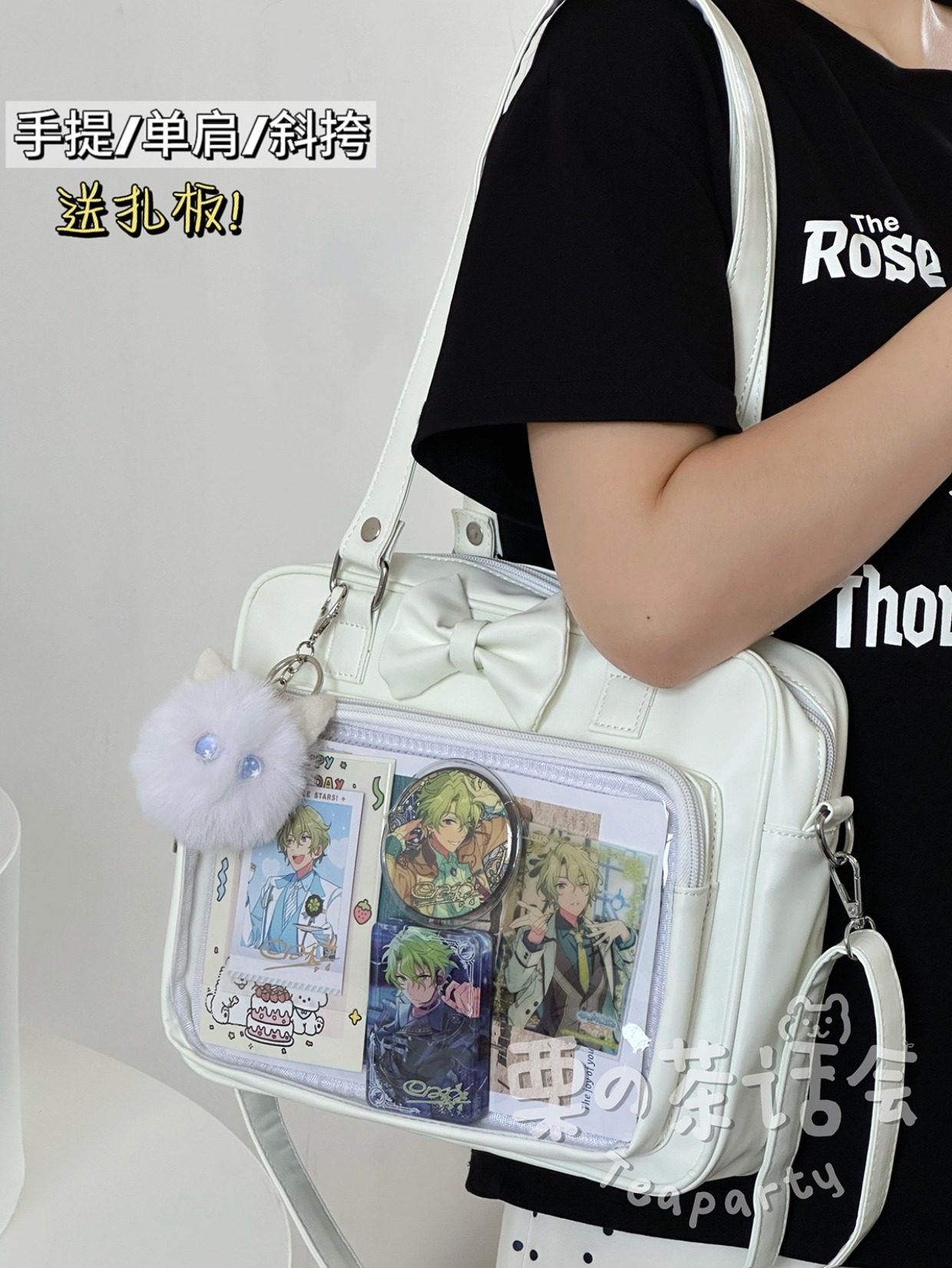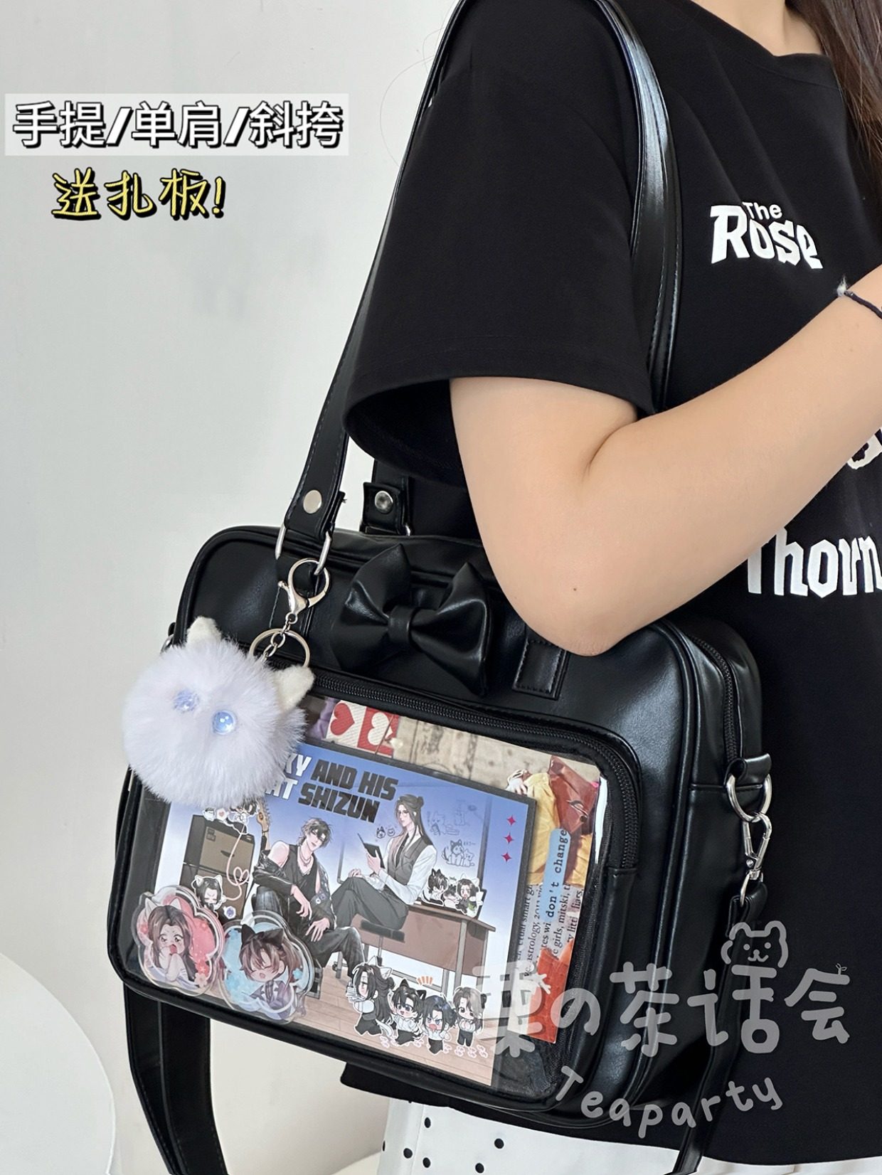 日系可愛蝴蝶結JK製服吧唧痛包穀子包二次元PU學生單肩斜後後背包包女