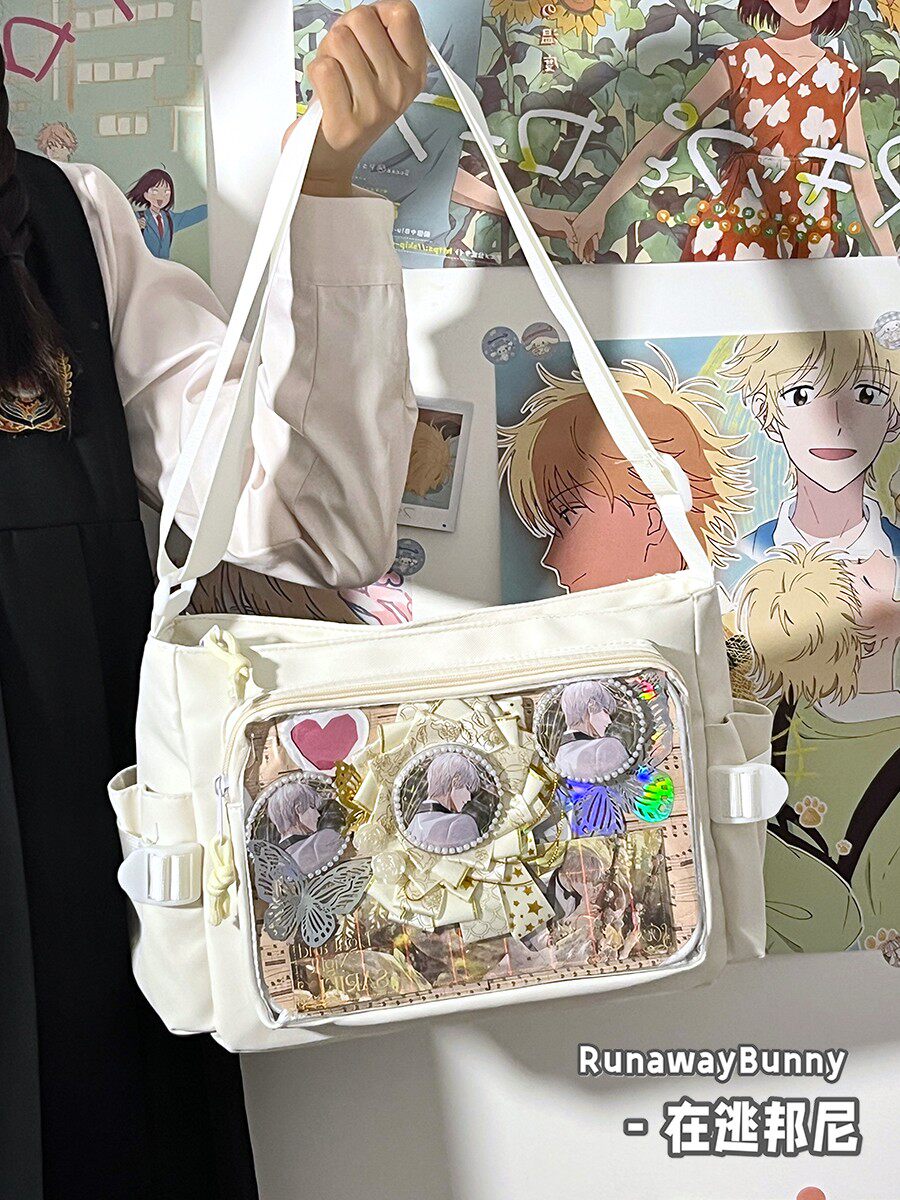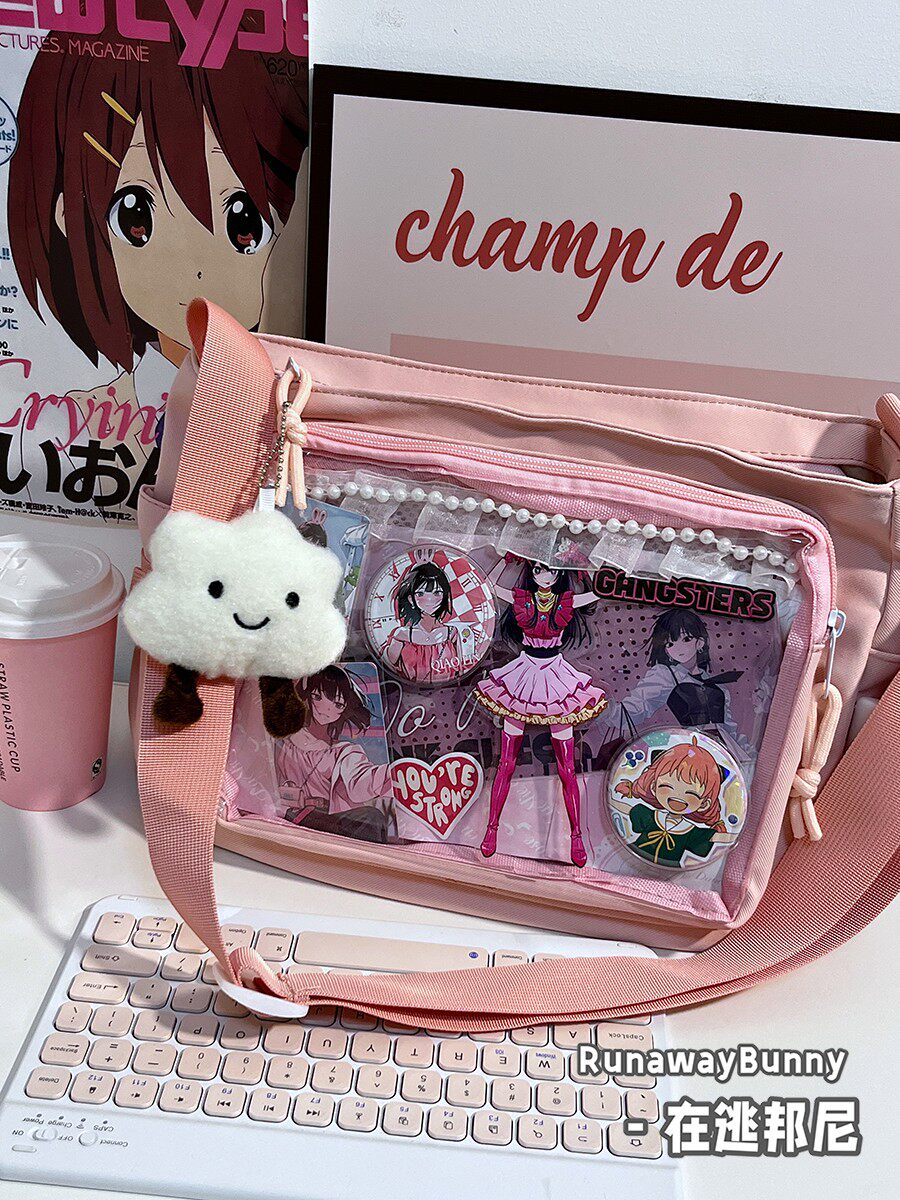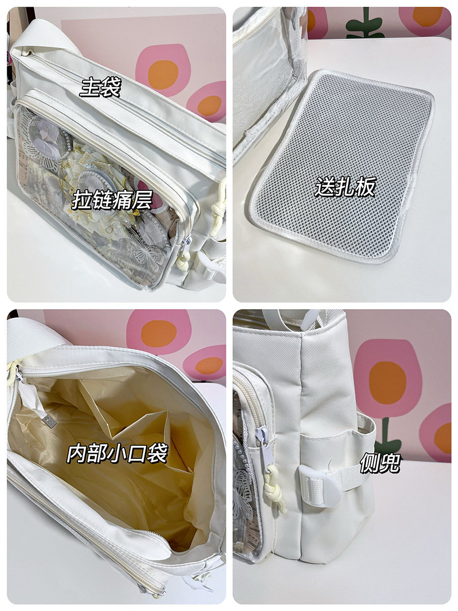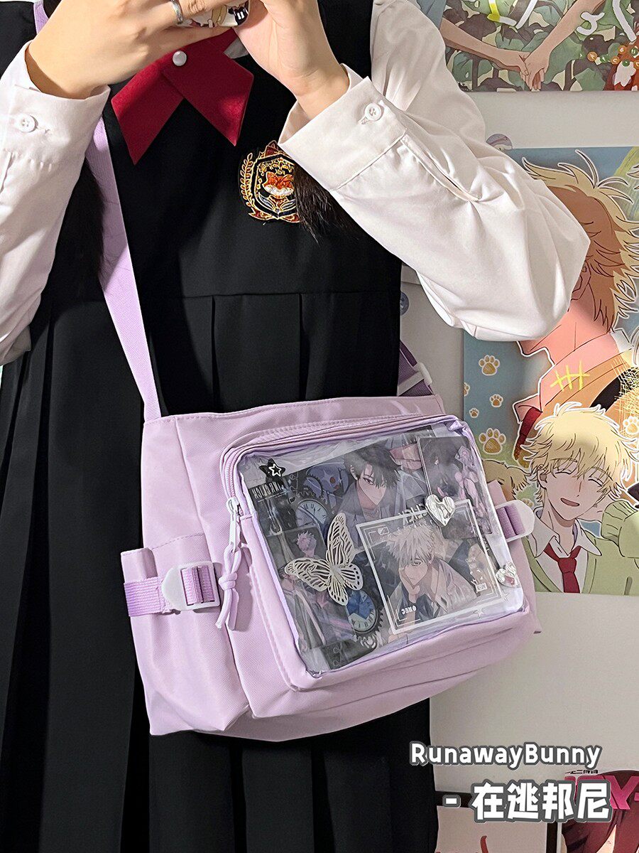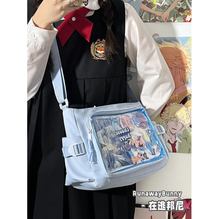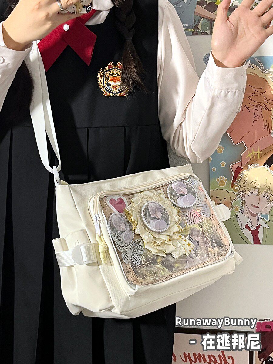 校園百搭簡約純色單肩斜背郵差包紥穀透明吧唧女JK二次元娃包痛包