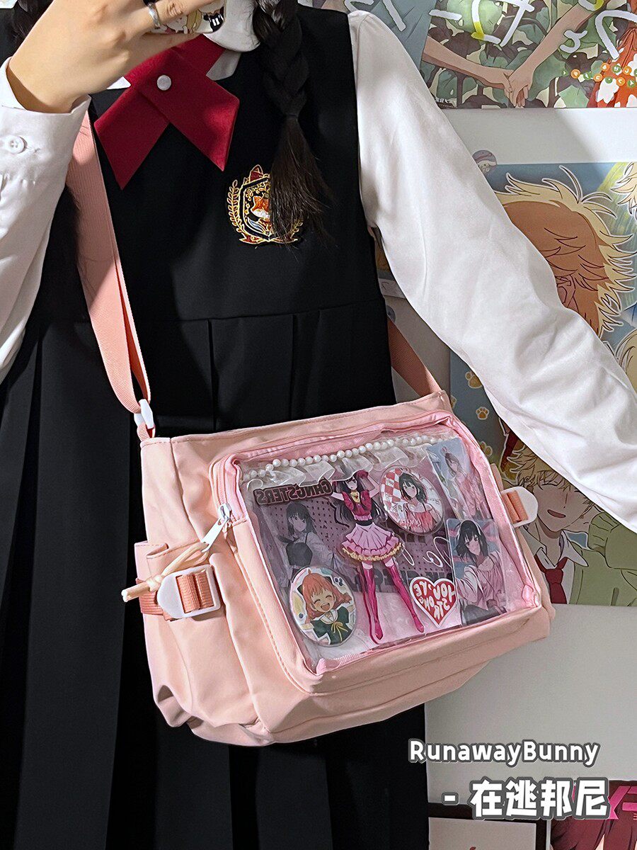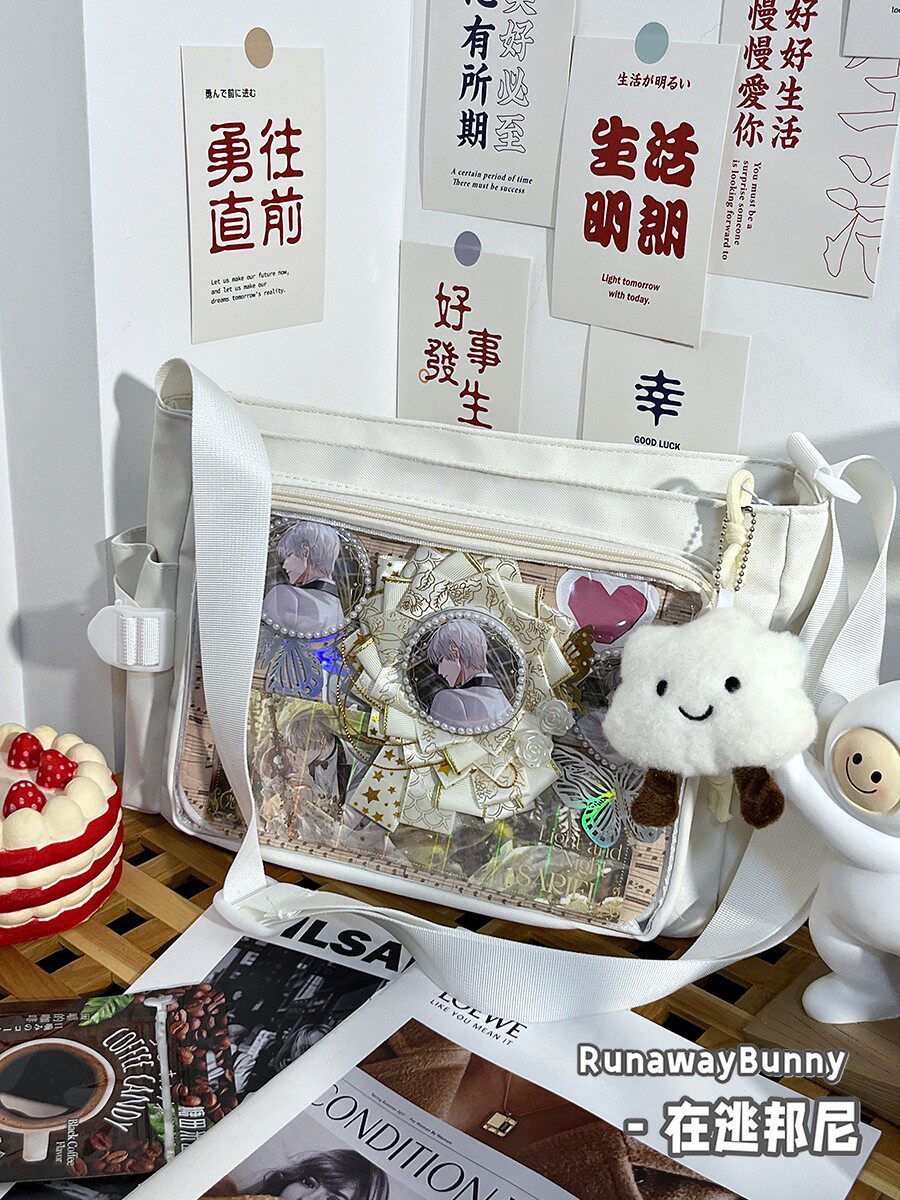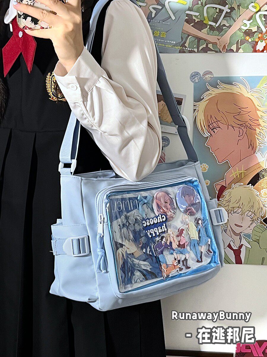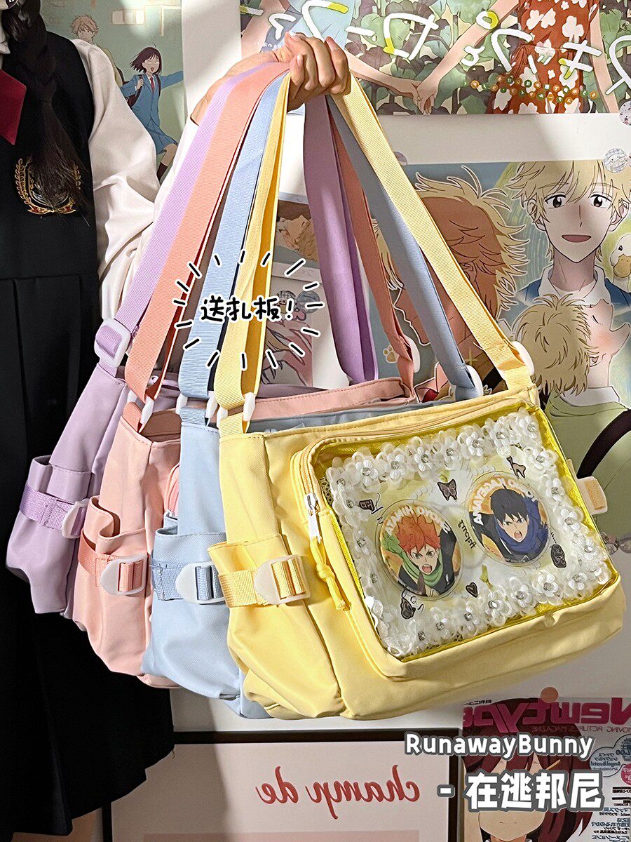 校園百搭簡約純色單肩斜背郵差包紥穀透明吧唧女JK二次元娃包痛包